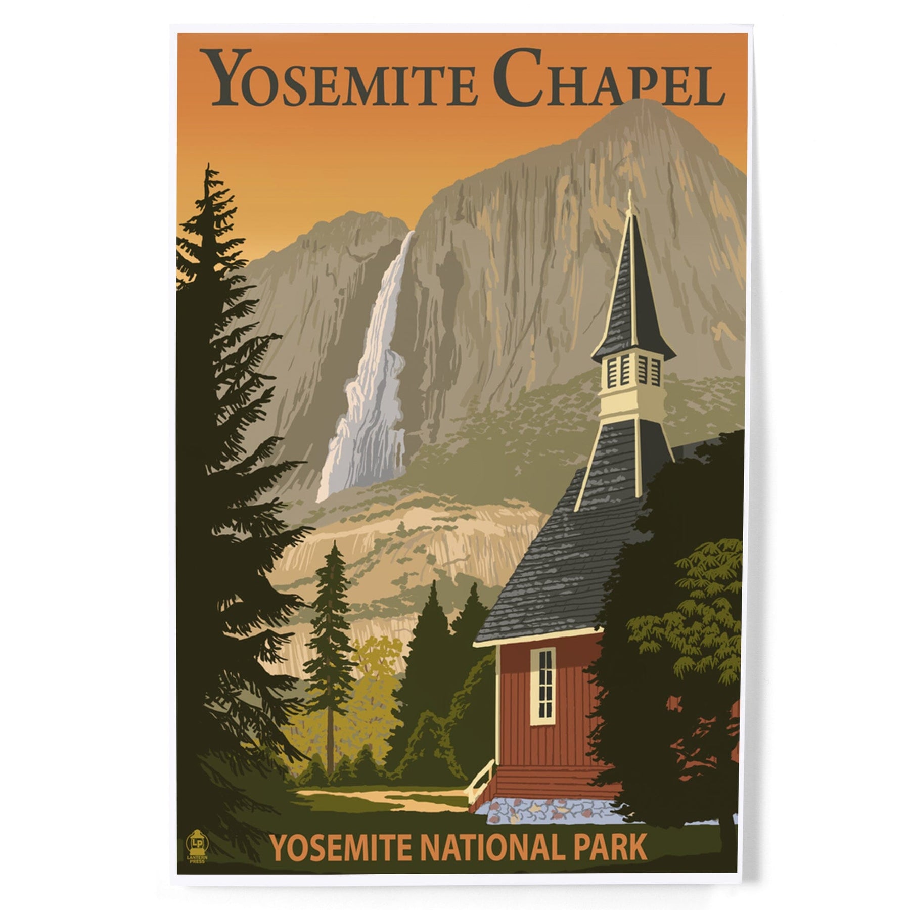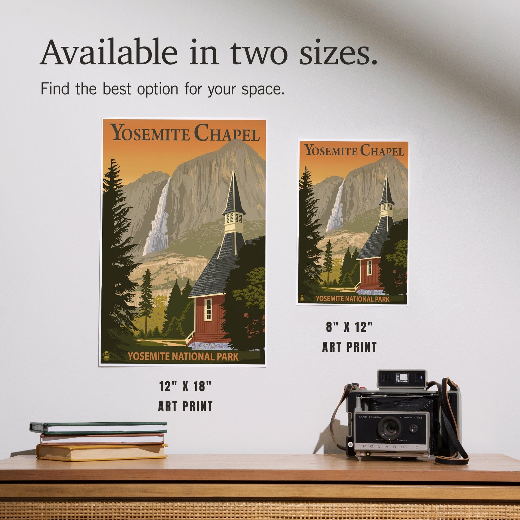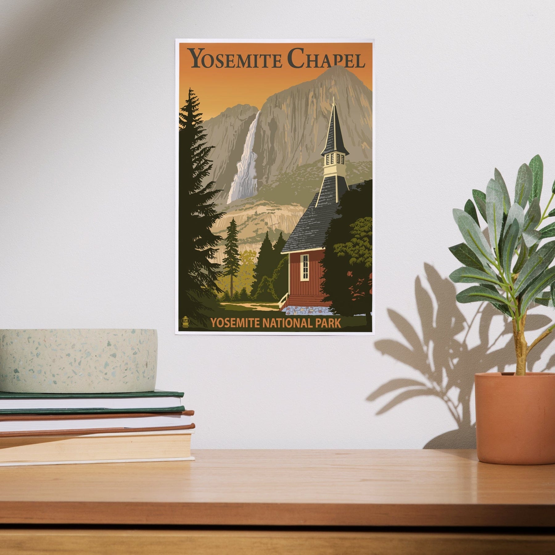 Yosemite Chapel and Yosemite Falls, California, Art & Giclee Prints Art Lantern Press