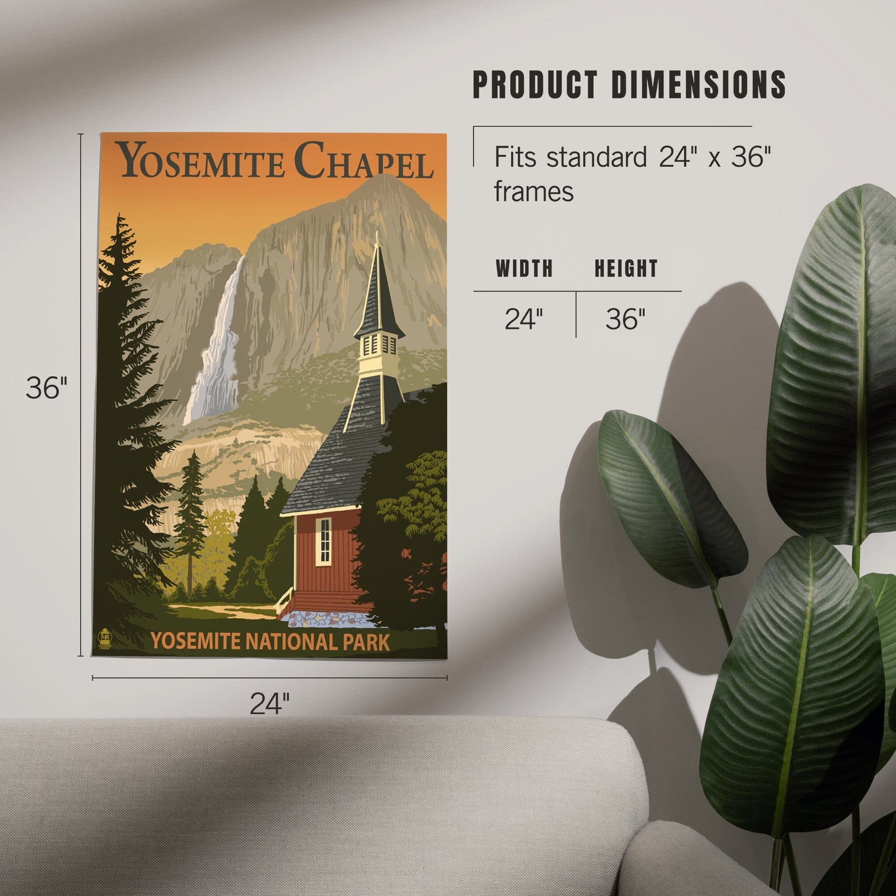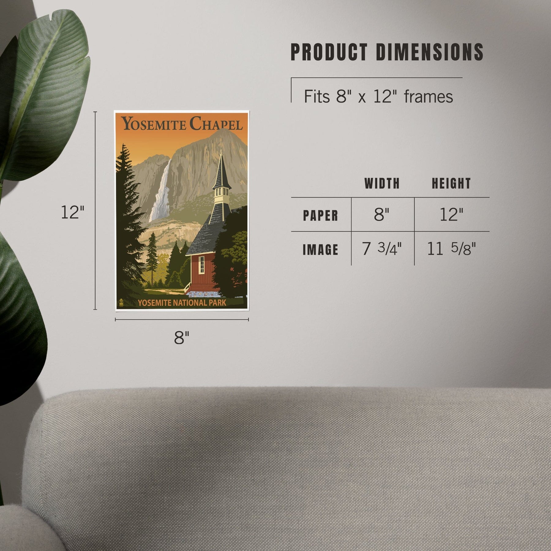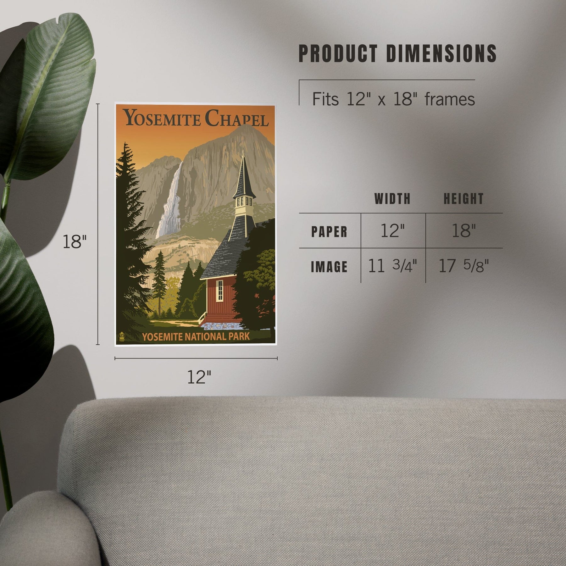 Yosemite Chapel and Yosemite Falls, California, Art & Giclee Prints Art Lantern Press