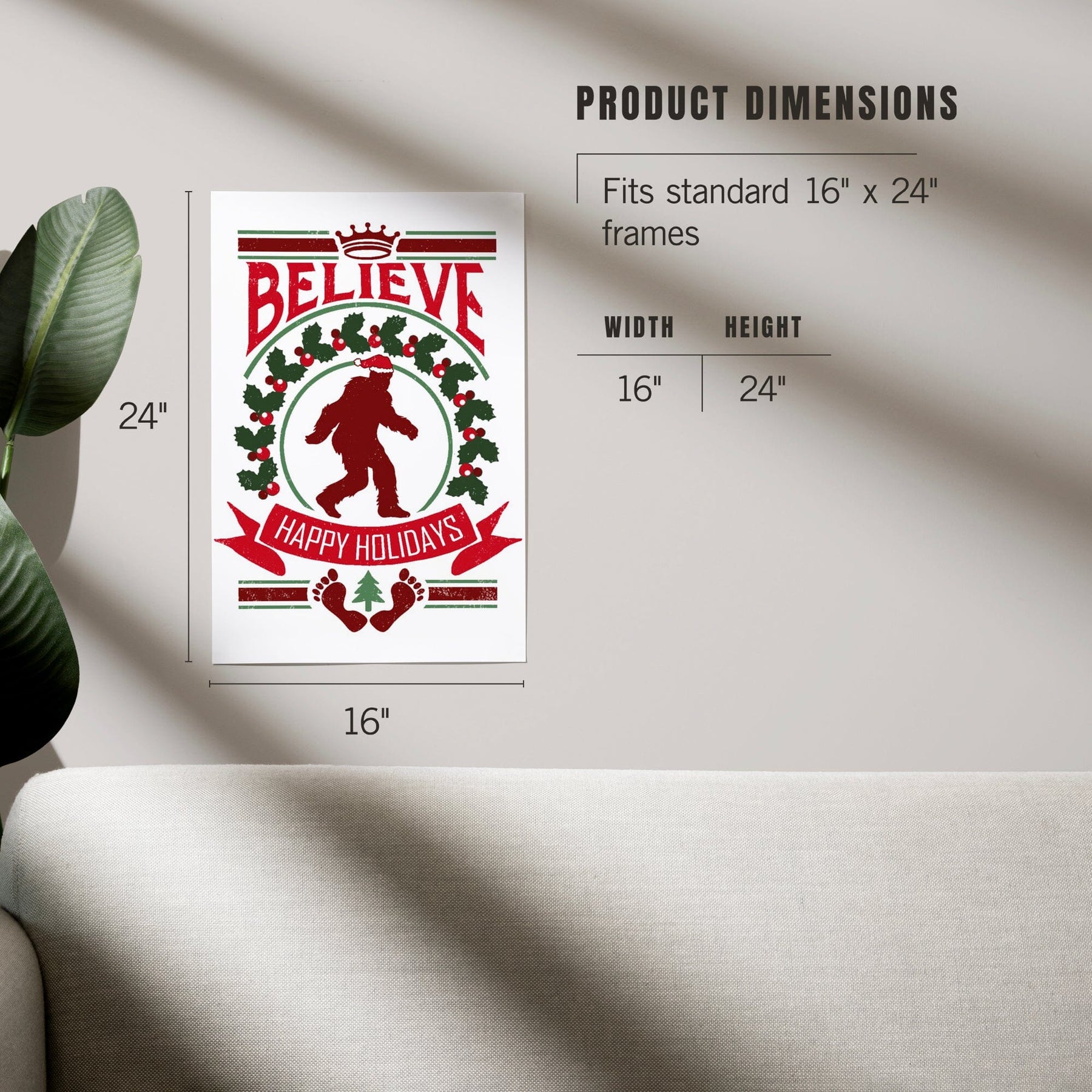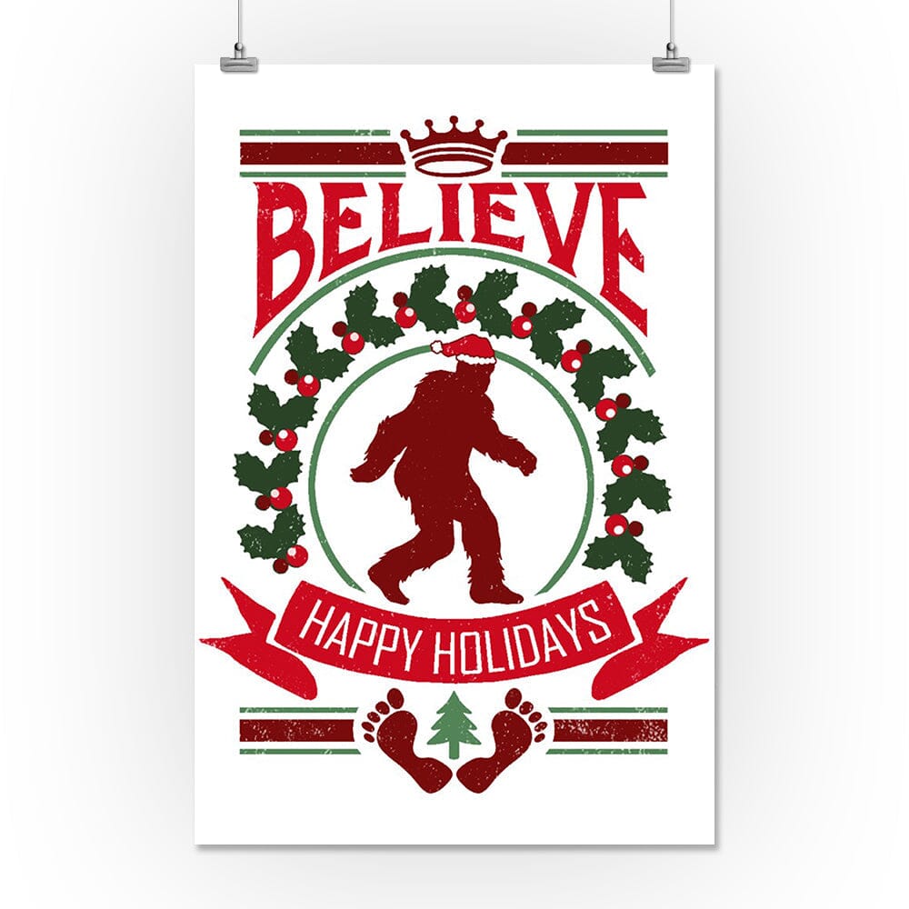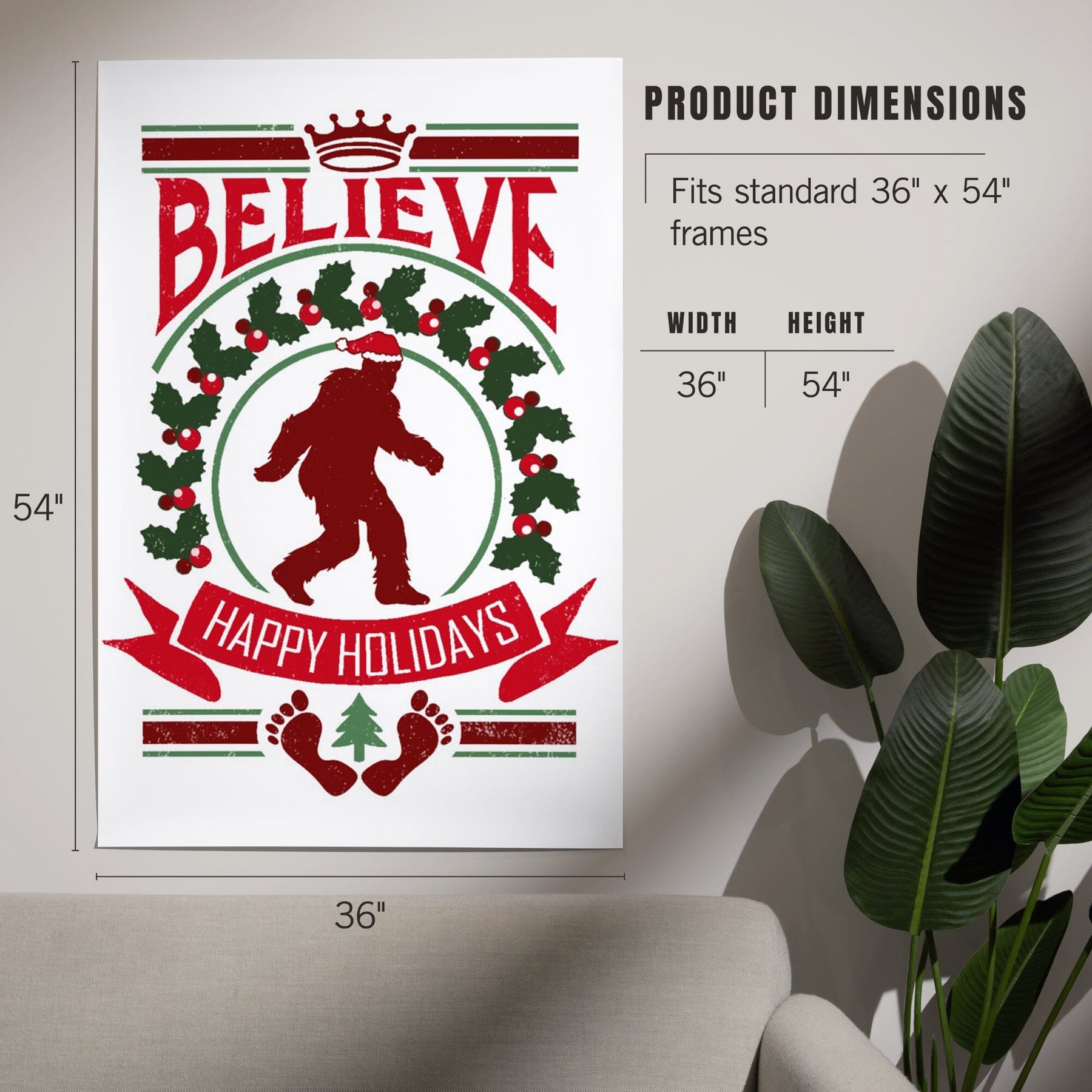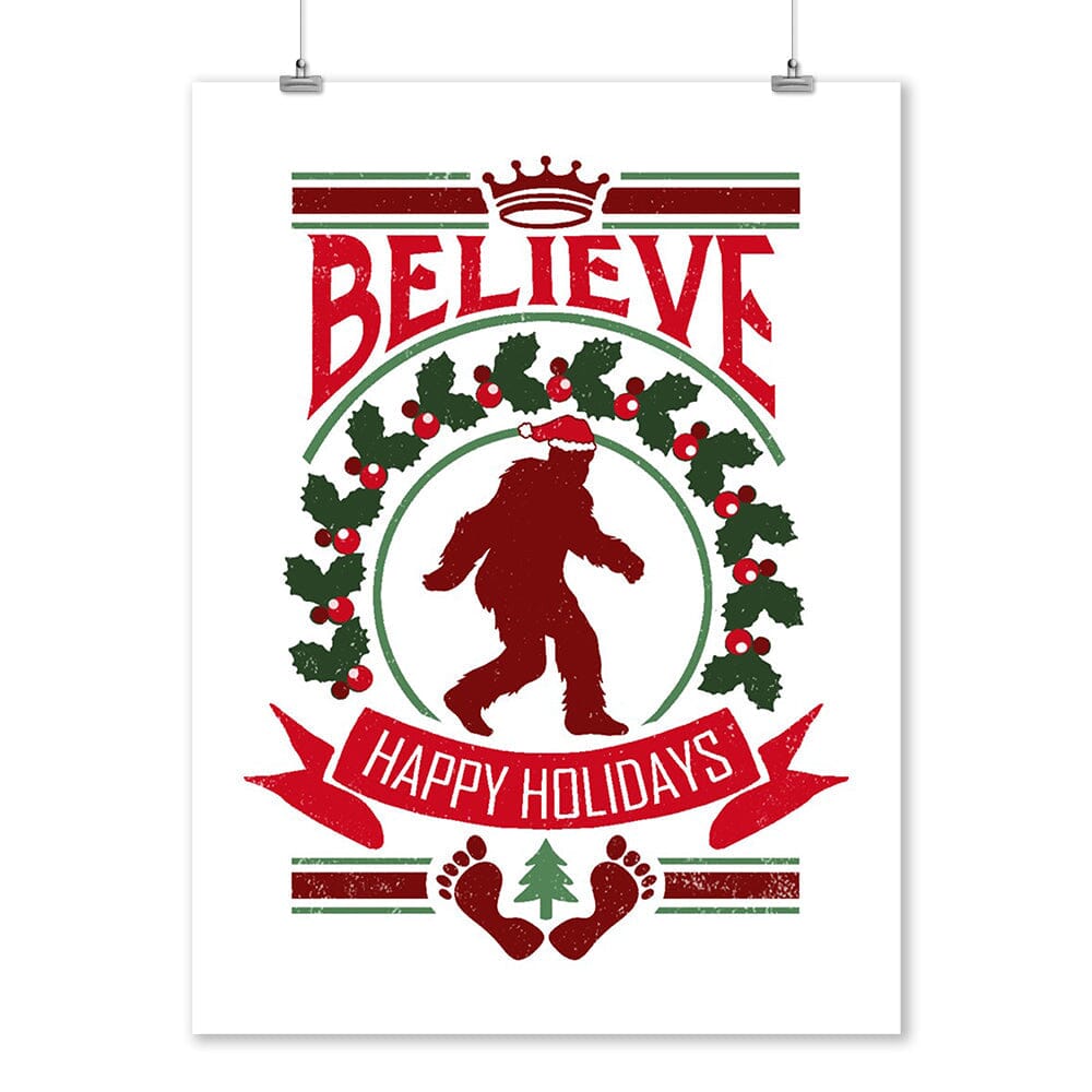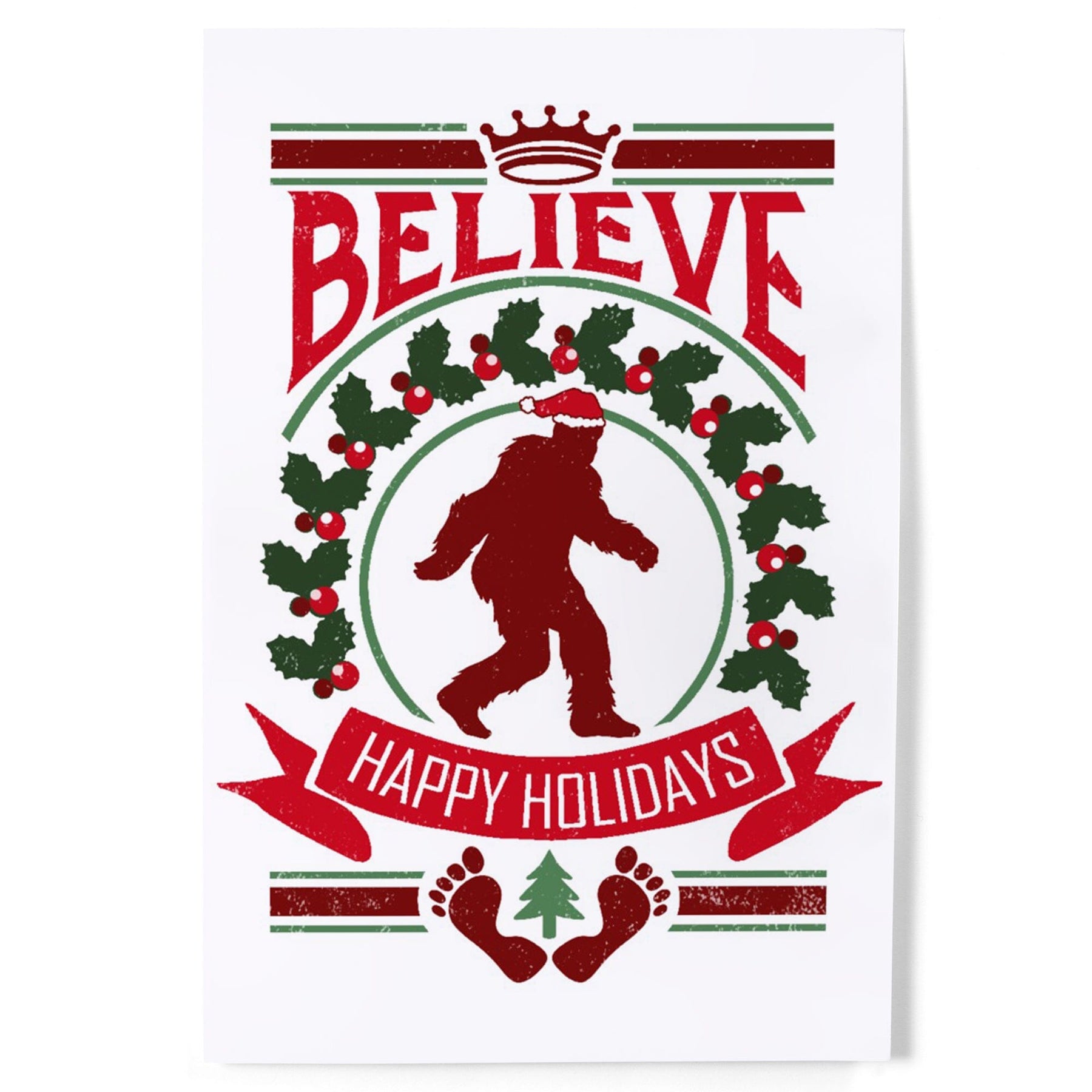 Bigfoot, Happy Holidays, Christmas, Art & Giclee Prints Art Lantern Press