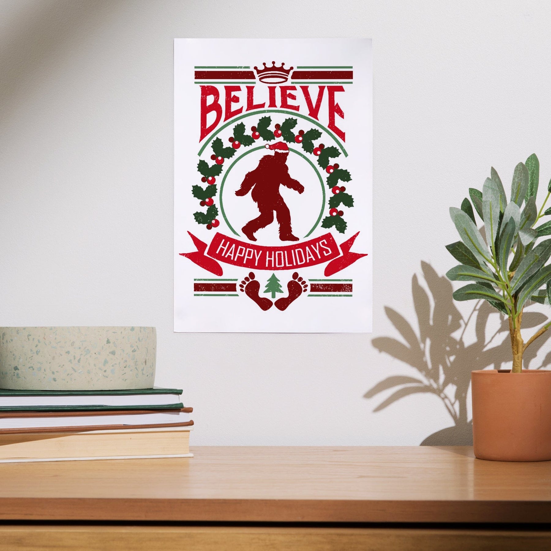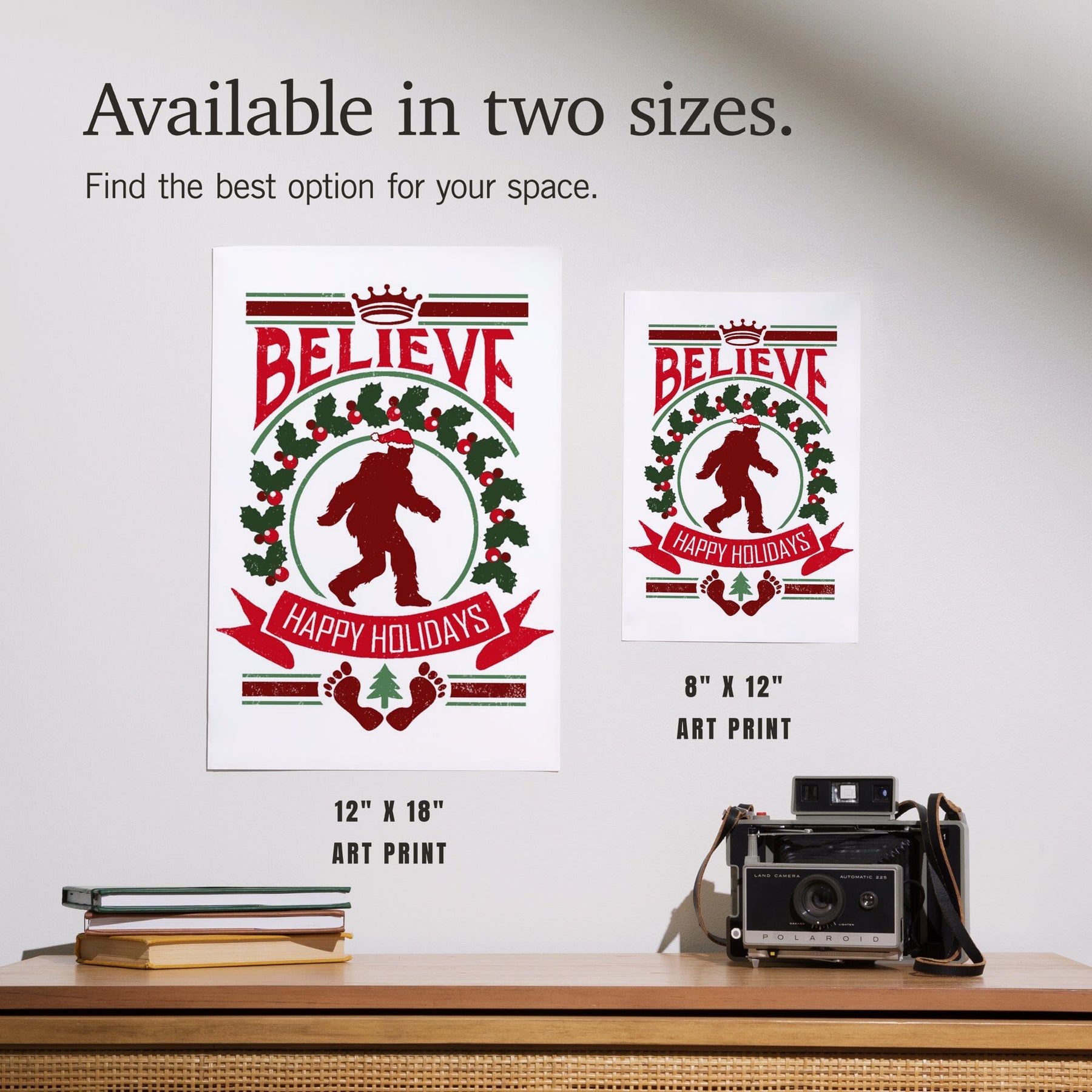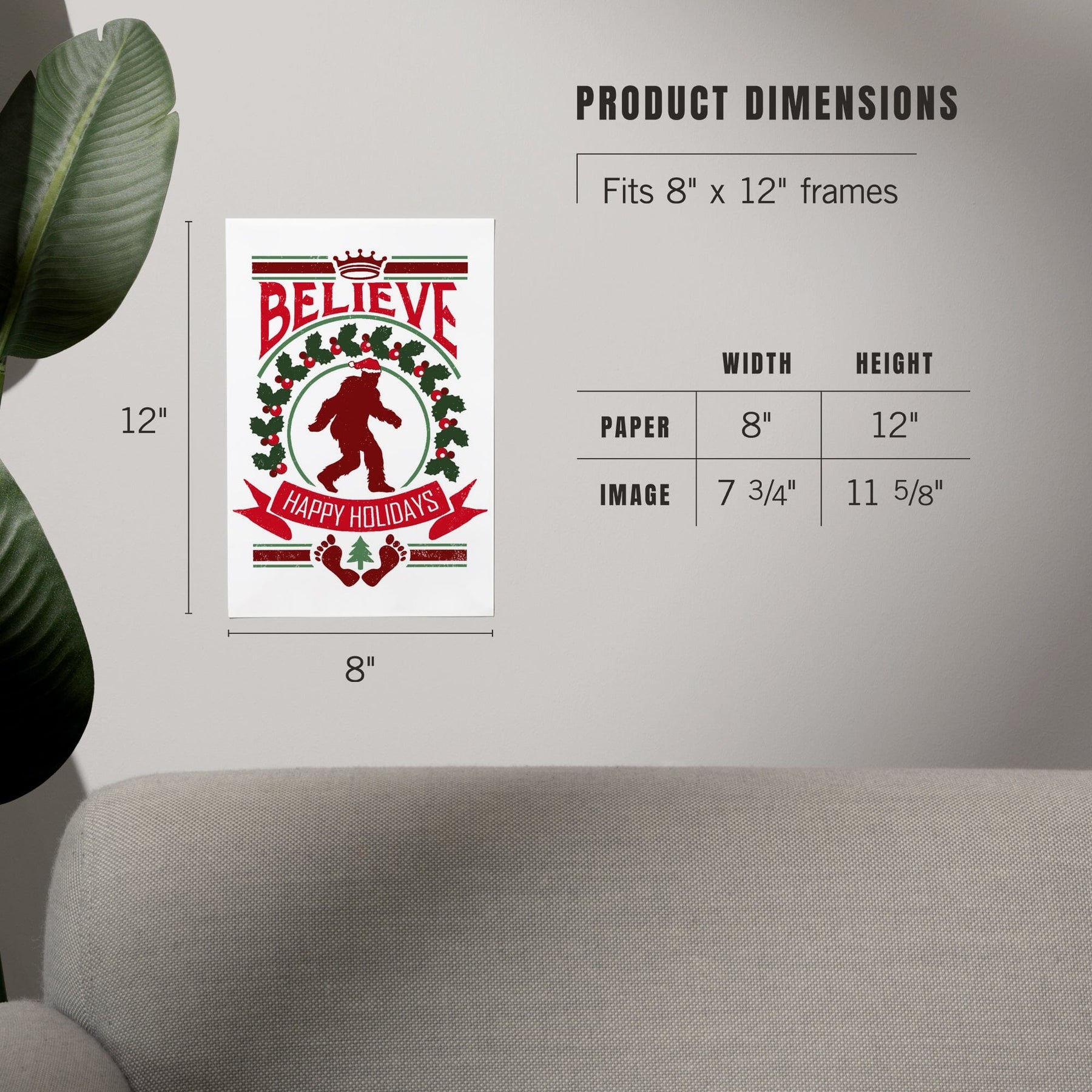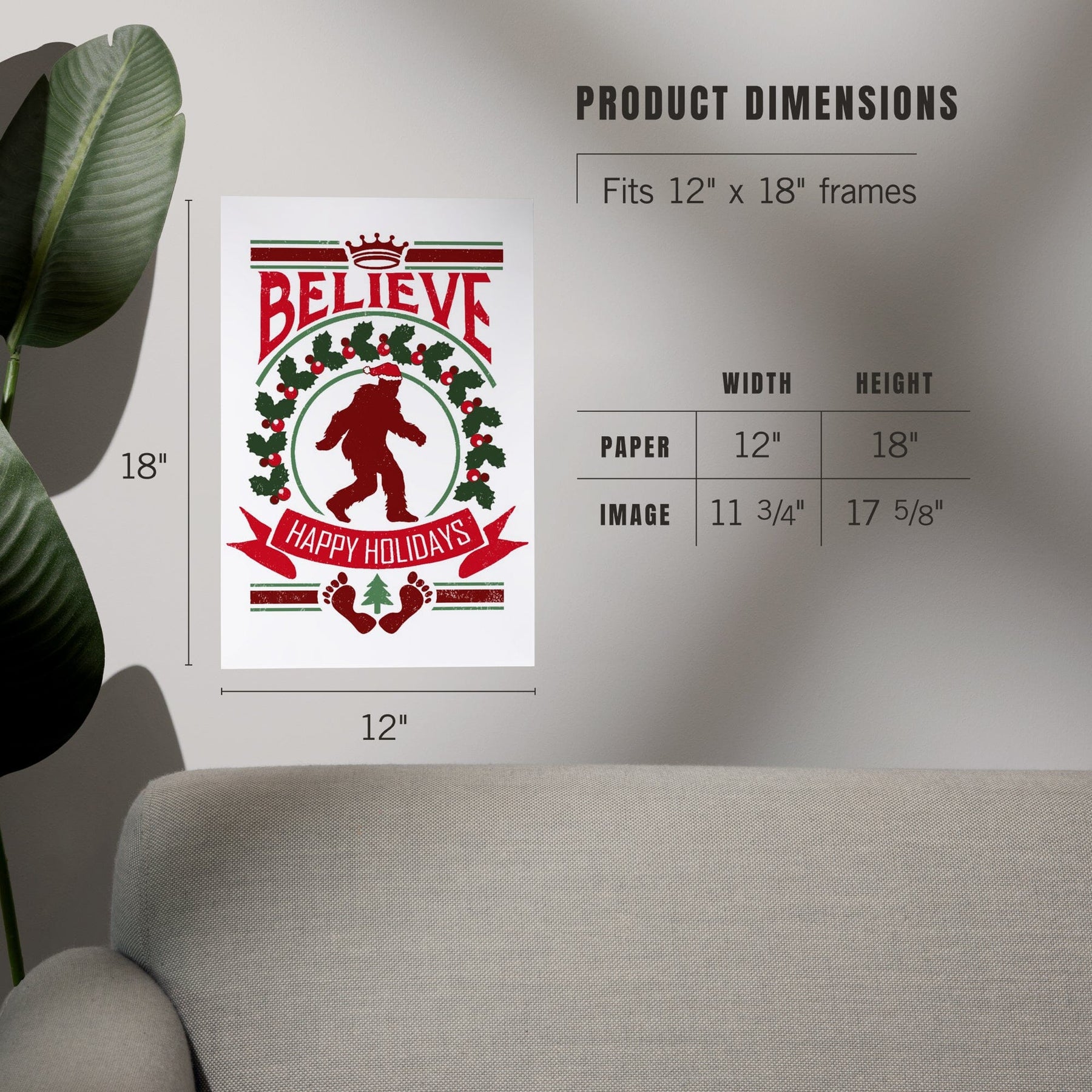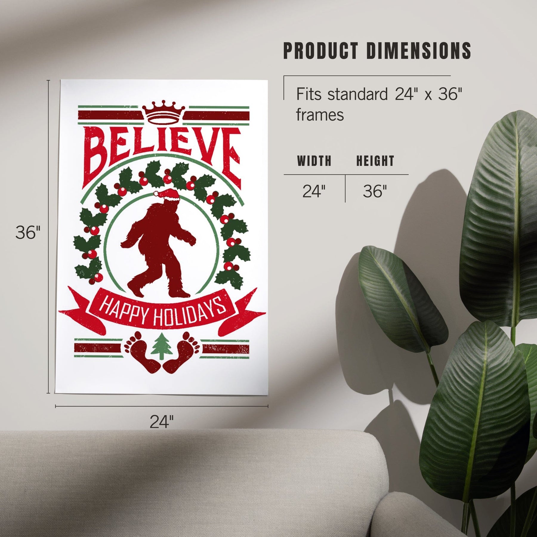 Bigfoot, Happy Holidays, Christmas, Art & Giclee Prints Art Lantern Press