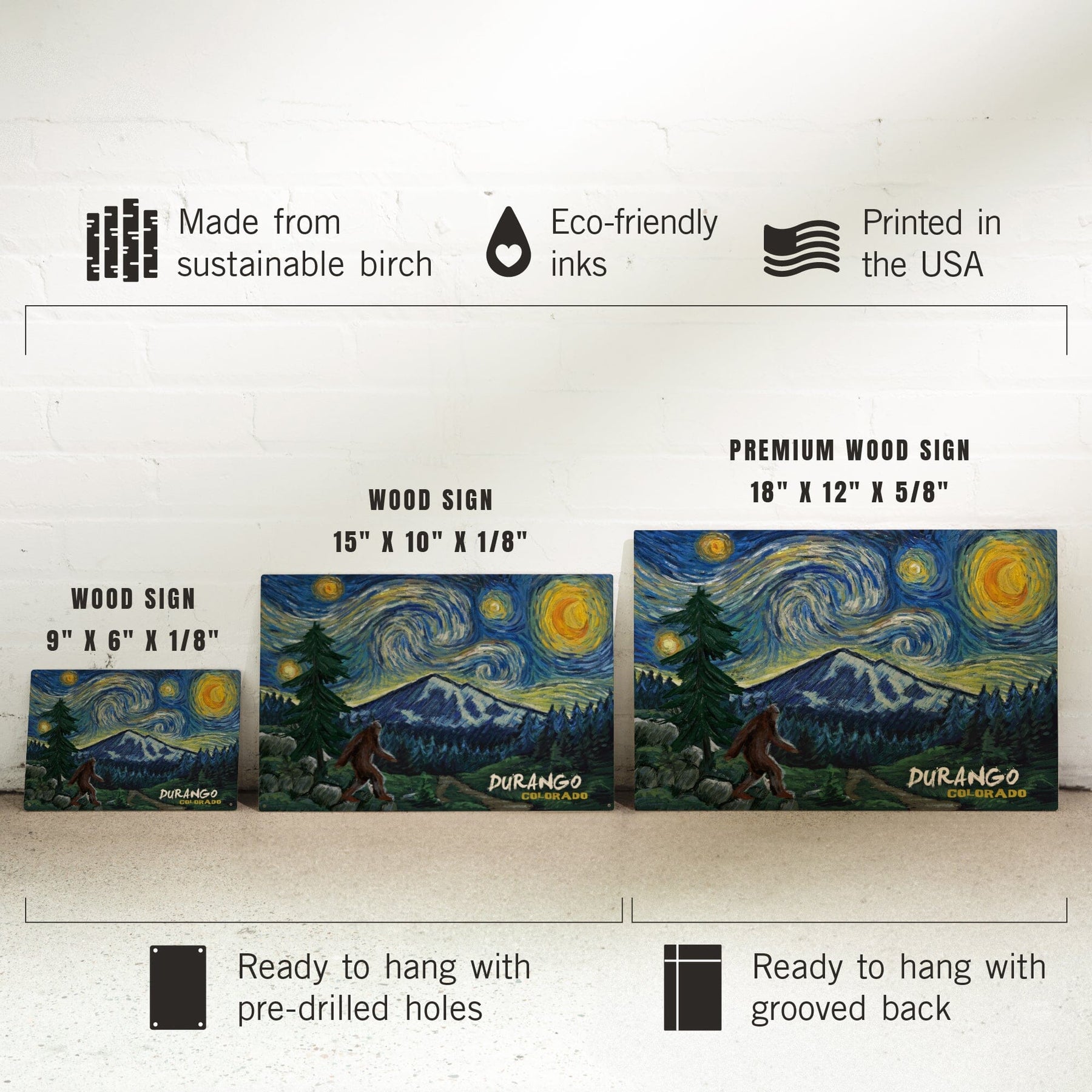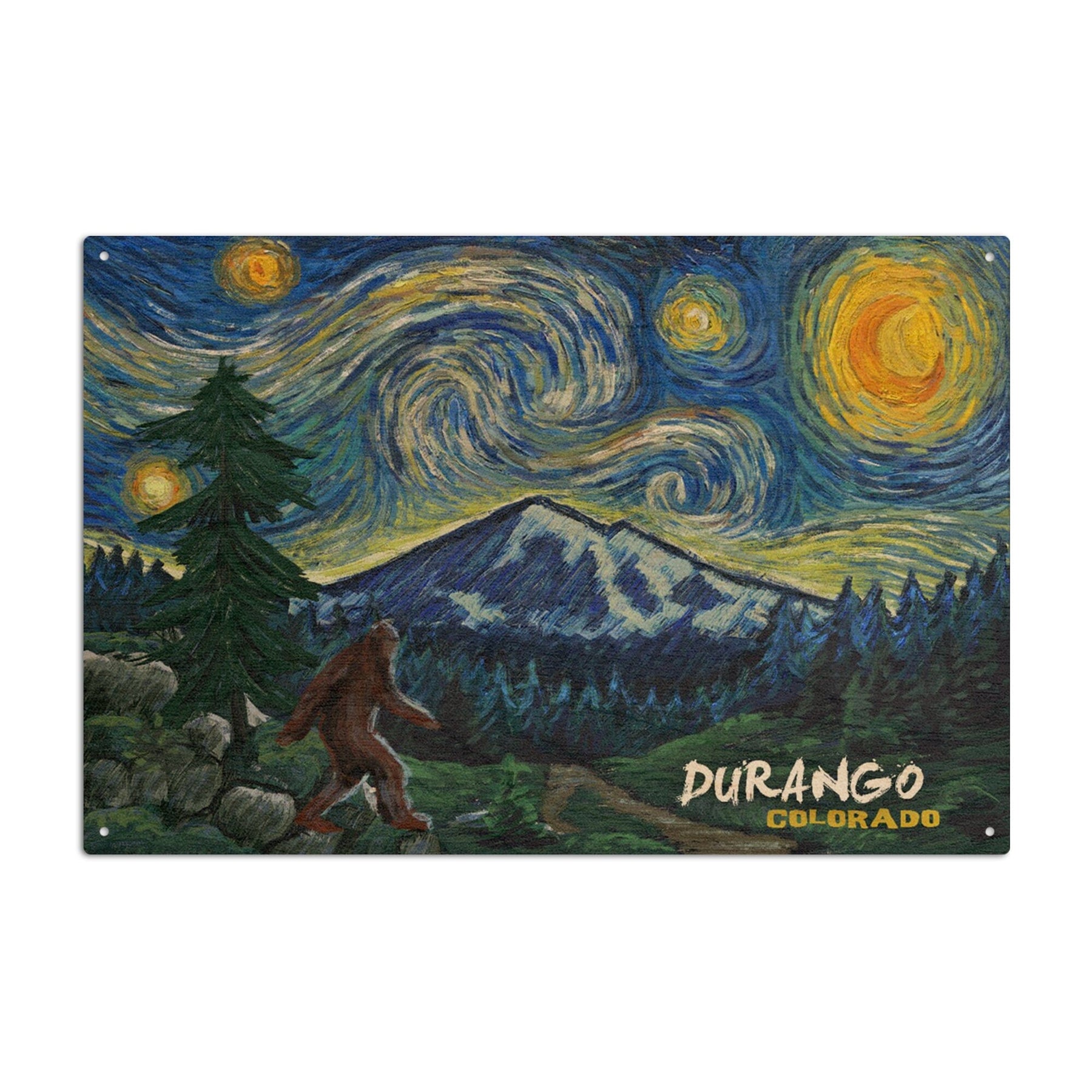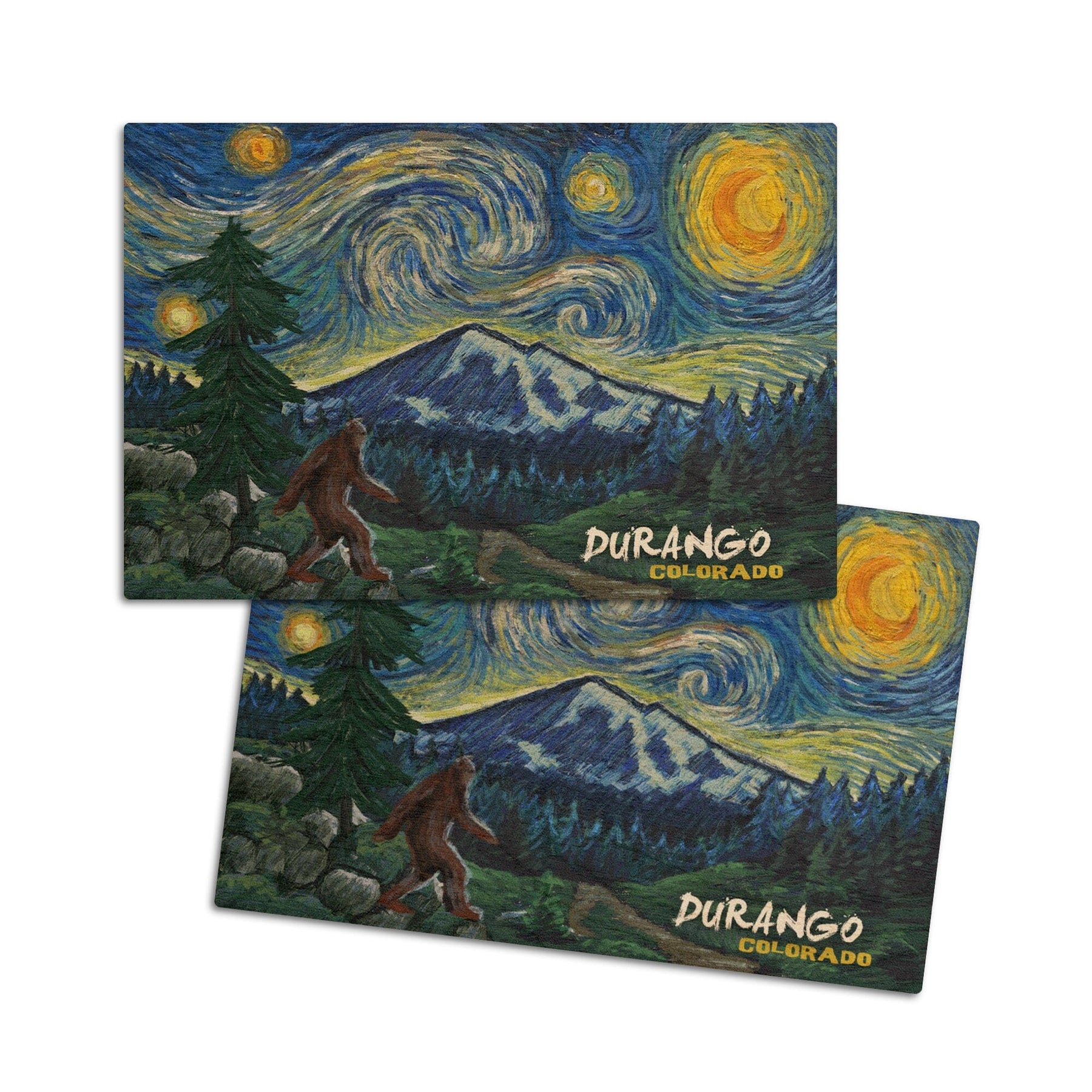Durango, Colorado, Bigfoot, Starry Night, Lantern Press Artwork, Wood Signs and Postcards