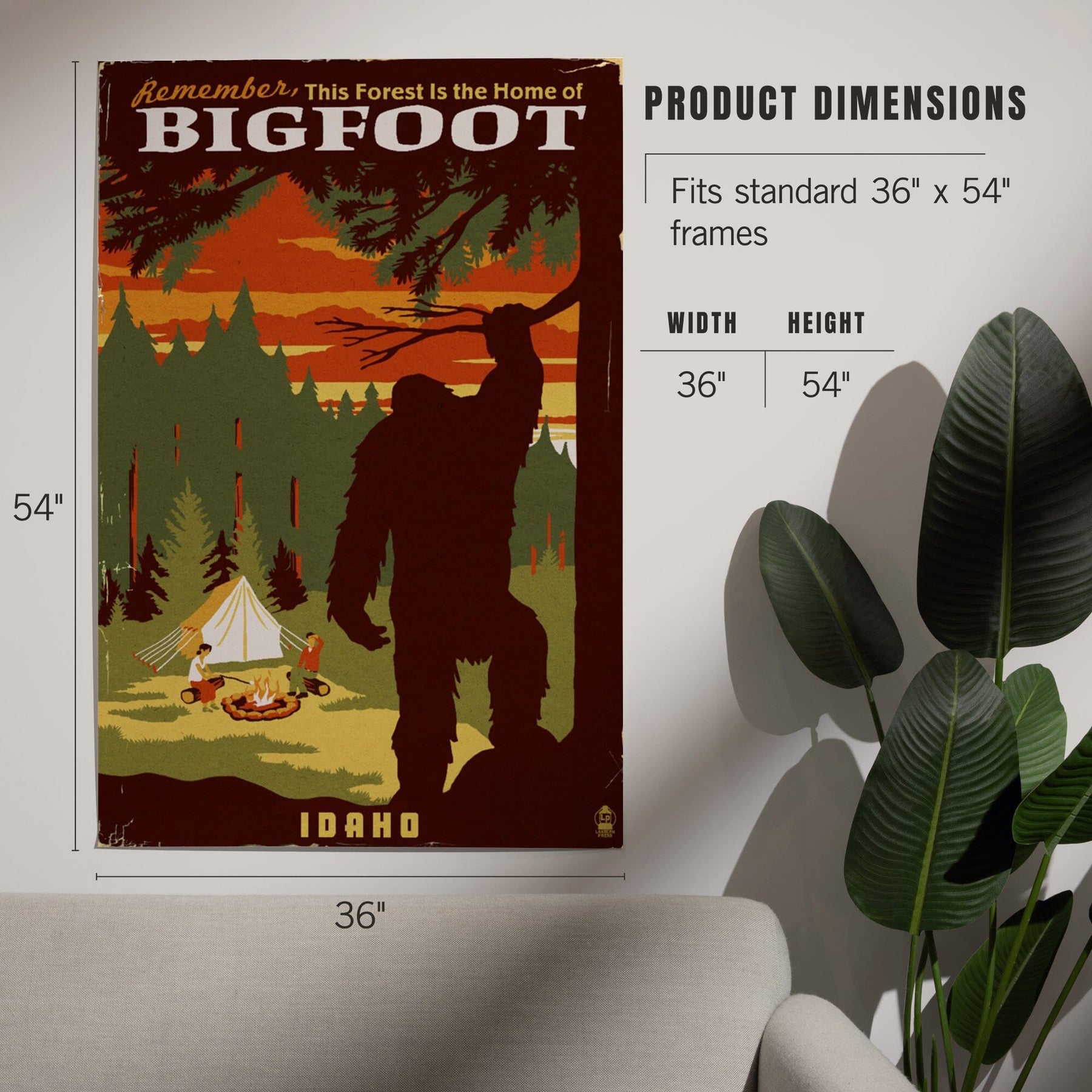 Idaho, Home of Bigfoot, WPA Style, Art & Giclee Prints