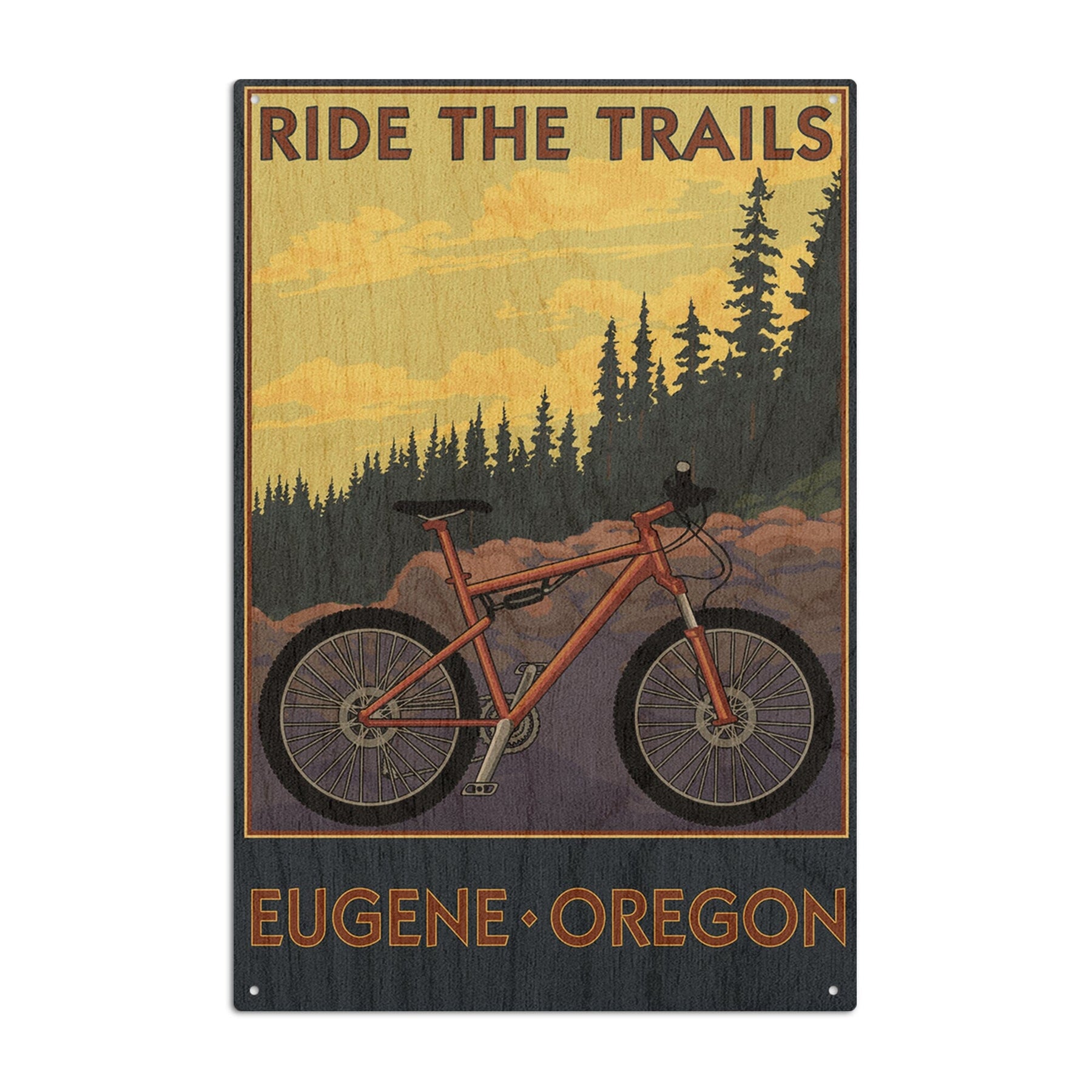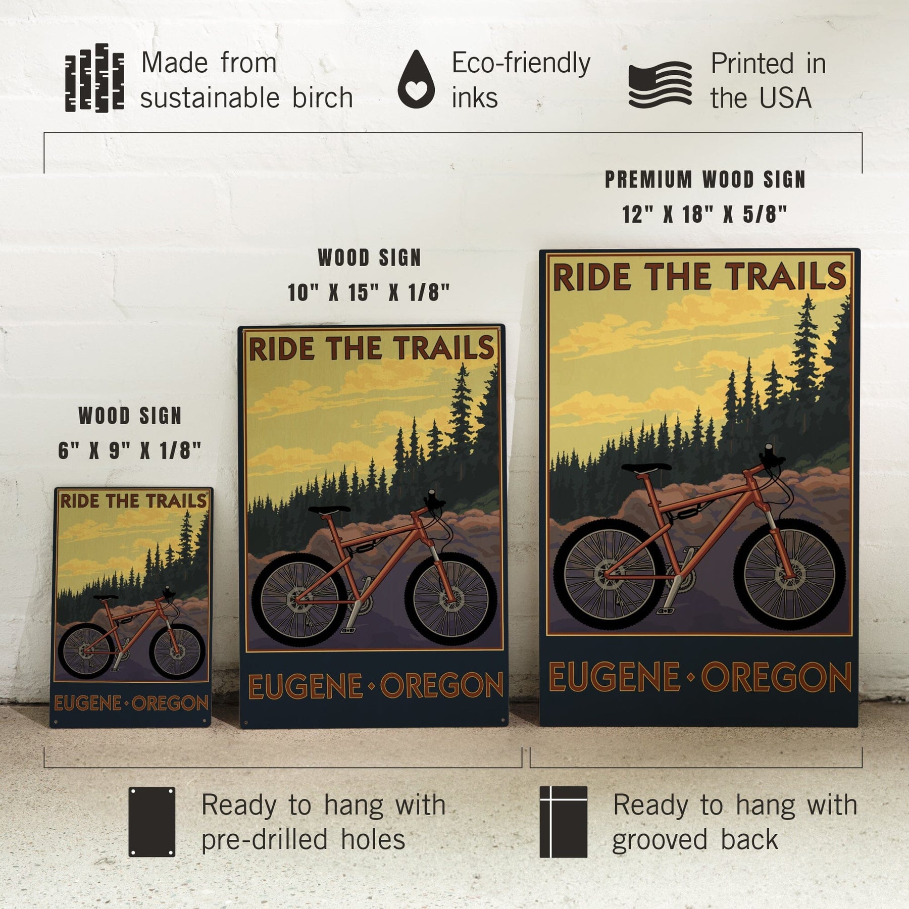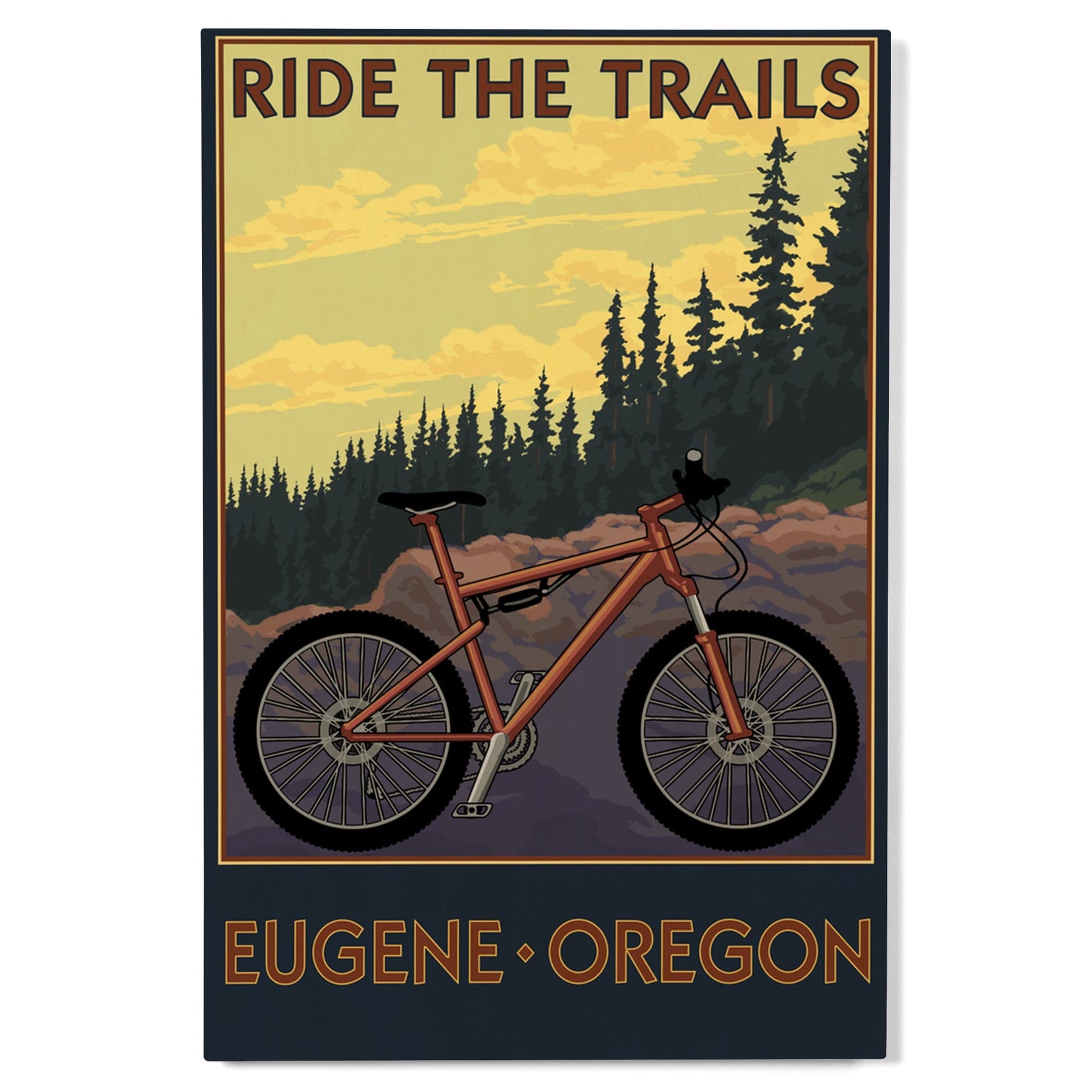 Eugene, Oregon, Ride the Trails, Lantern Press Artwork, Wood Signs and Postcards