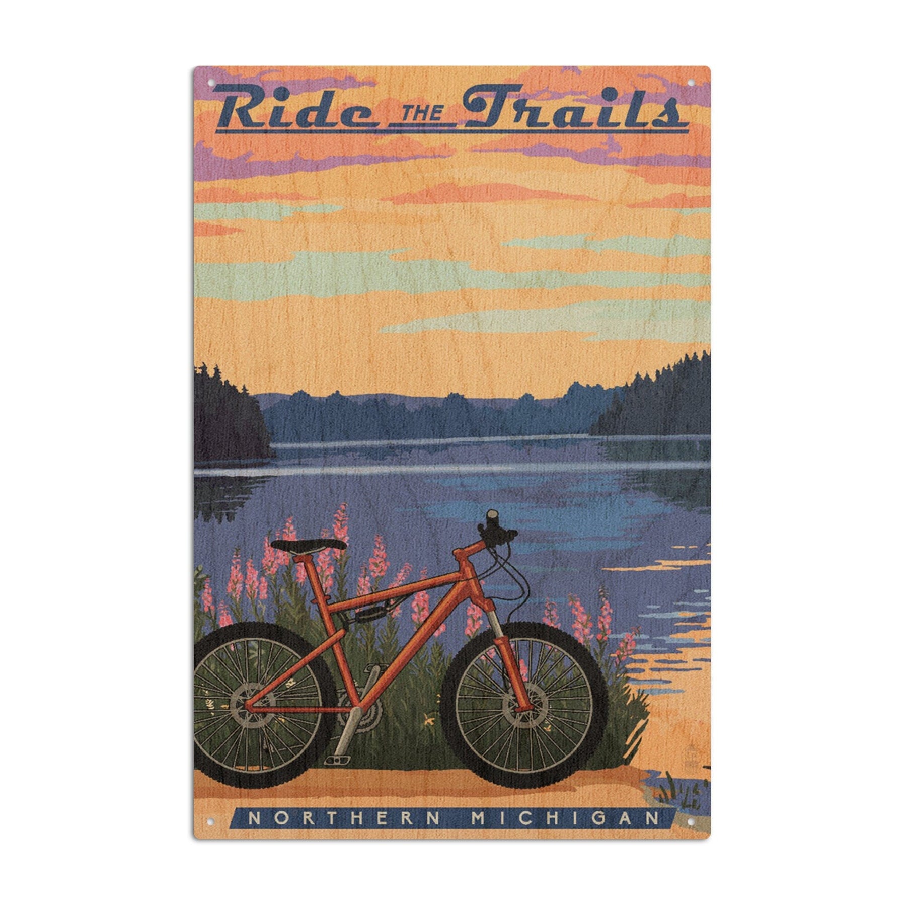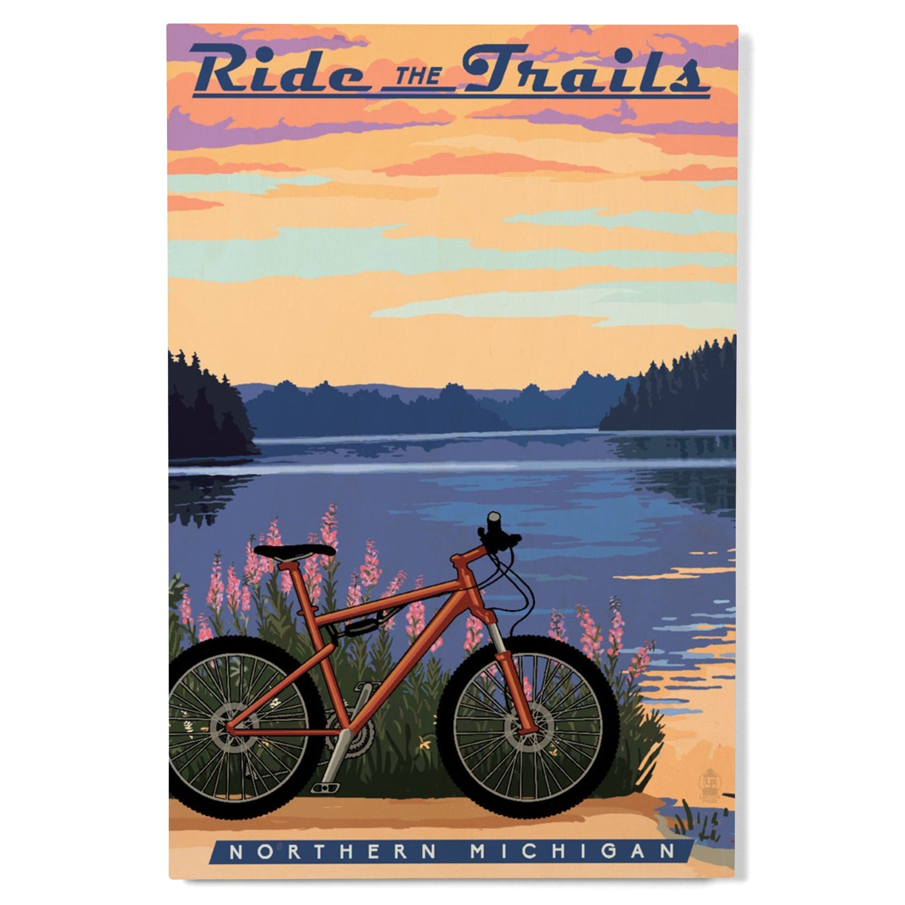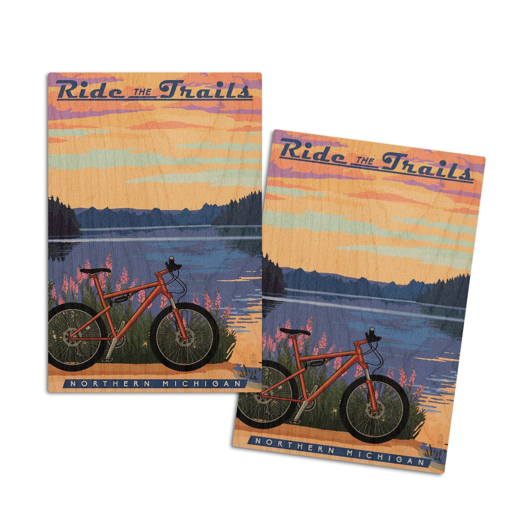Northern Michigan, Bike & Lake, Ride the Trails, Lantern Press Artwork, Wood Signs and Postcards Wood Lantern Press