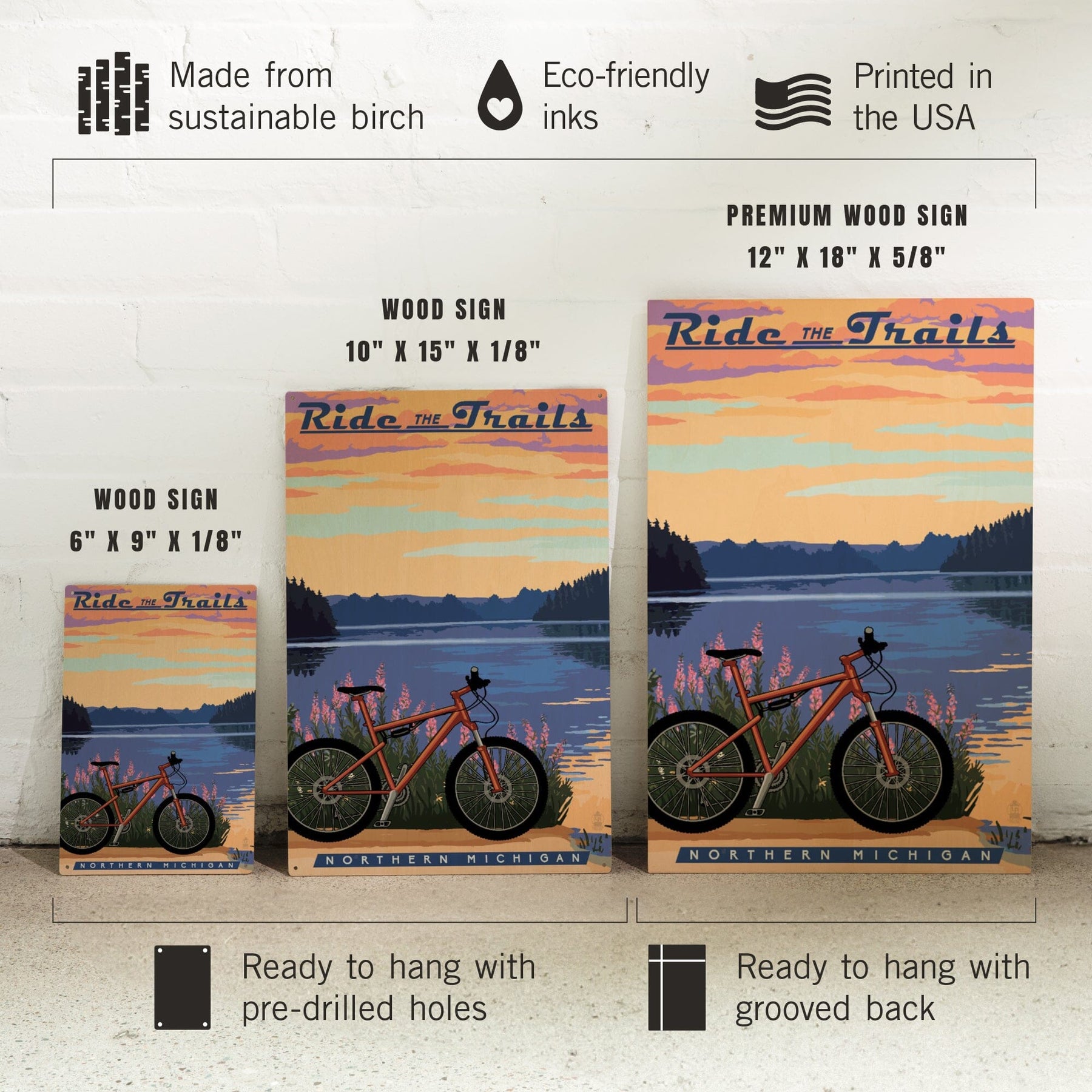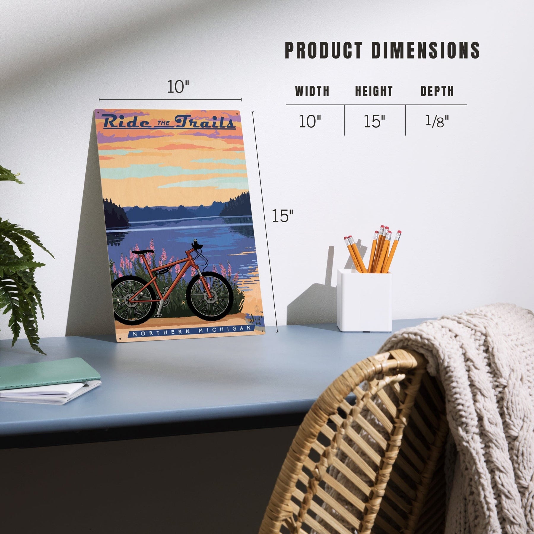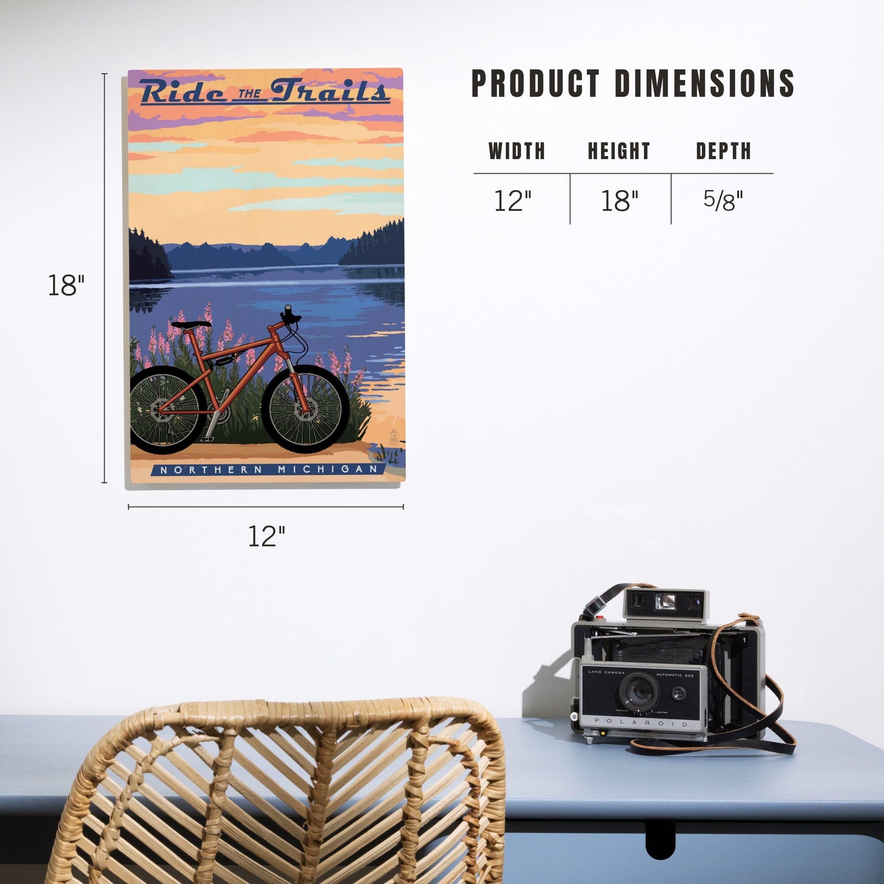 Northern Michigan, Bike & Lake, Ride the Trails, Lantern Press Artwork, Wood Signs and Postcards Wood Lantern Press