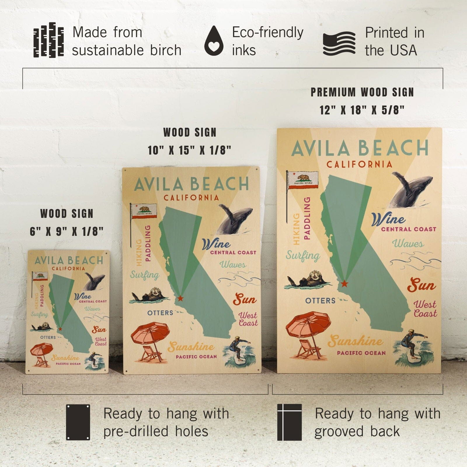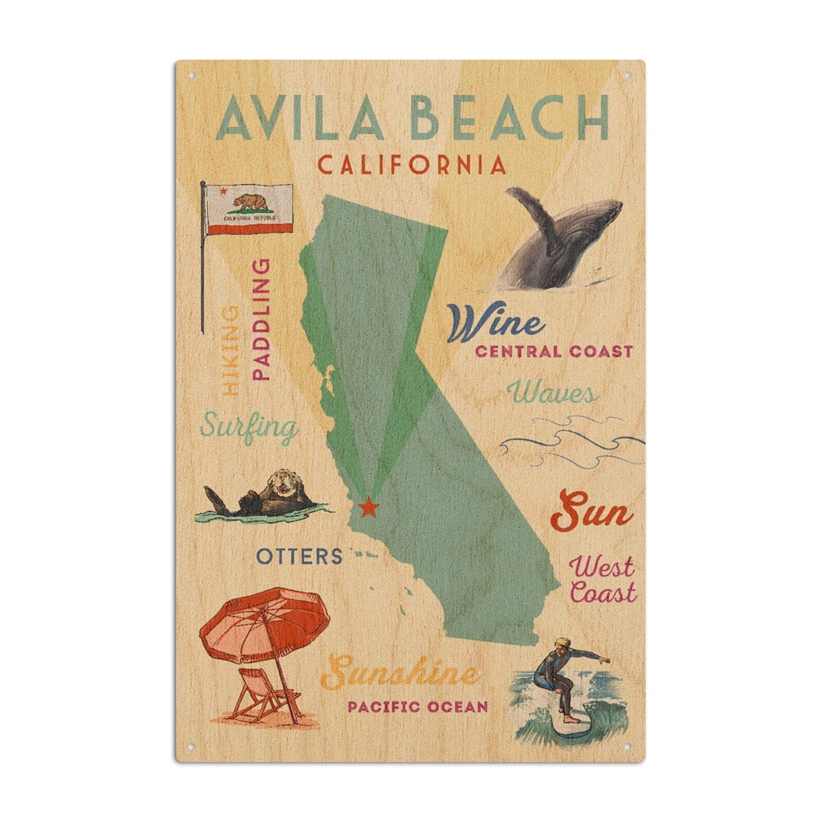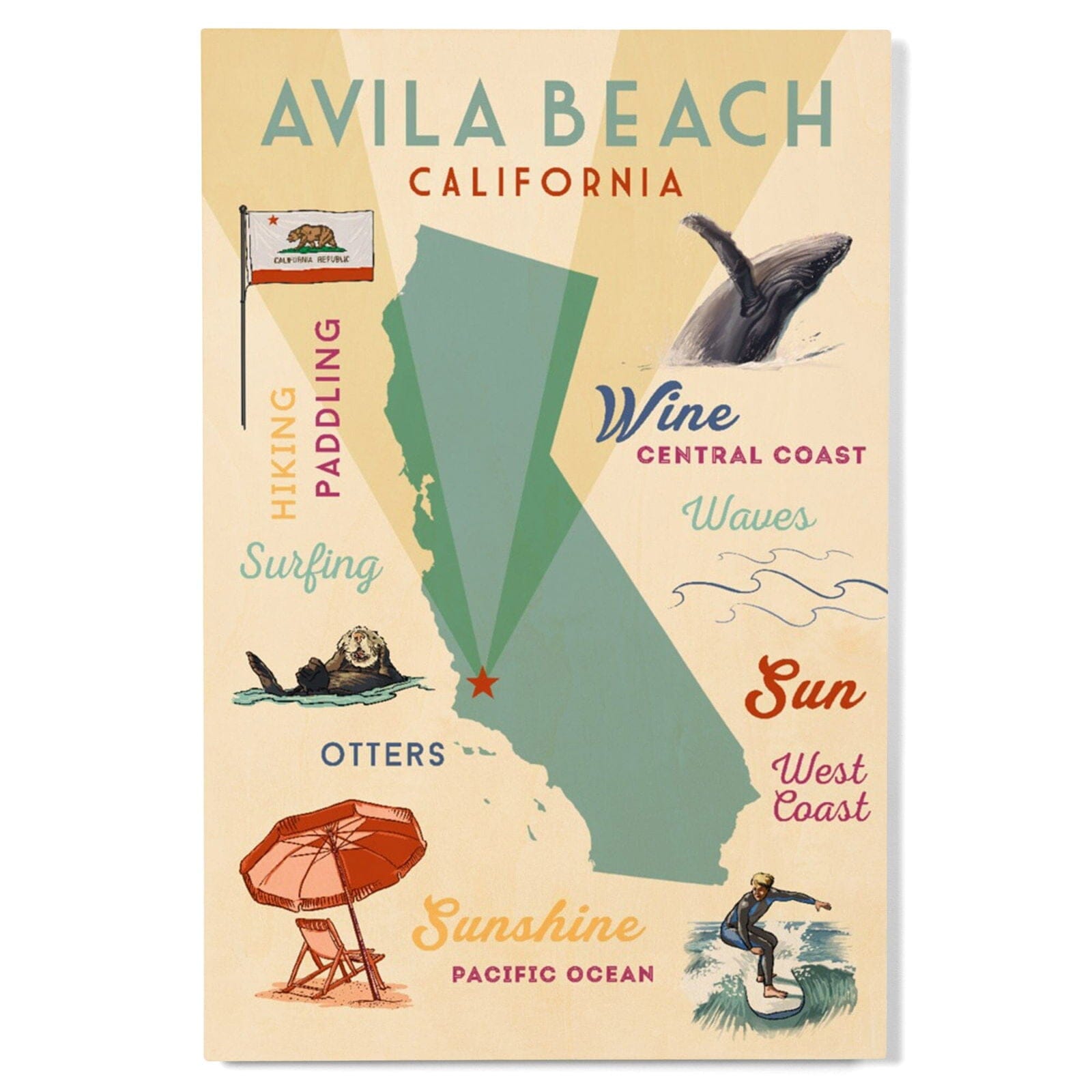 Avila Beach, California, Typography & Icons, Lantern Press Artwork, Wood Signs and Postcards