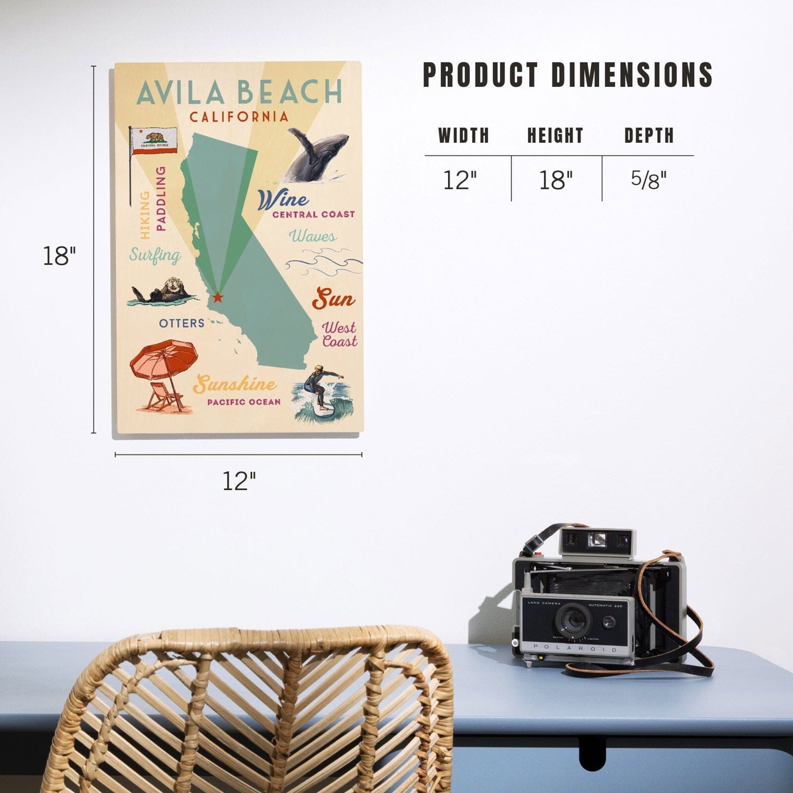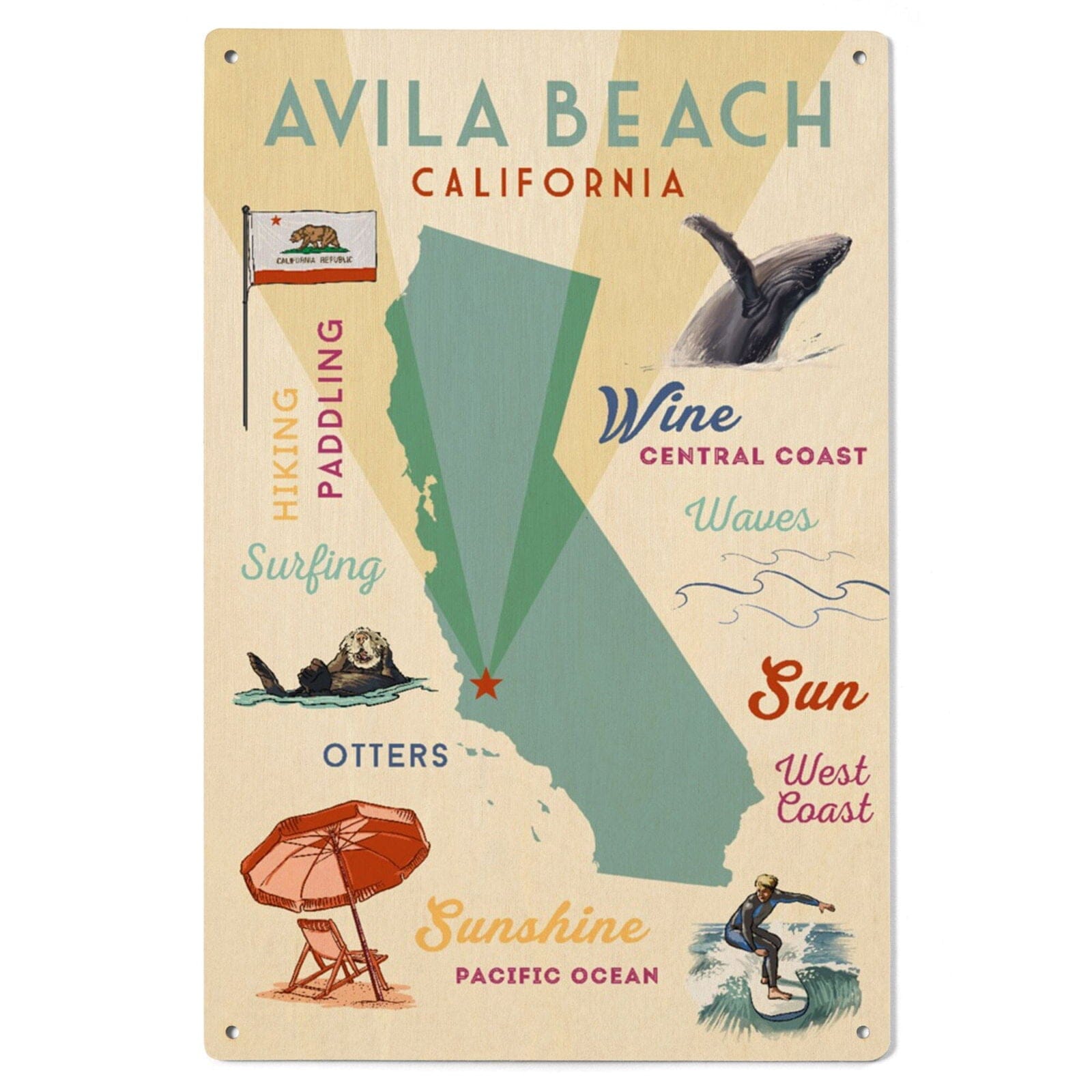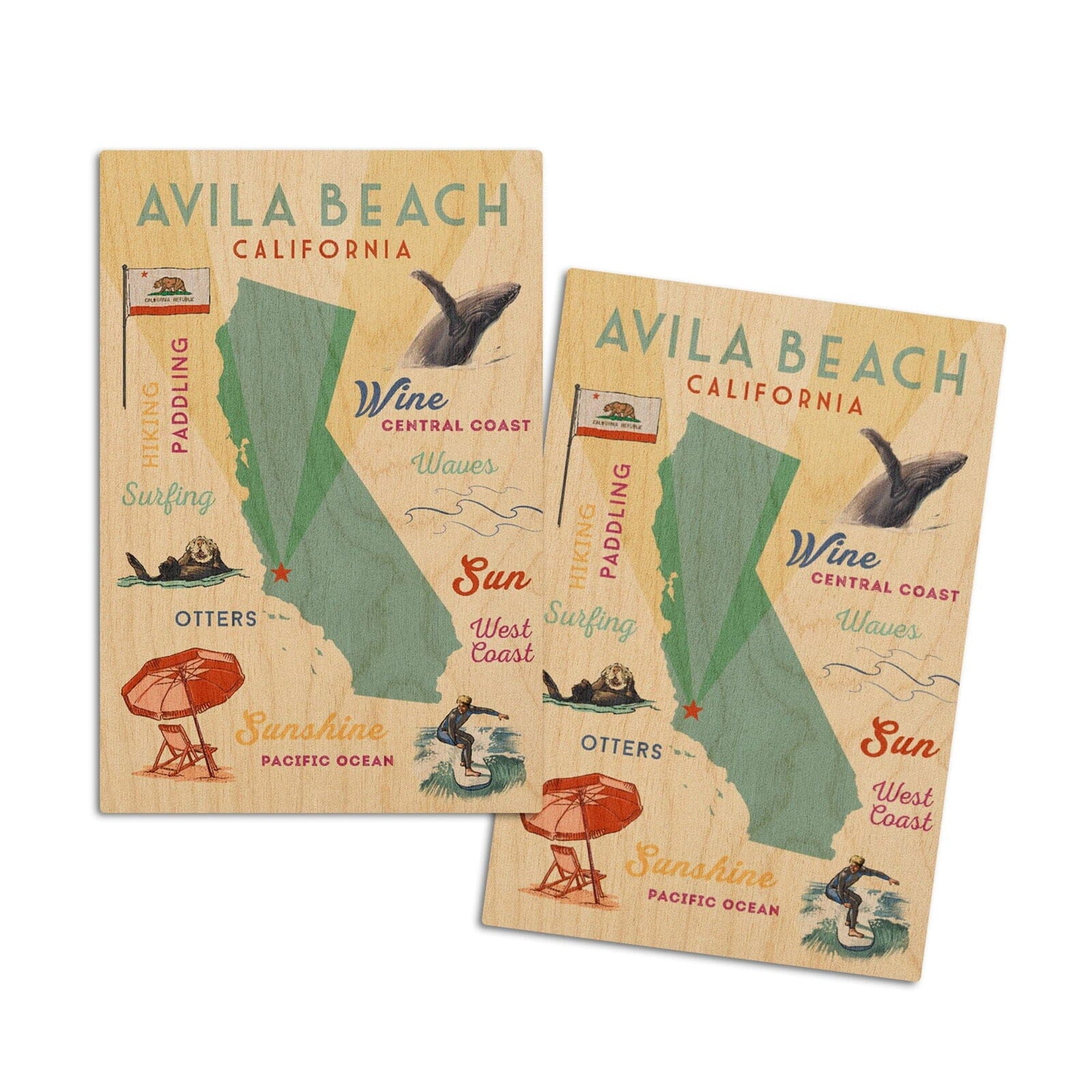 Avila Beach, California, Typography & Icons, Lantern Press Artwork, Wood Signs and Postcards