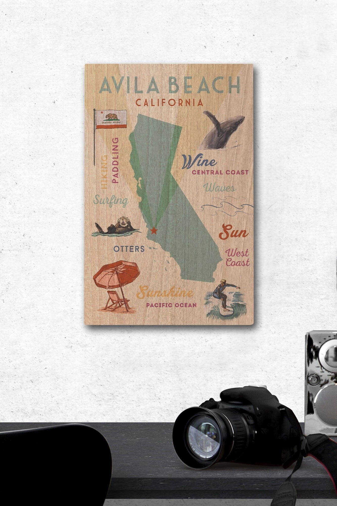 Avila Beach, California, Typography & Icons, Lantern Press Artwork, Wood Signs and Postcards Wood Lantern Press