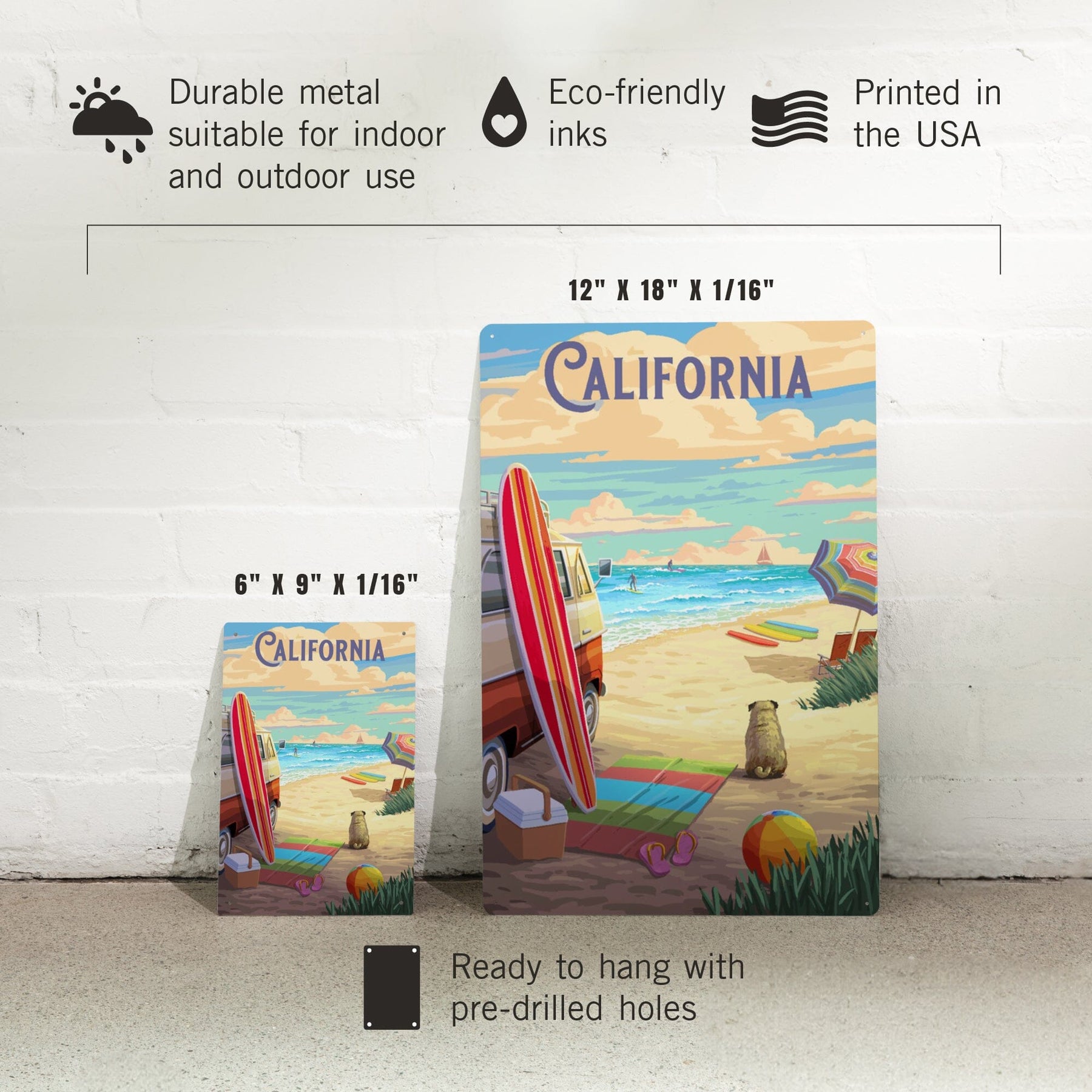 California, Beach Activities, Metal Signs Metal Lantern Press