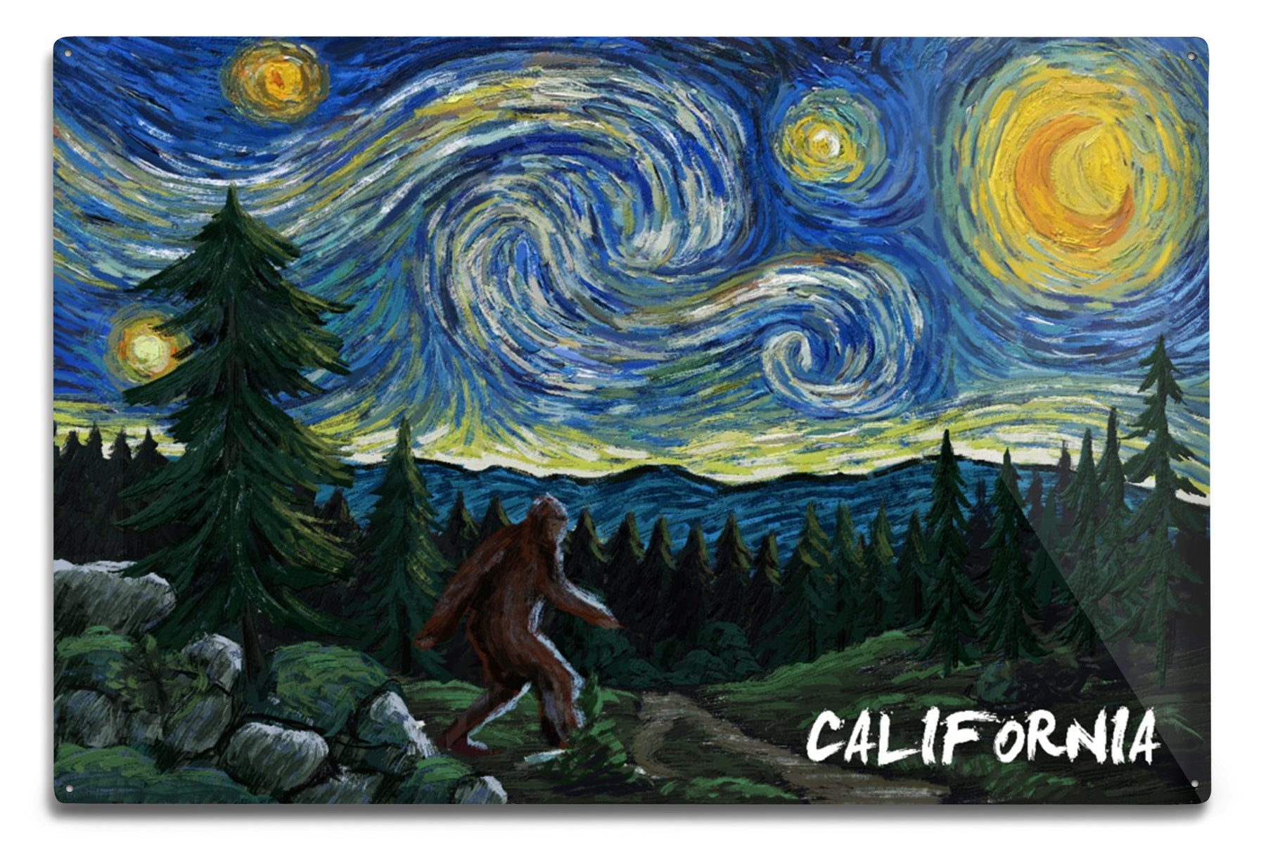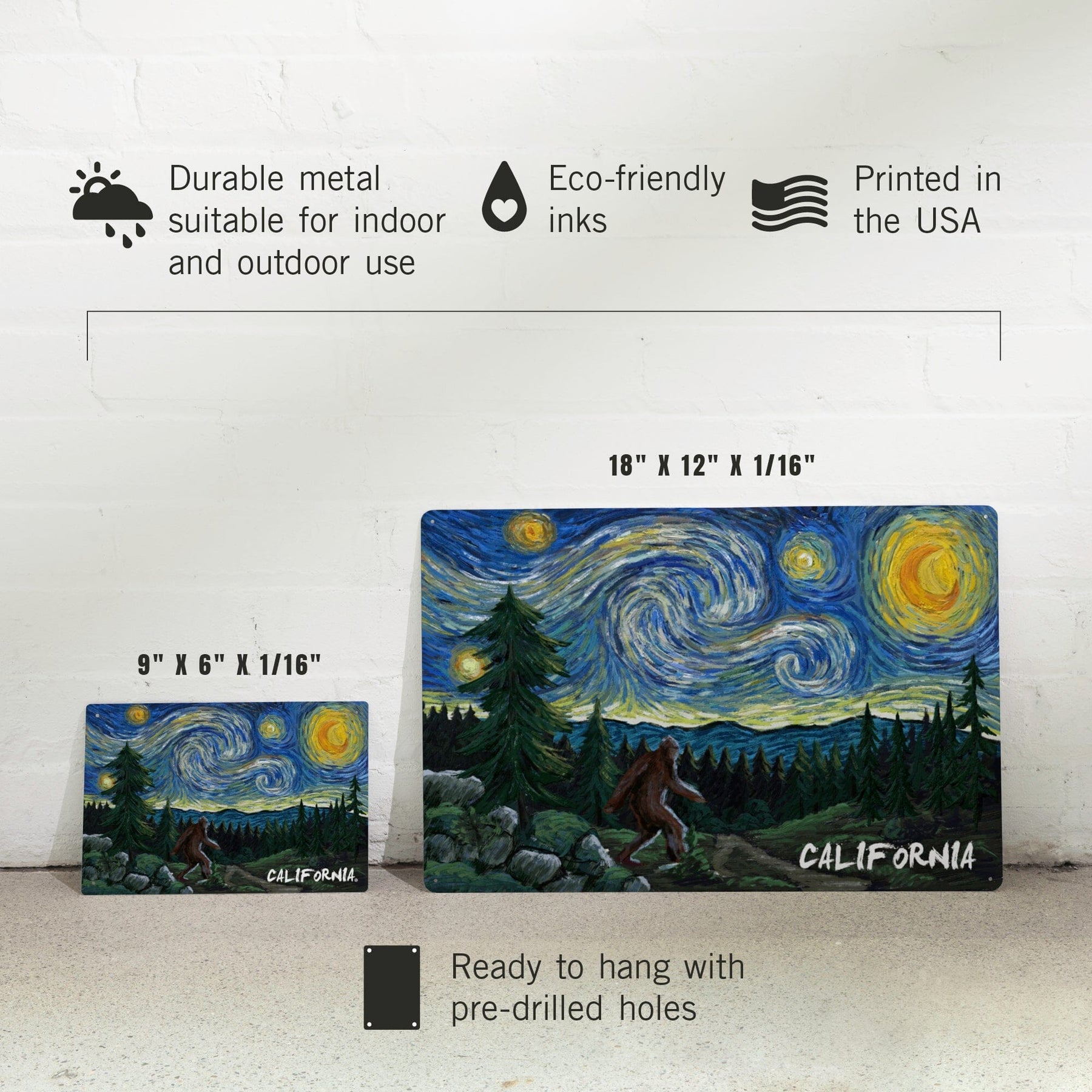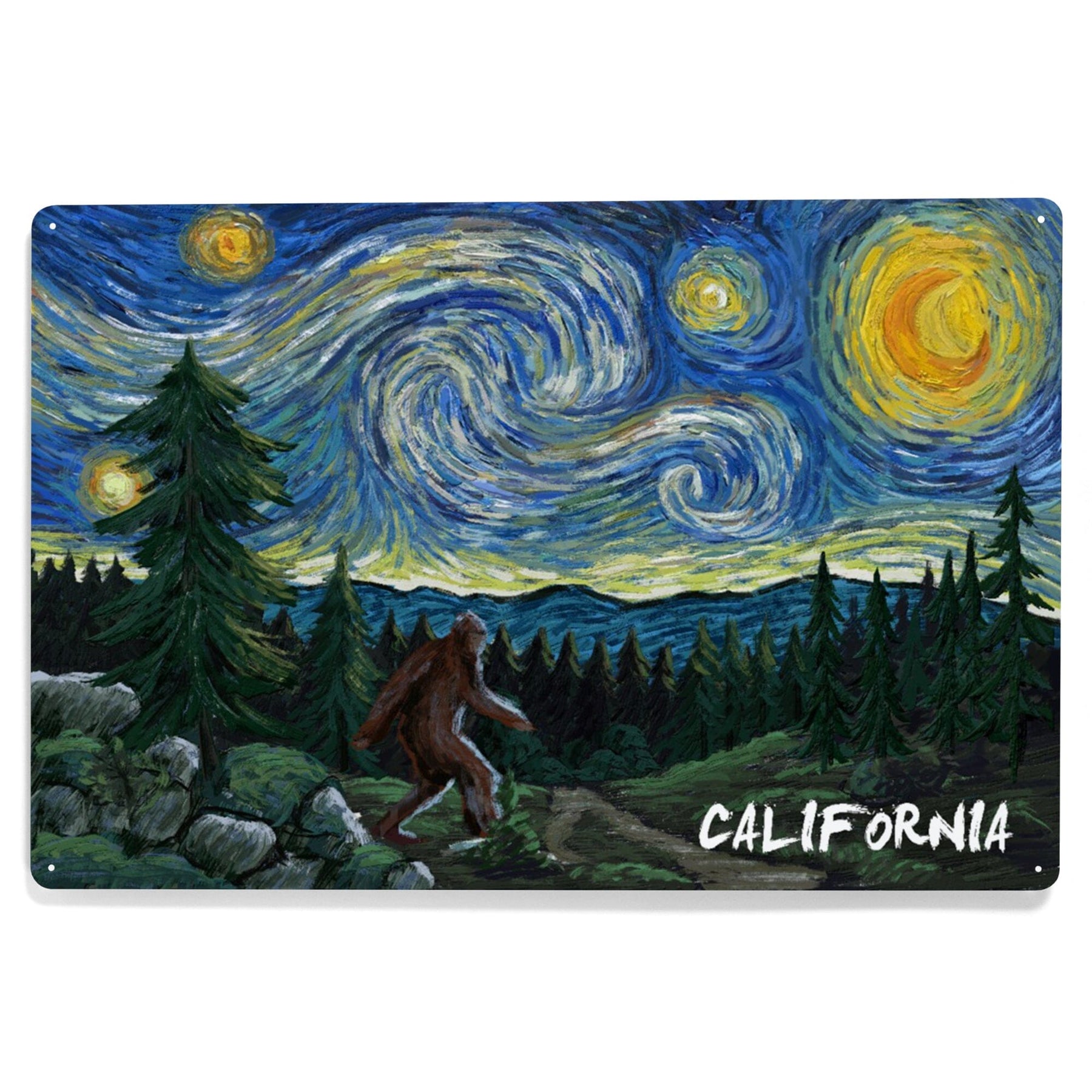 California, Bigfoot, Starry Night, Metal Signs Metal Lantern Press