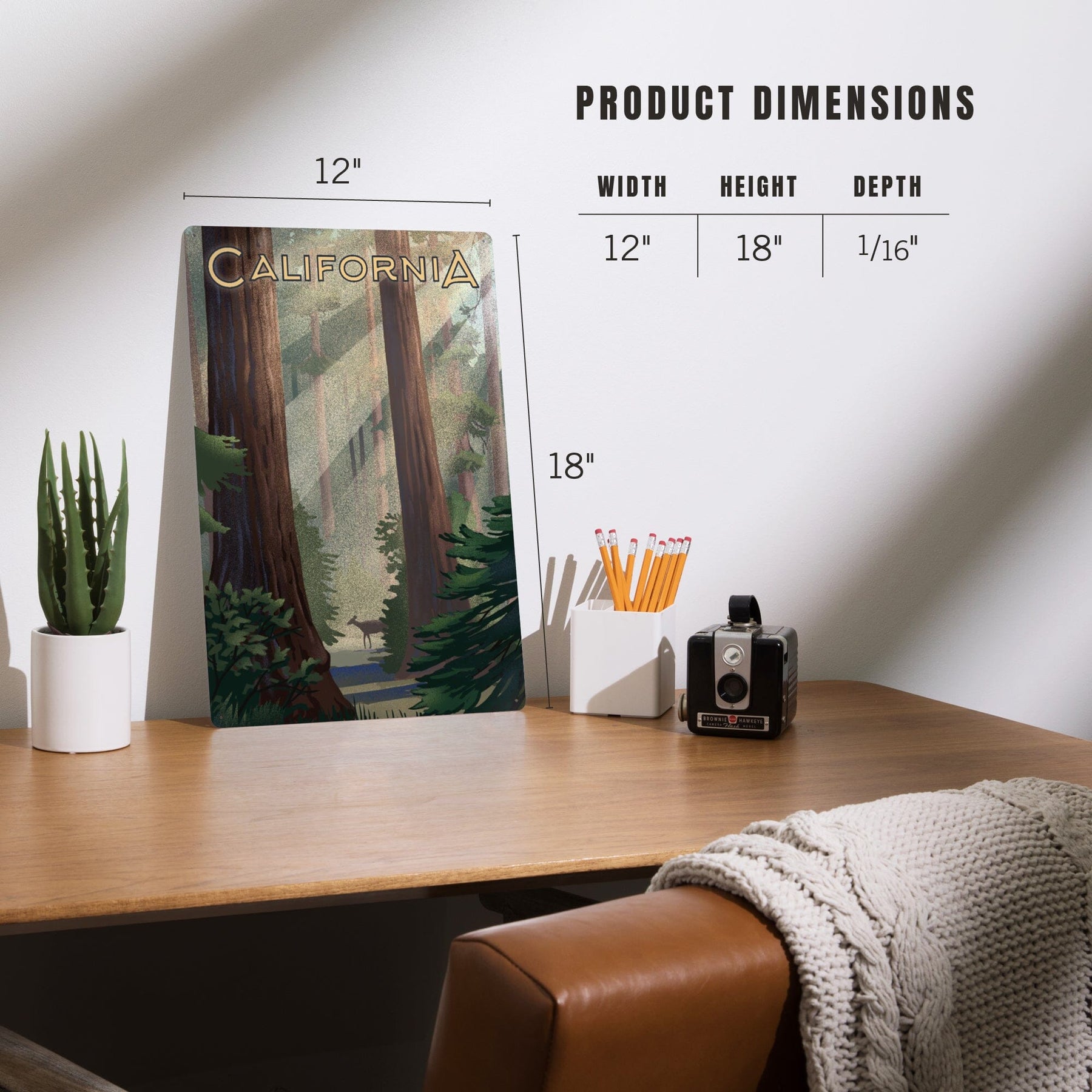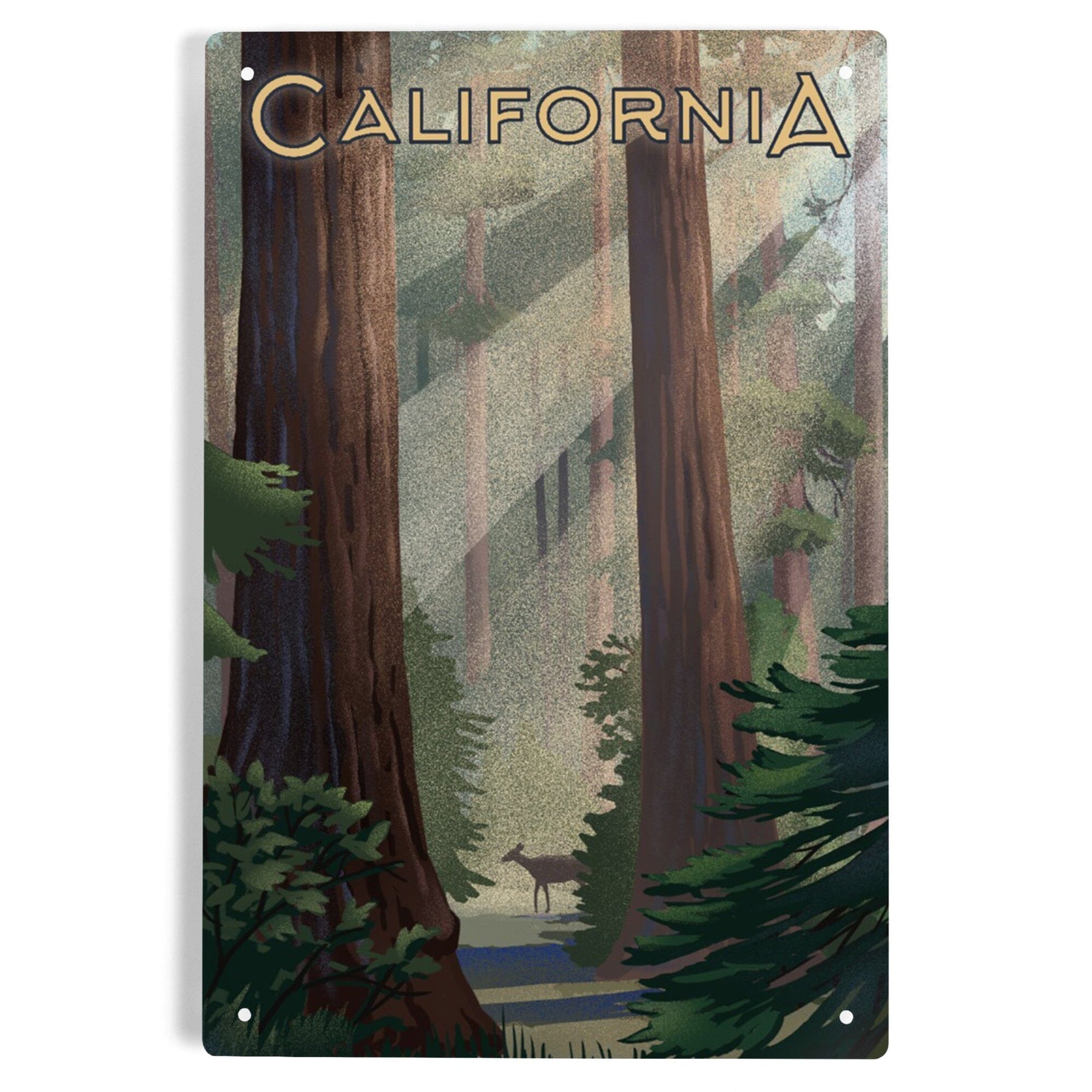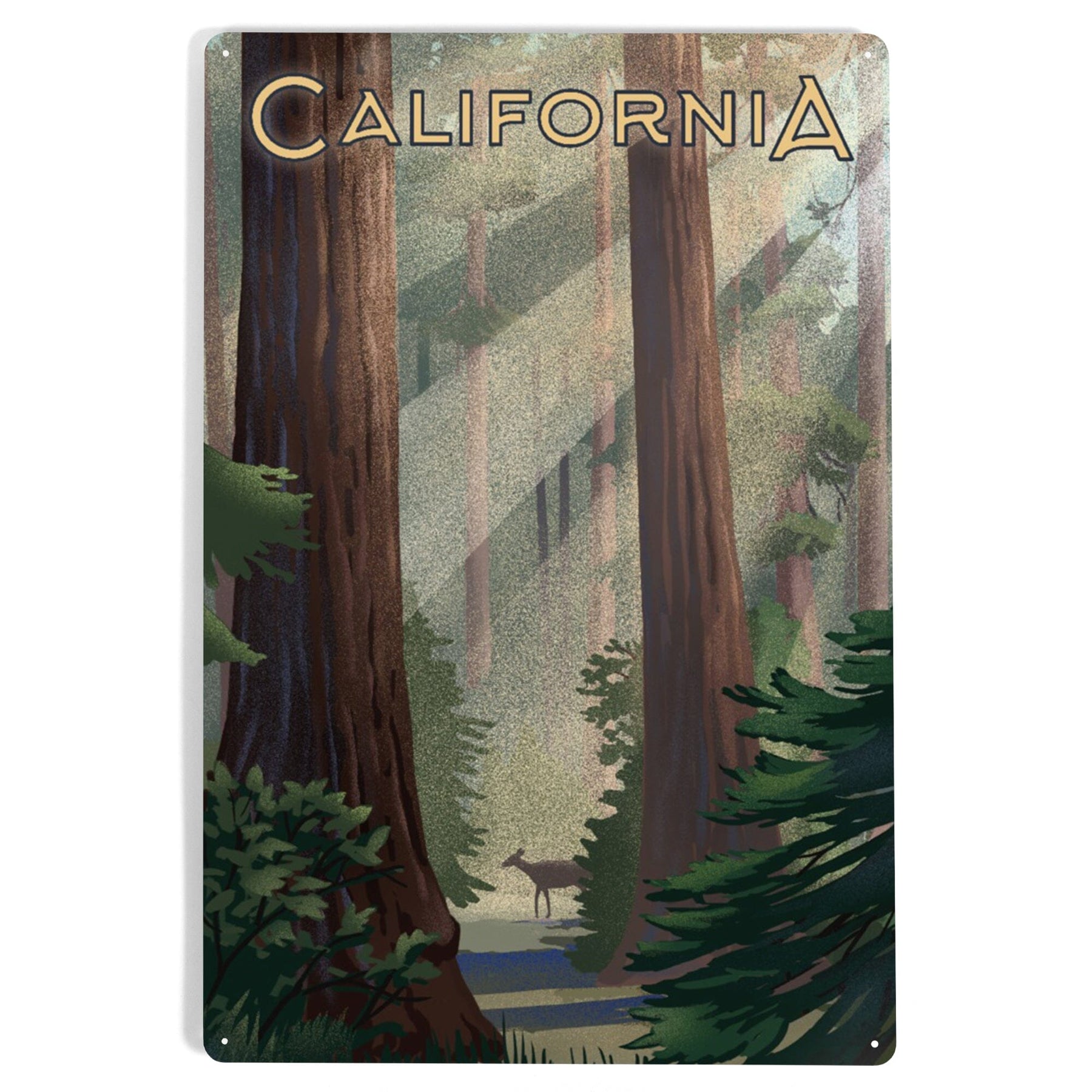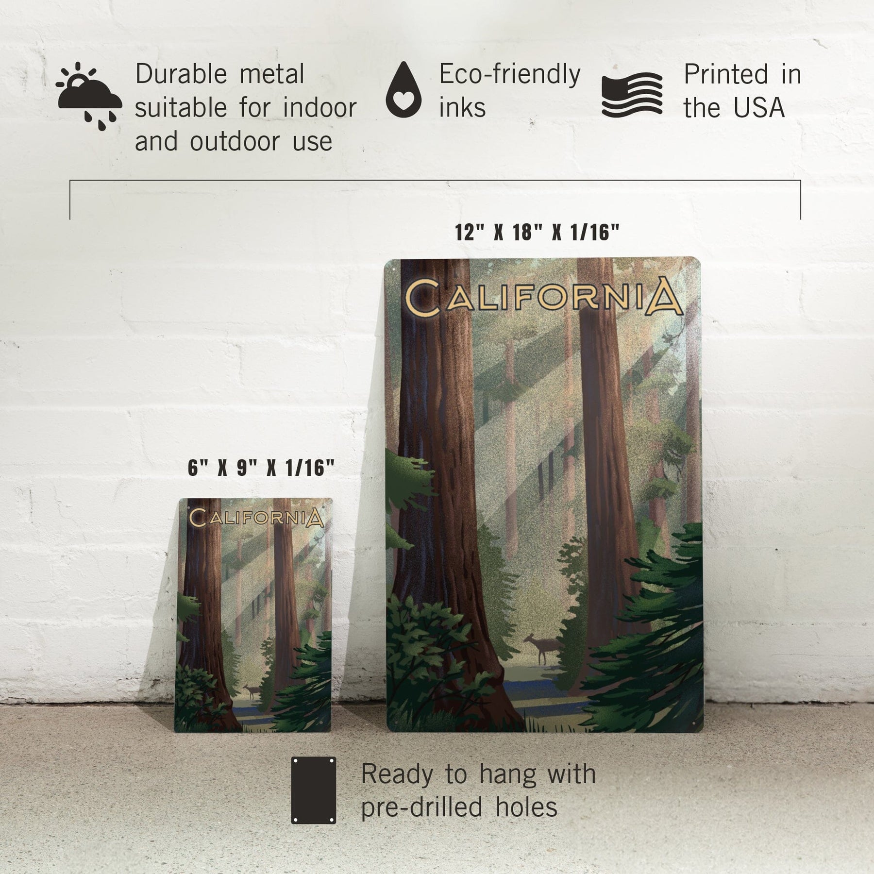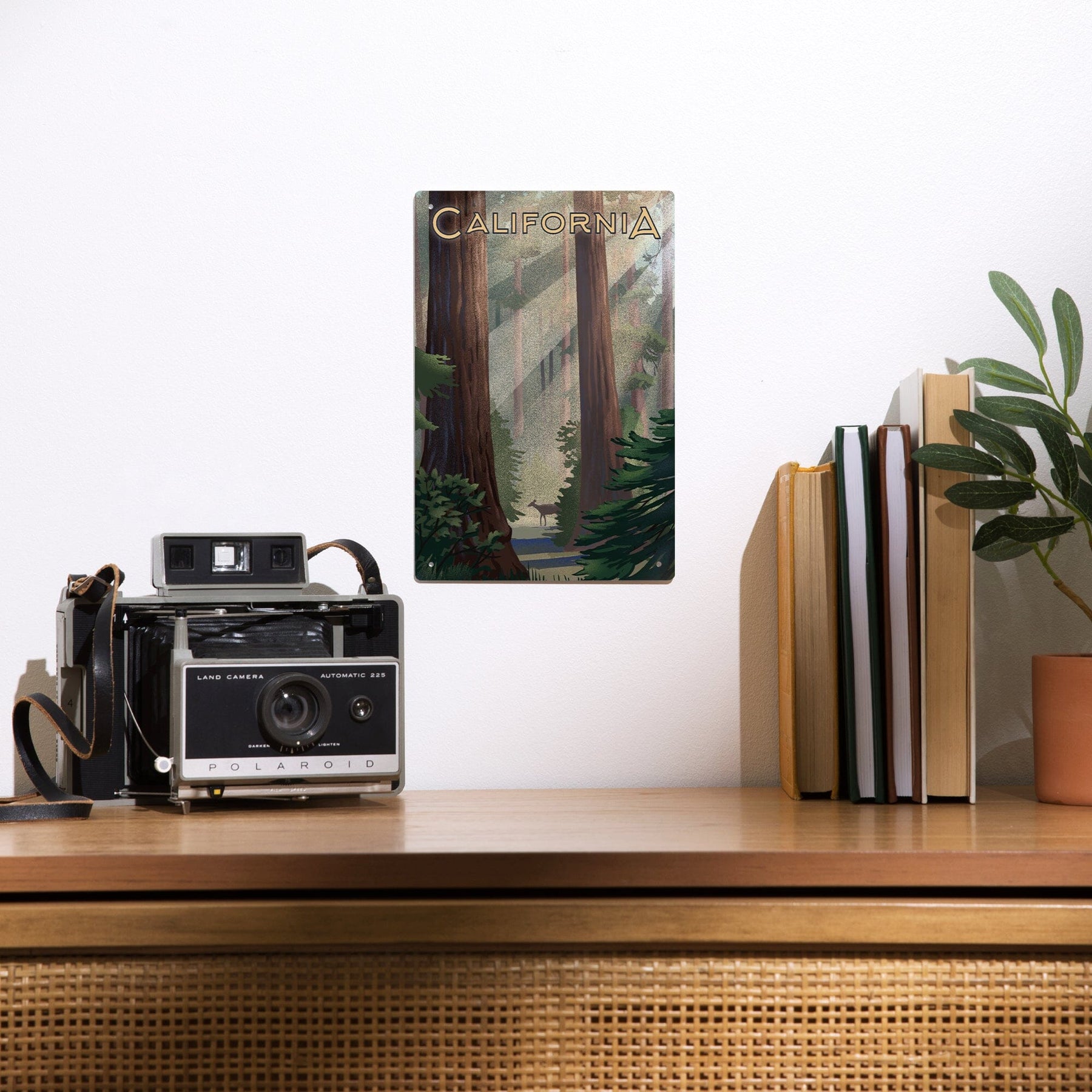 California, Lithograph, Deer in Forest, Metal Signs Metal Lantern Press