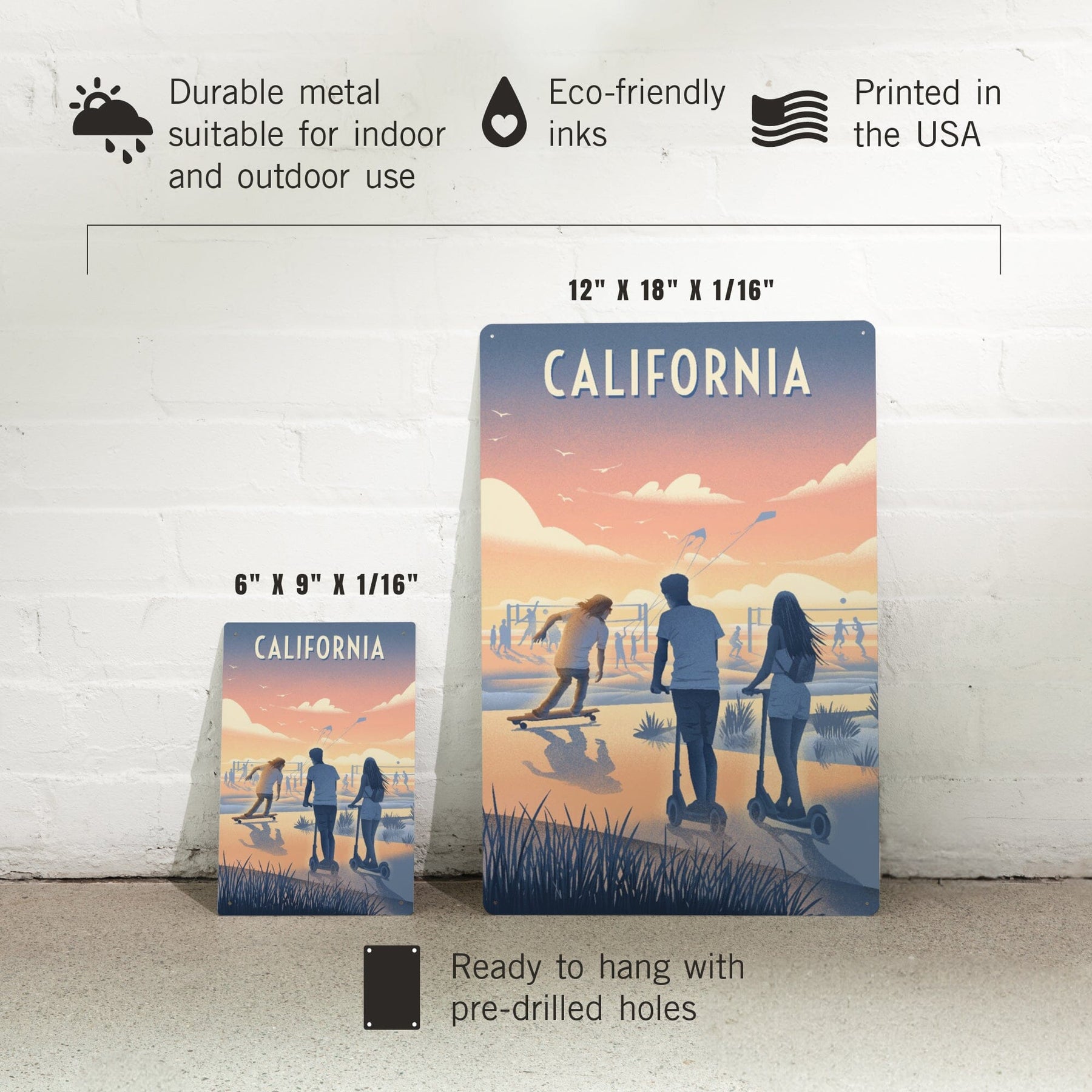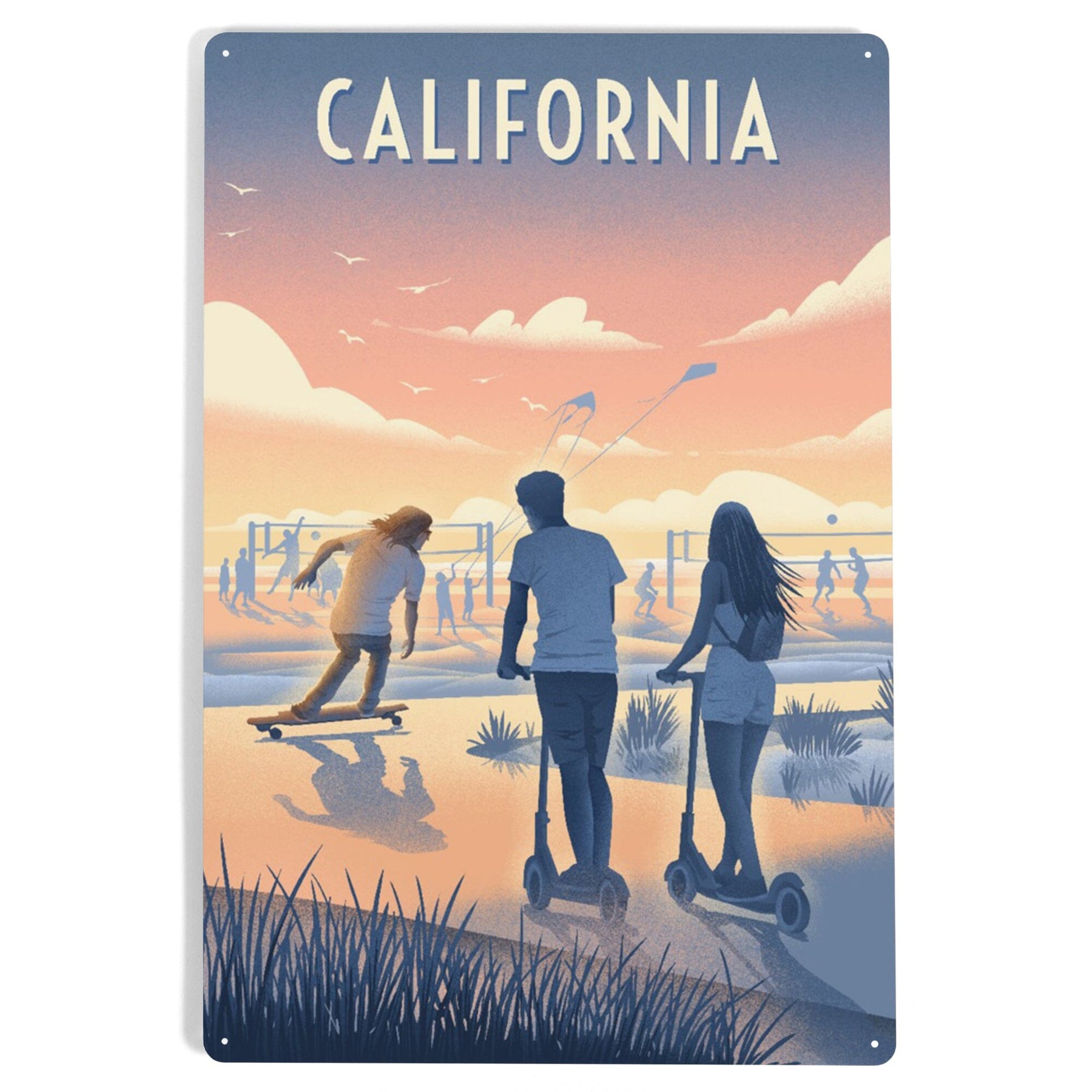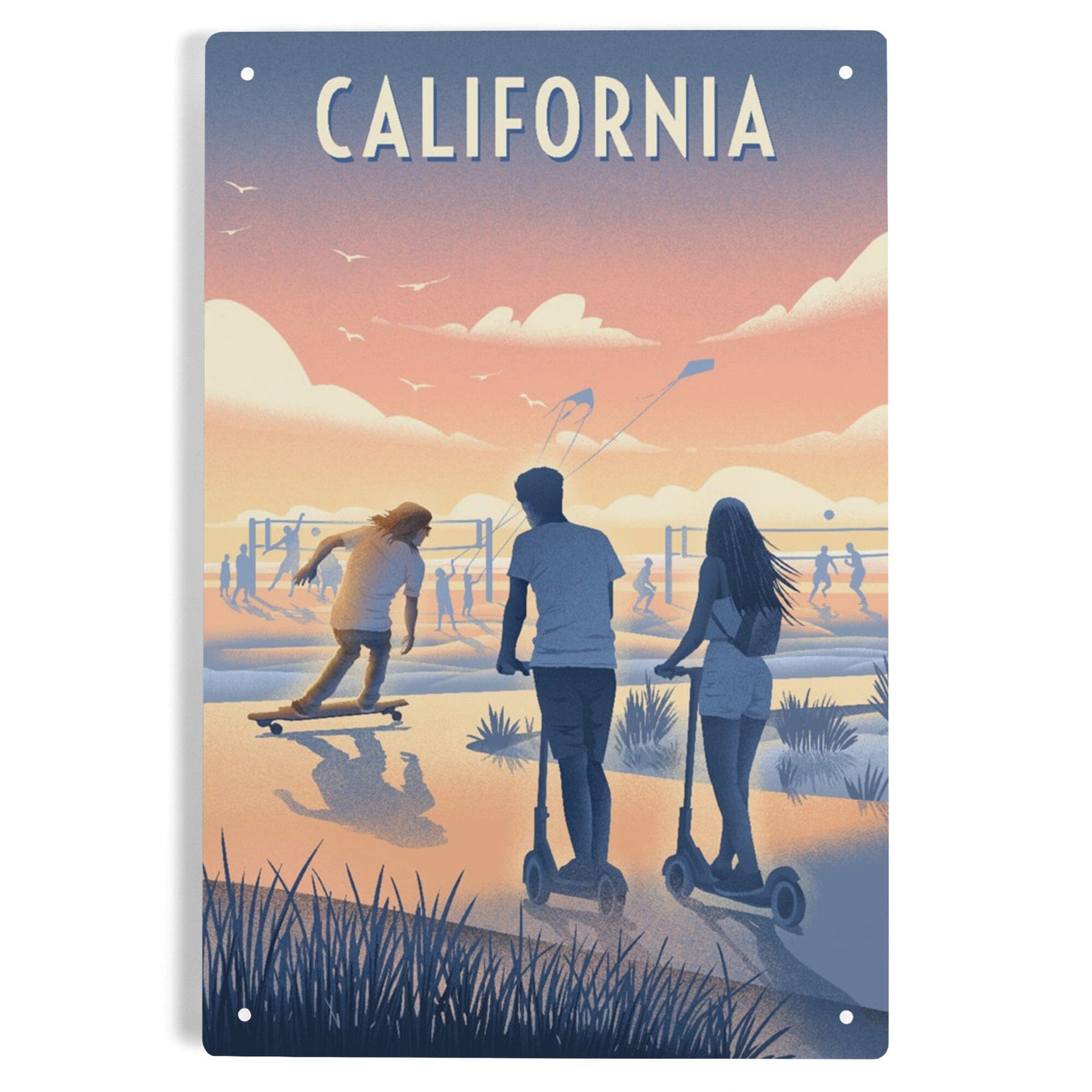California, Lithograph, Enjoy the Ride, Longboards and Scooters, Metal Signs