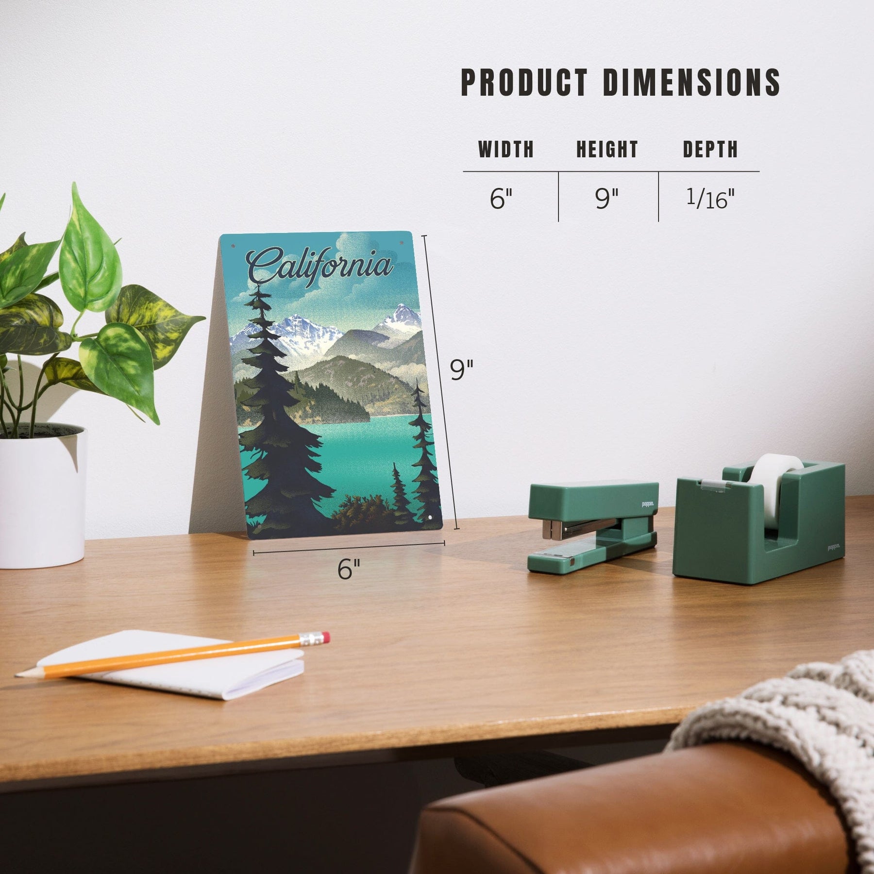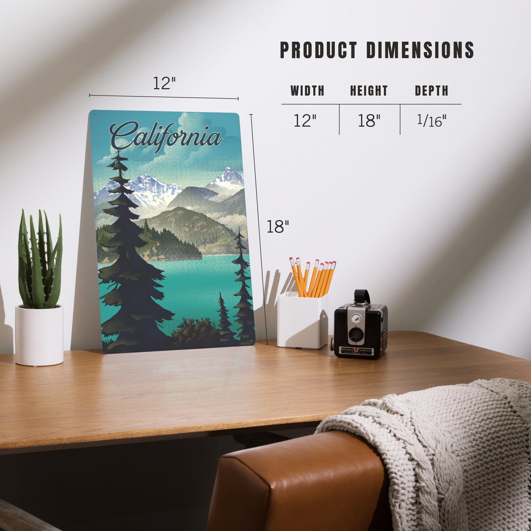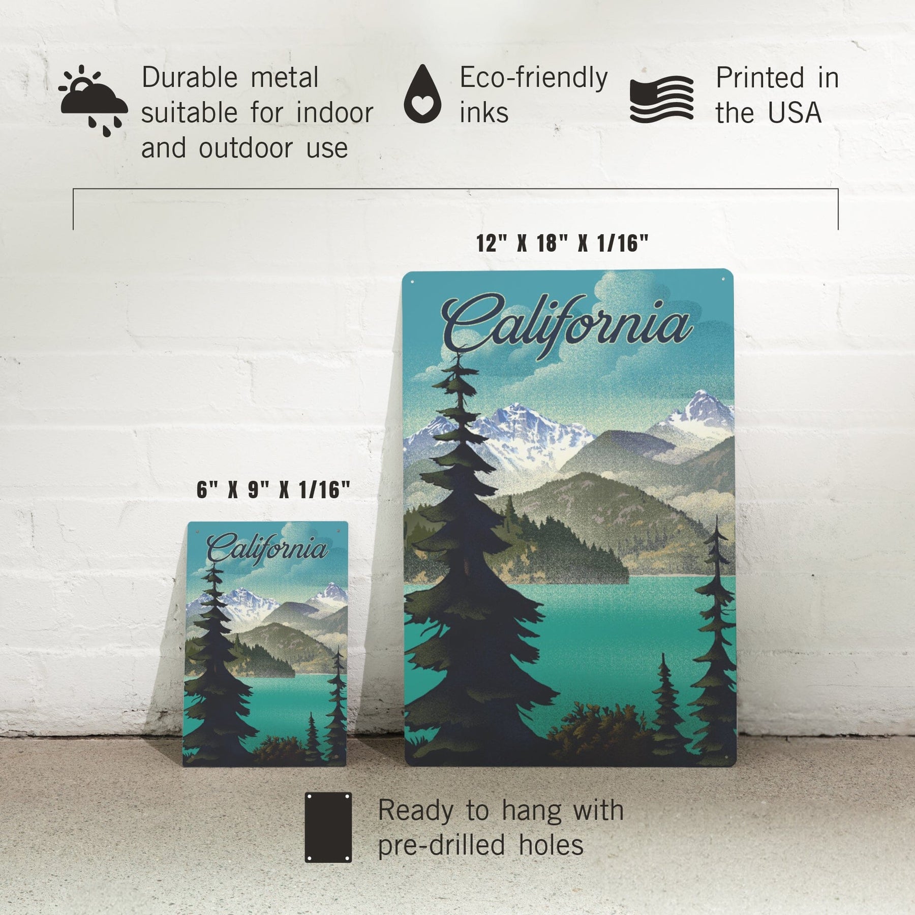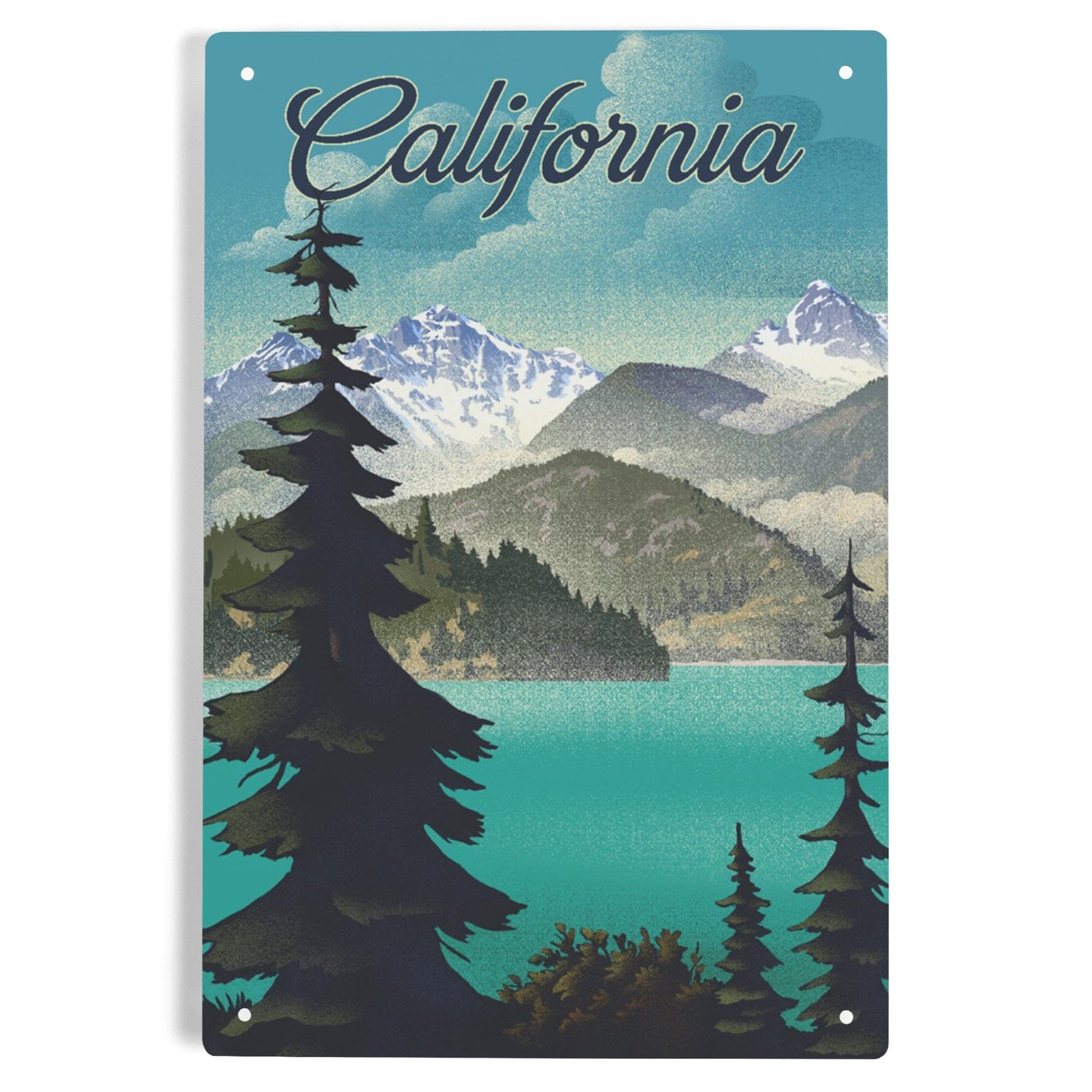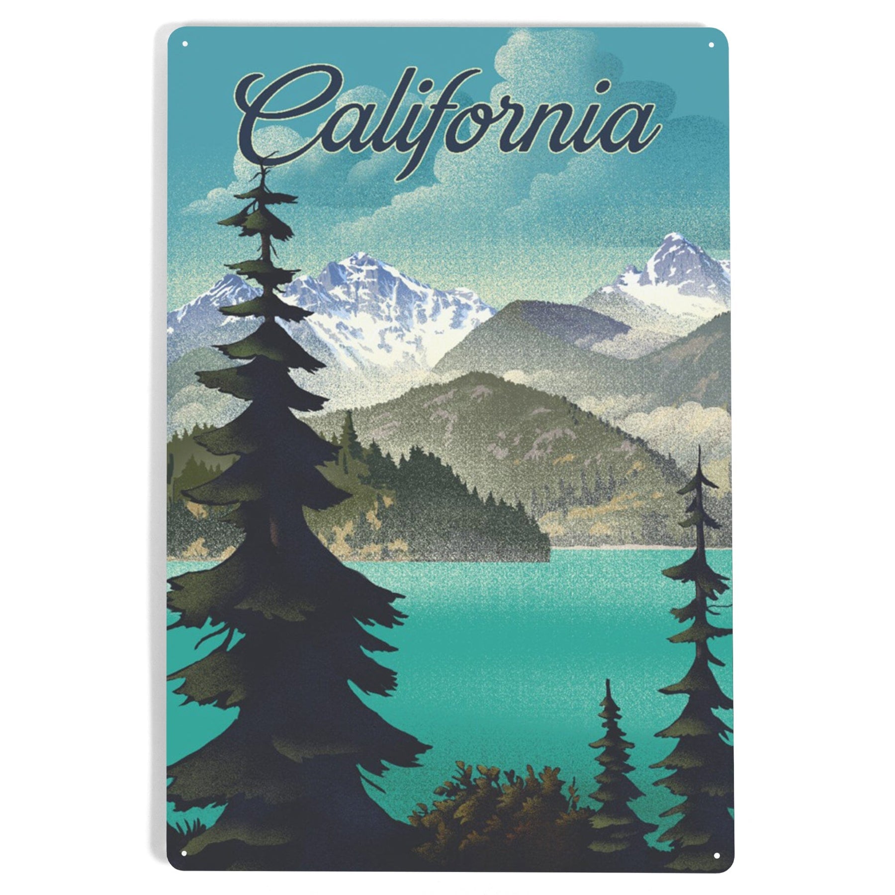 California, Lithograph, Lake and Mountains Scene, Metal Signs Metal Lantern Press