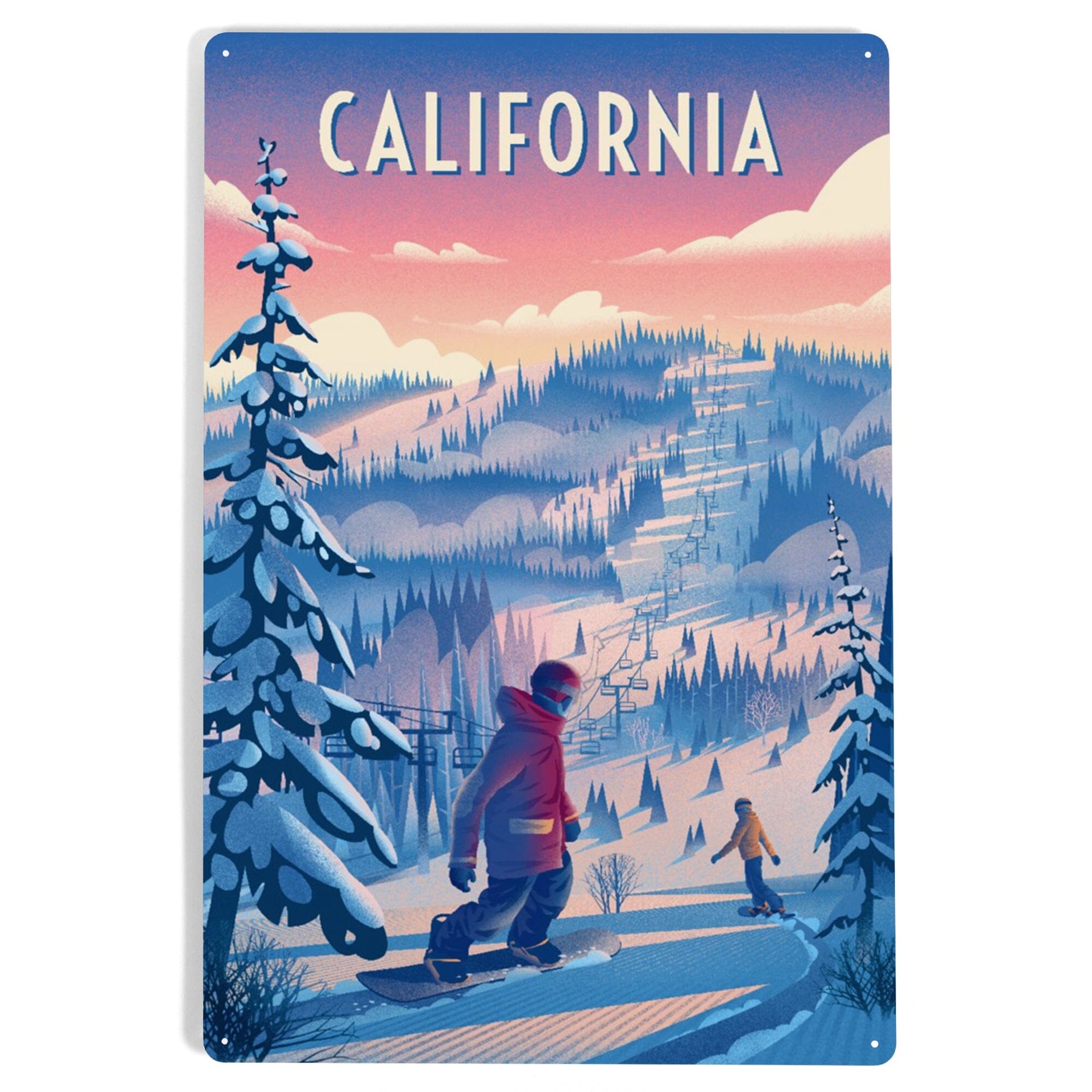 California, Shred the Gnar, Snowboarding, Metal Signs Metal Lantern Press