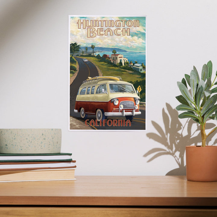 Huntington Beach, California, Camper Van, Art & Giclee Prints - Lantern Press