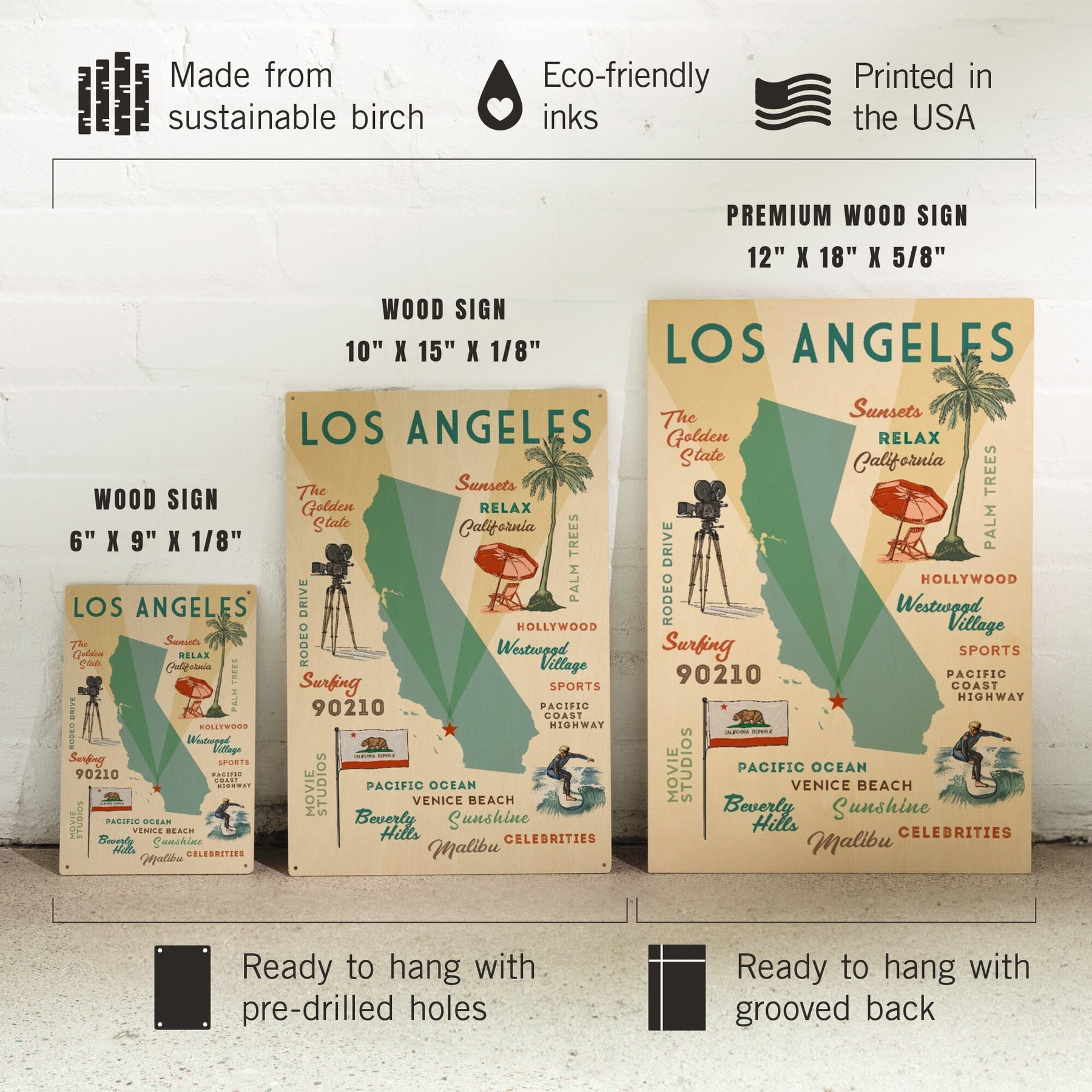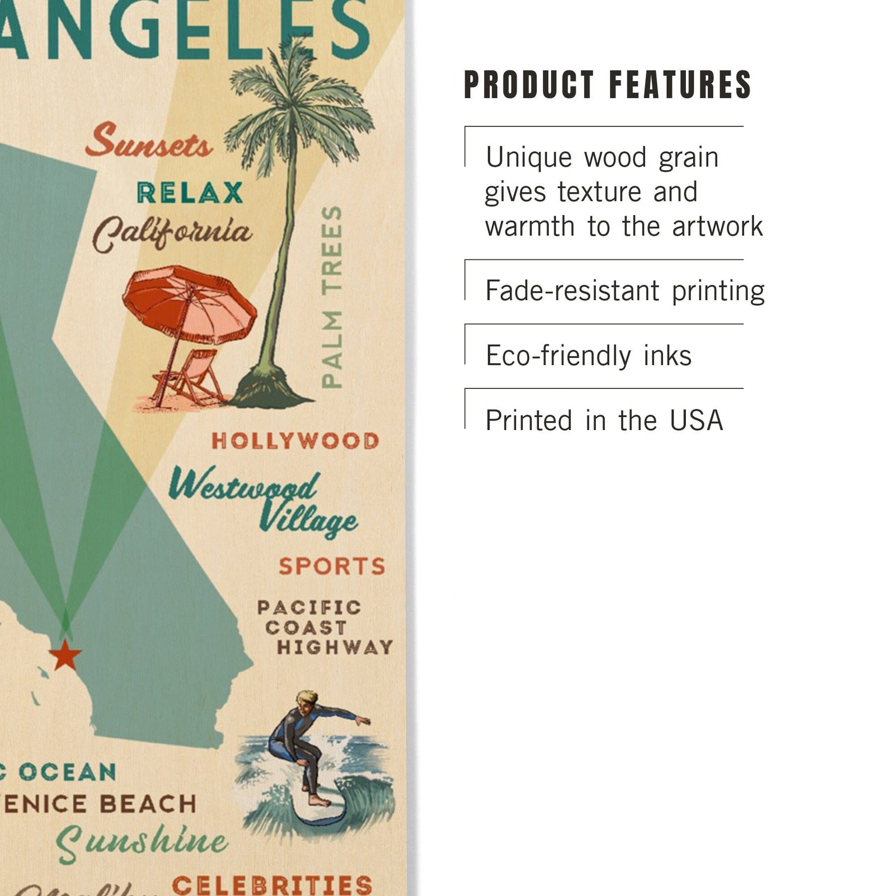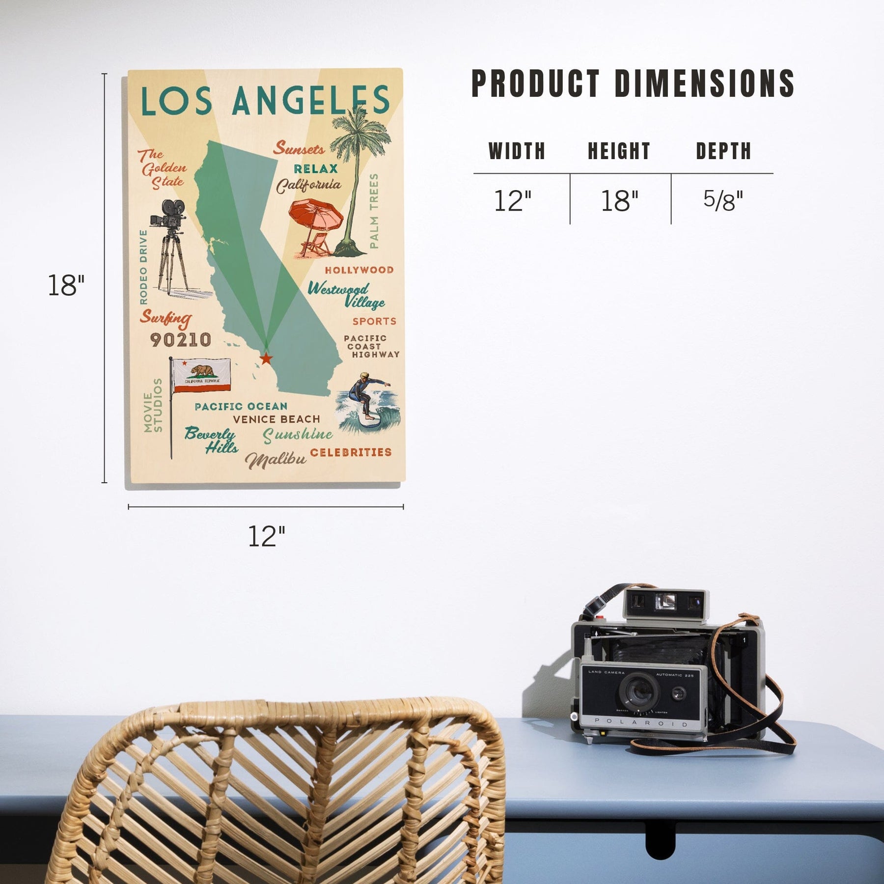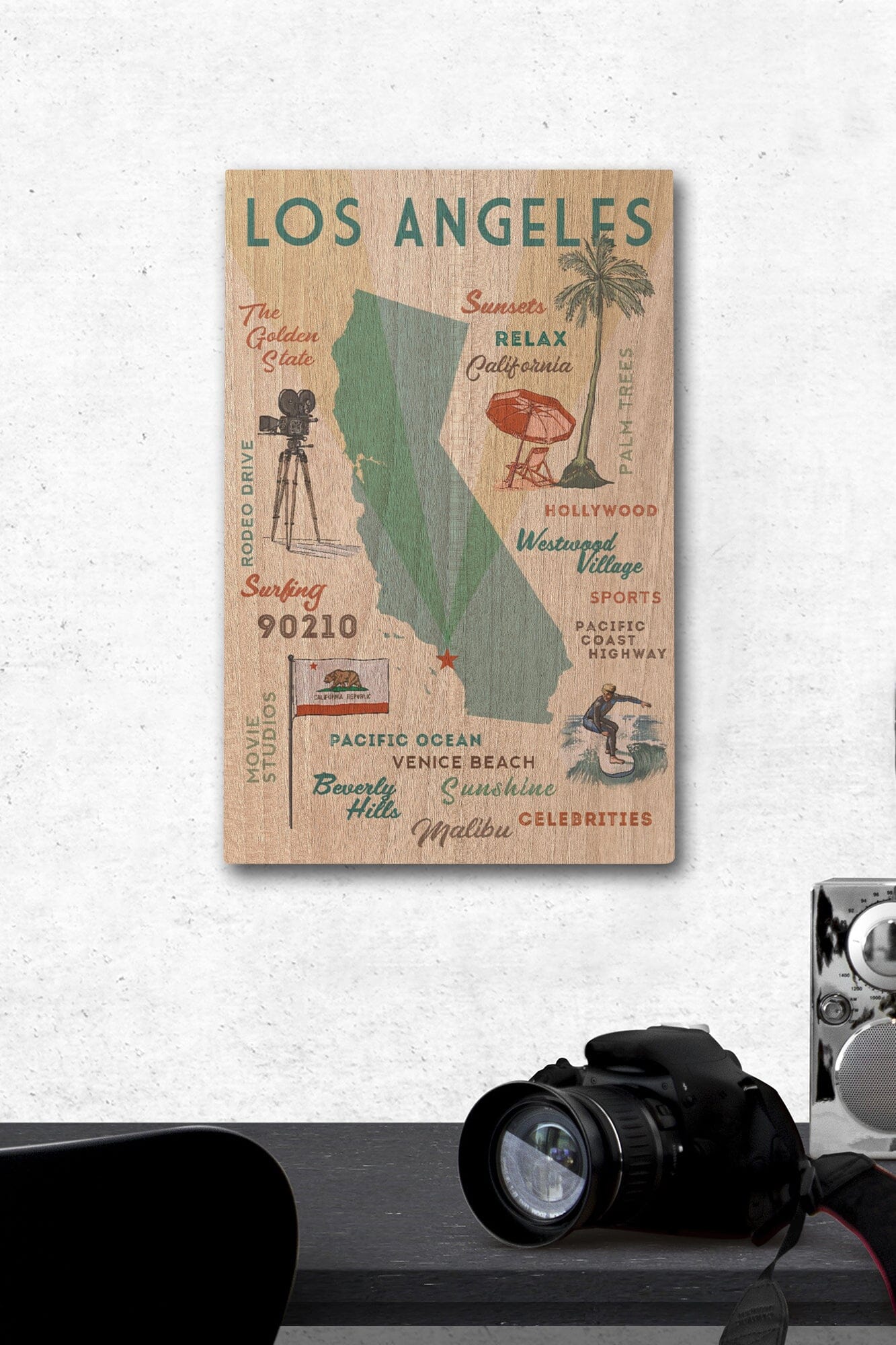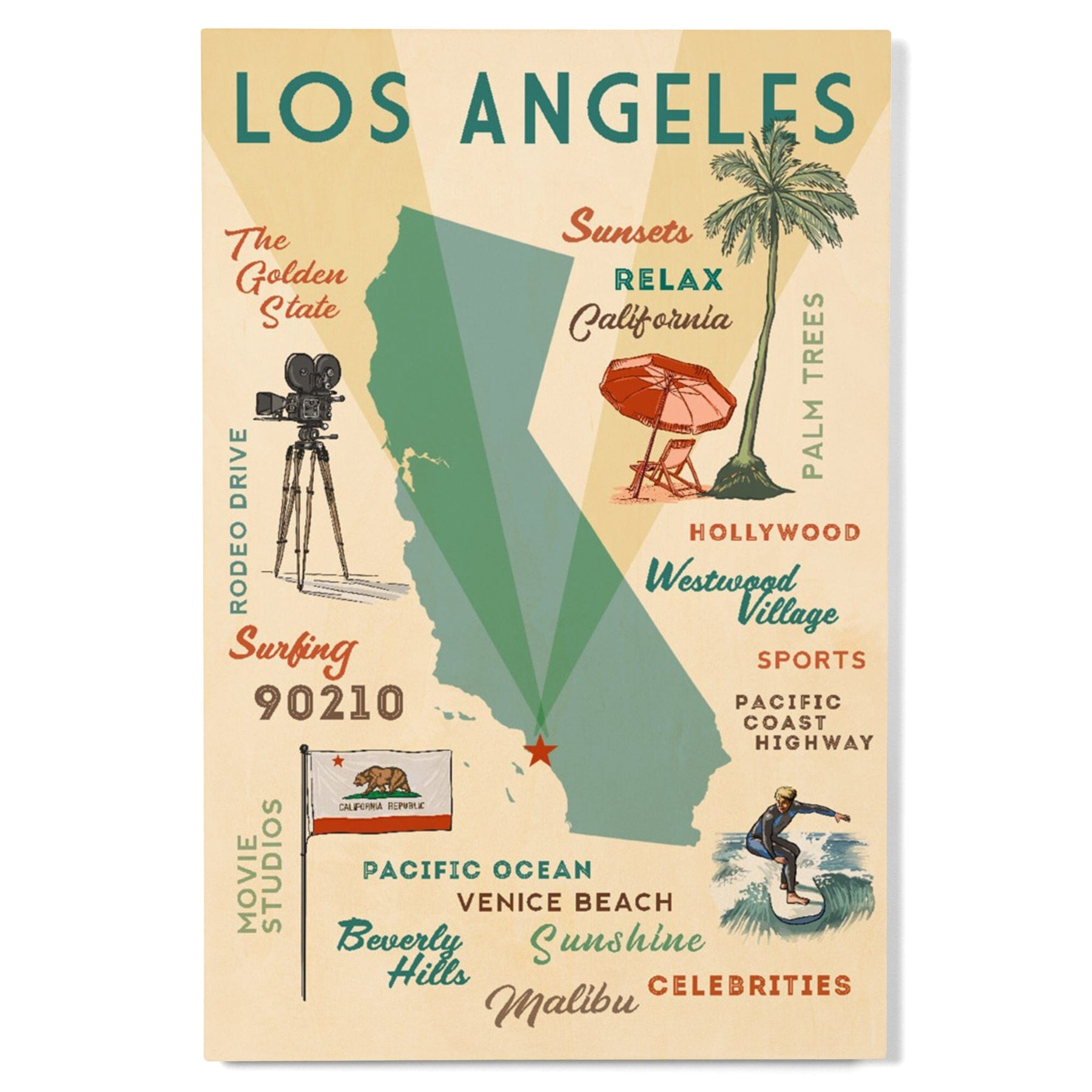 Los Angeles, California, Typography & Icons, Lantern Press Artwork, Wood Signs and Postcards