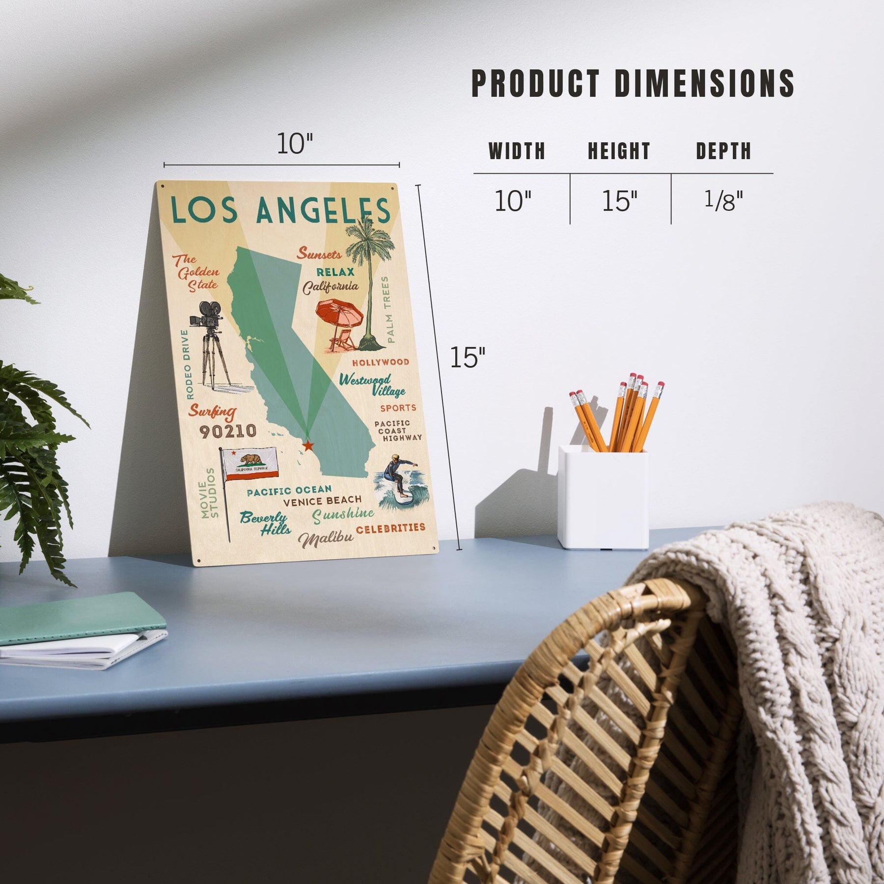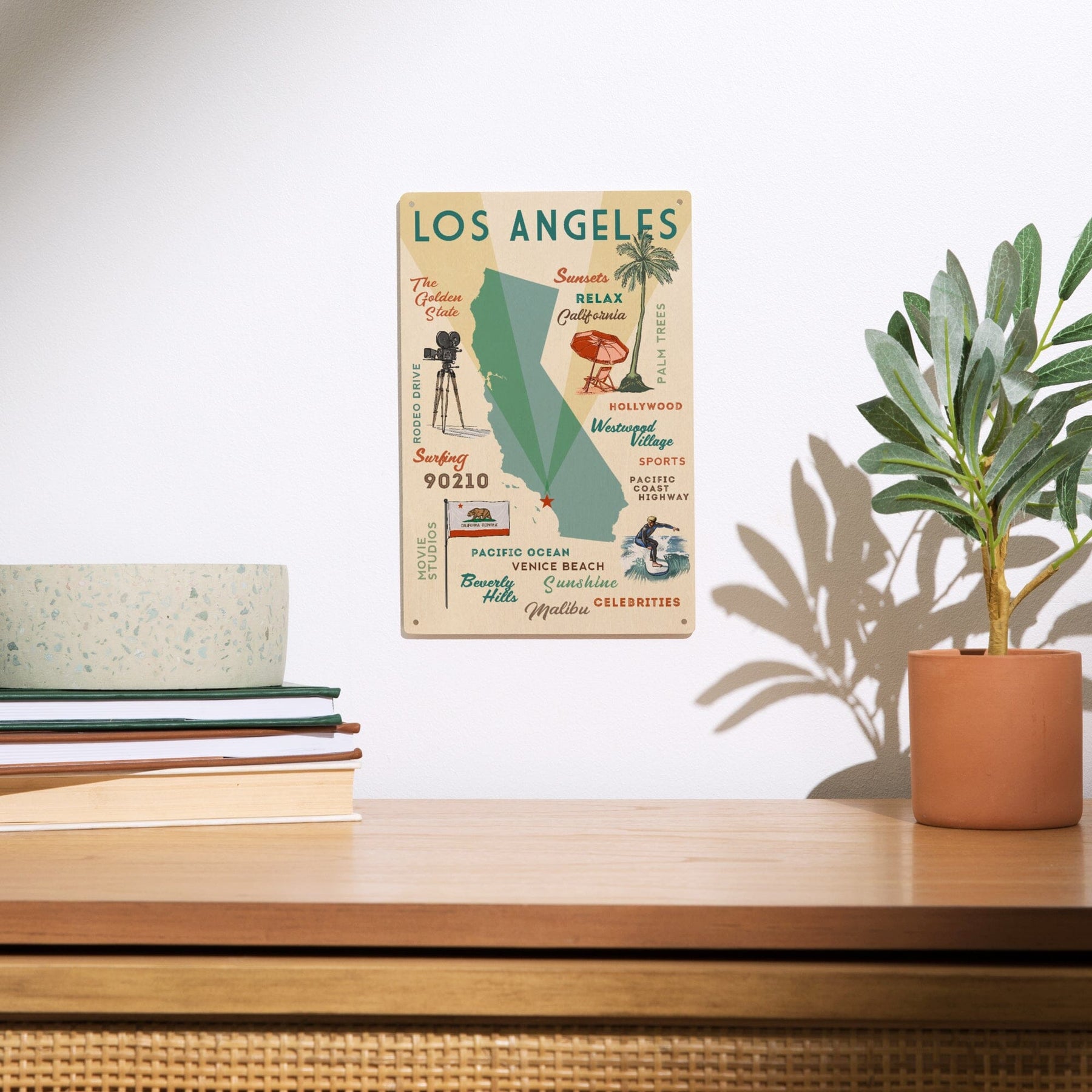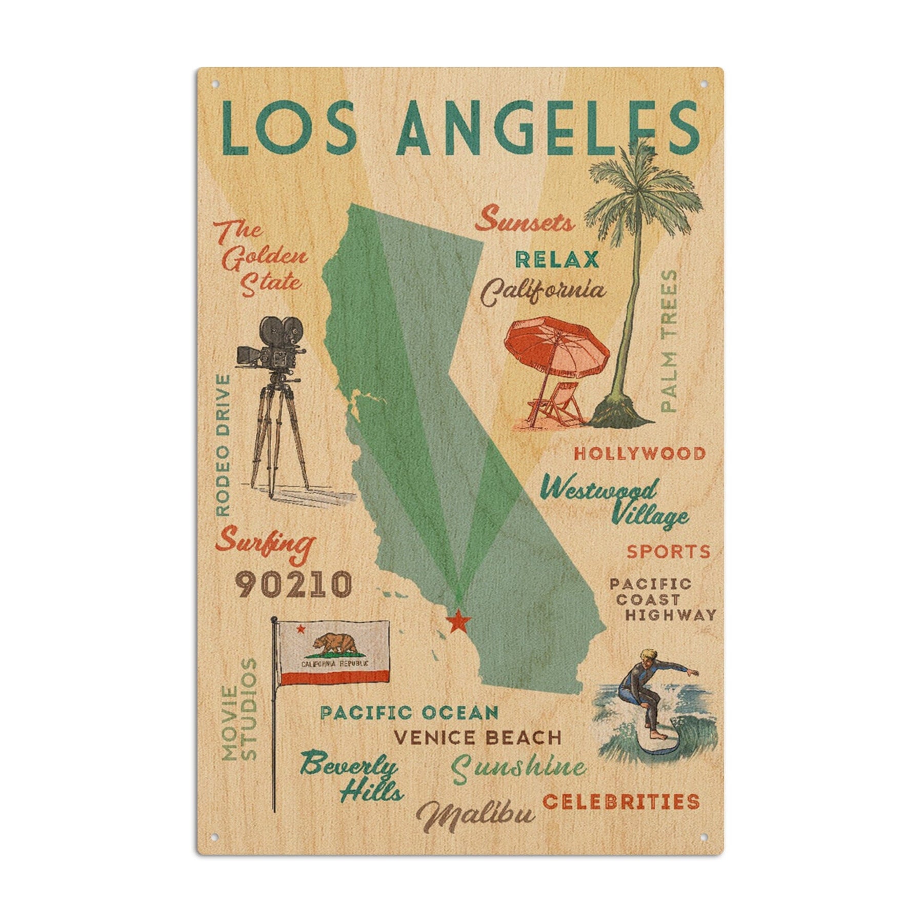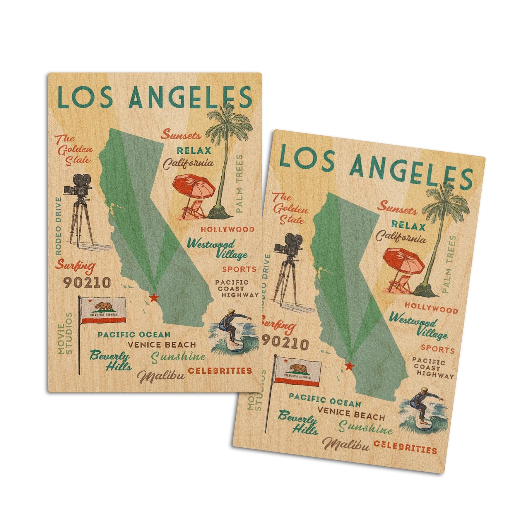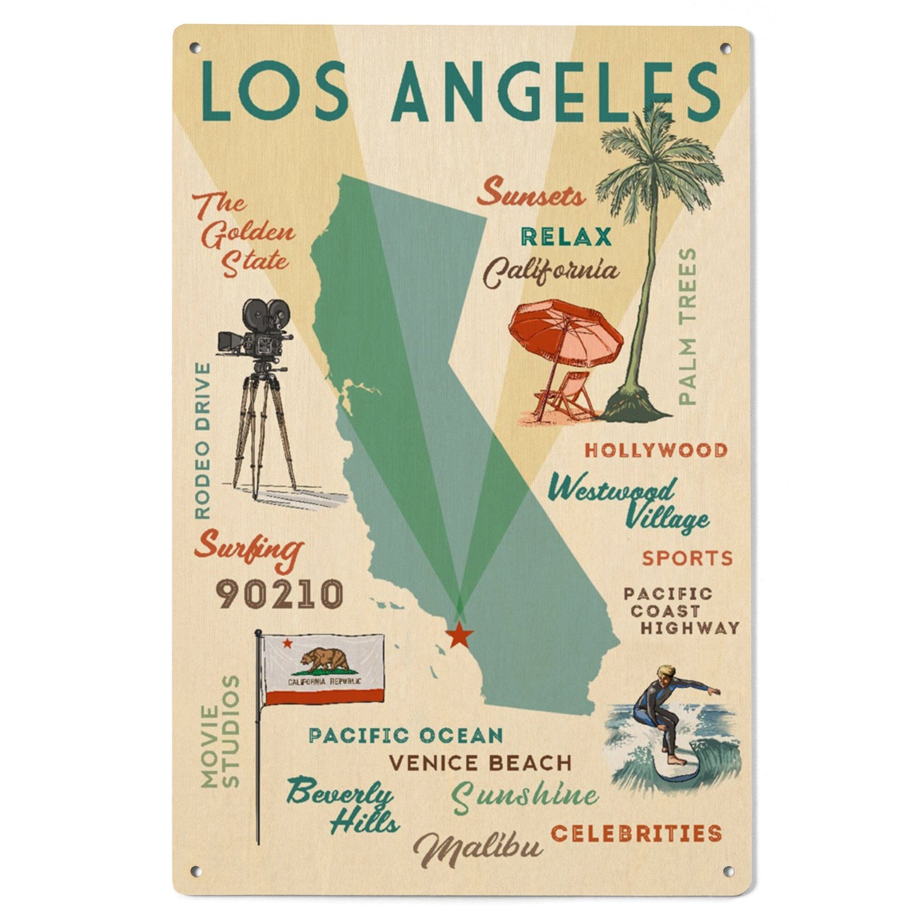 Los Angeles, California, Typography & Icons, Lantern Press Artwork, Wood Signs and Postcards