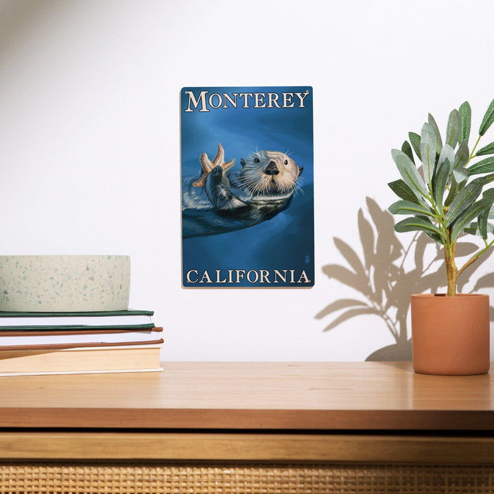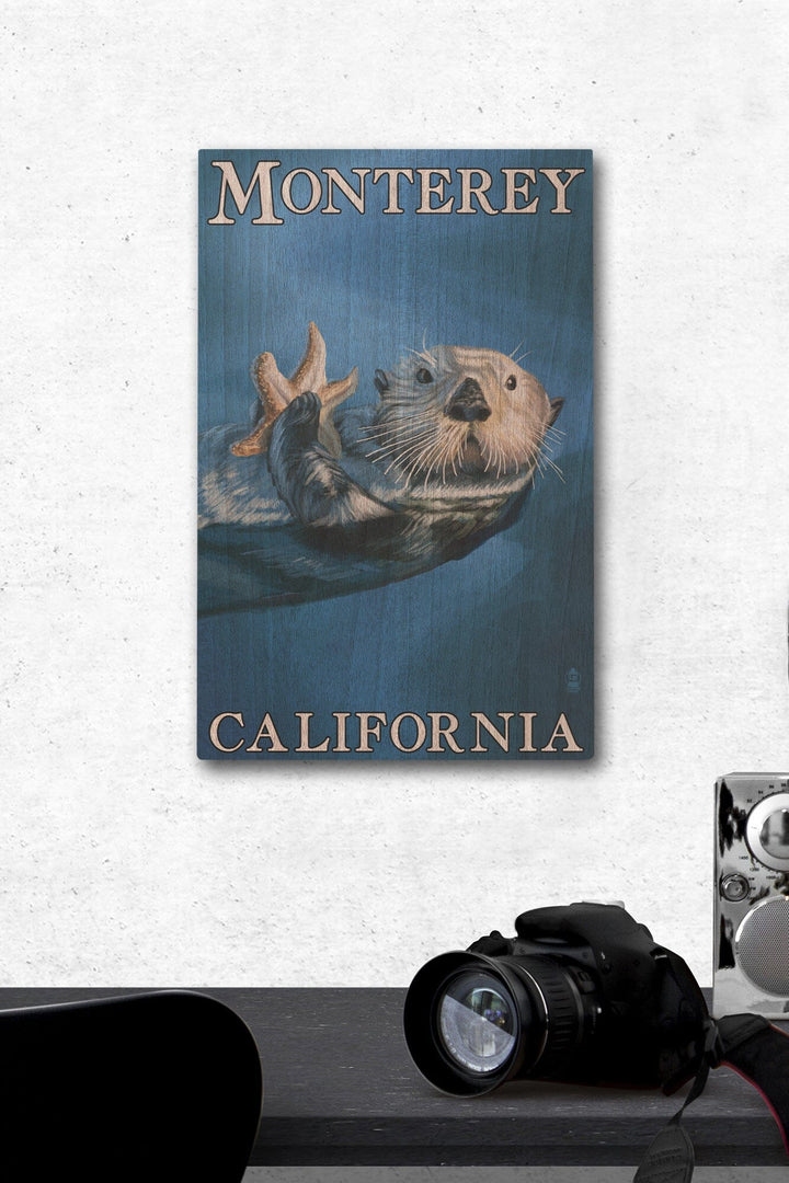 Monterey, California, Sea Otter, Lantern Press Artwork, Wood Signs and Postcards Wood Lantern Press