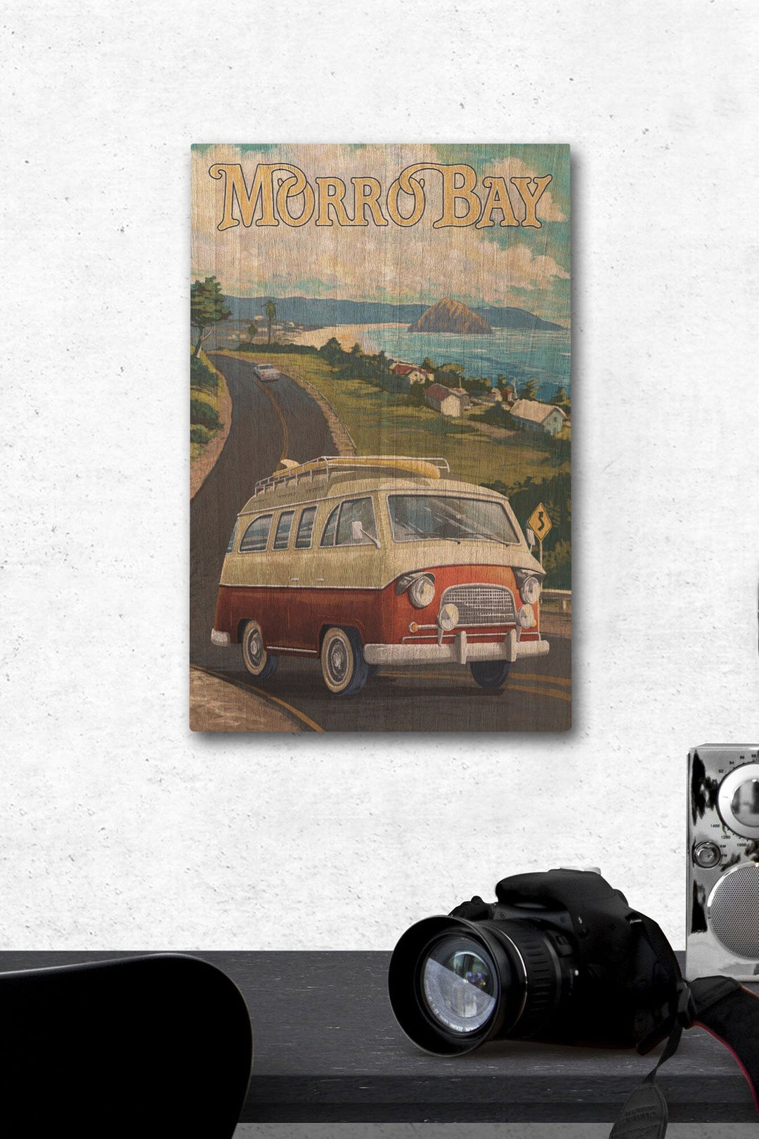 Morro Bay, California, Camper Van, Lantern Press Artwork, Wood Signs and Postcards Wood Lantern Press