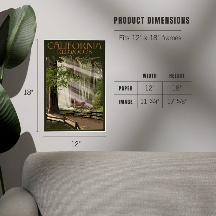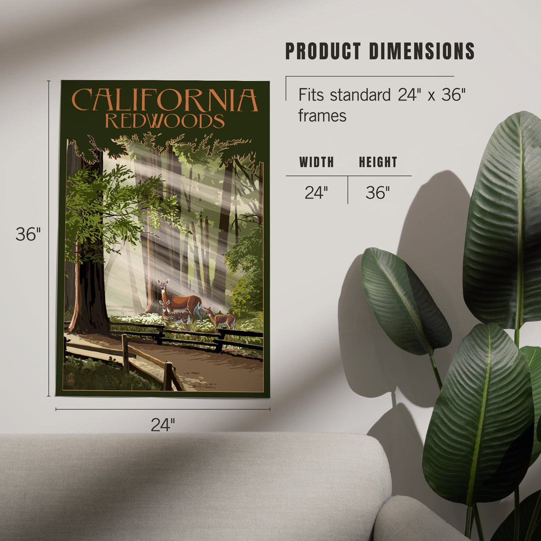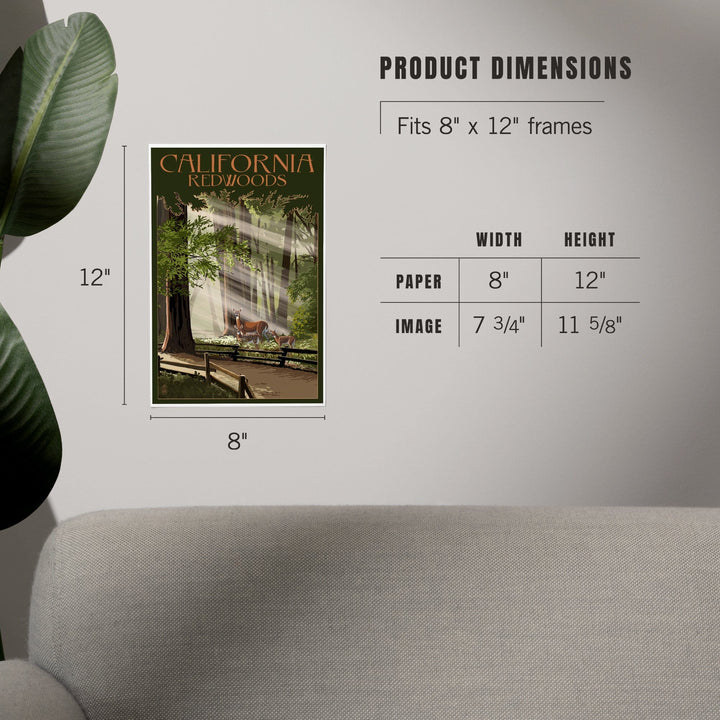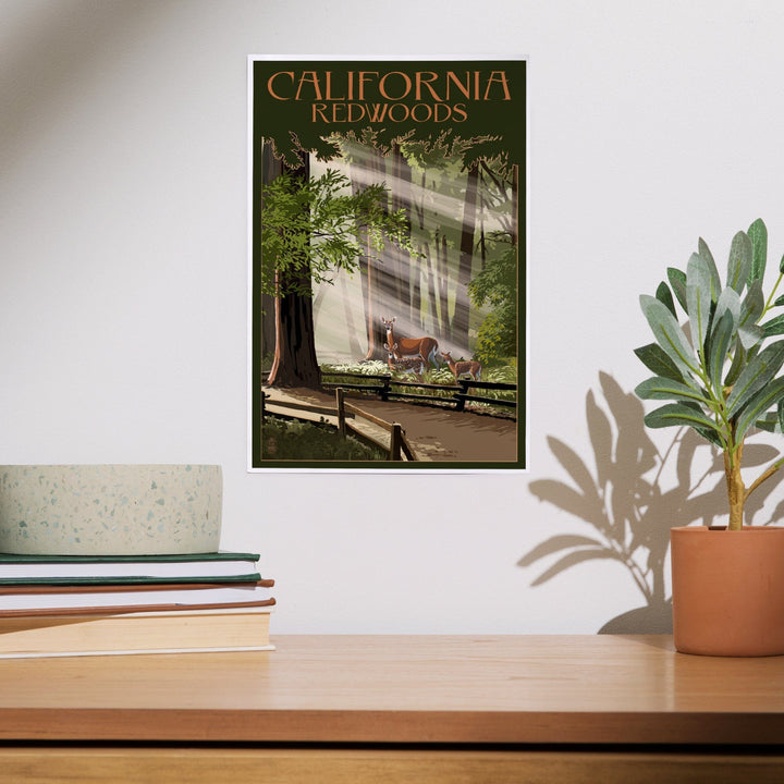 California, Redwoods and Deer, Art & Giclee Prints - Lantern Press