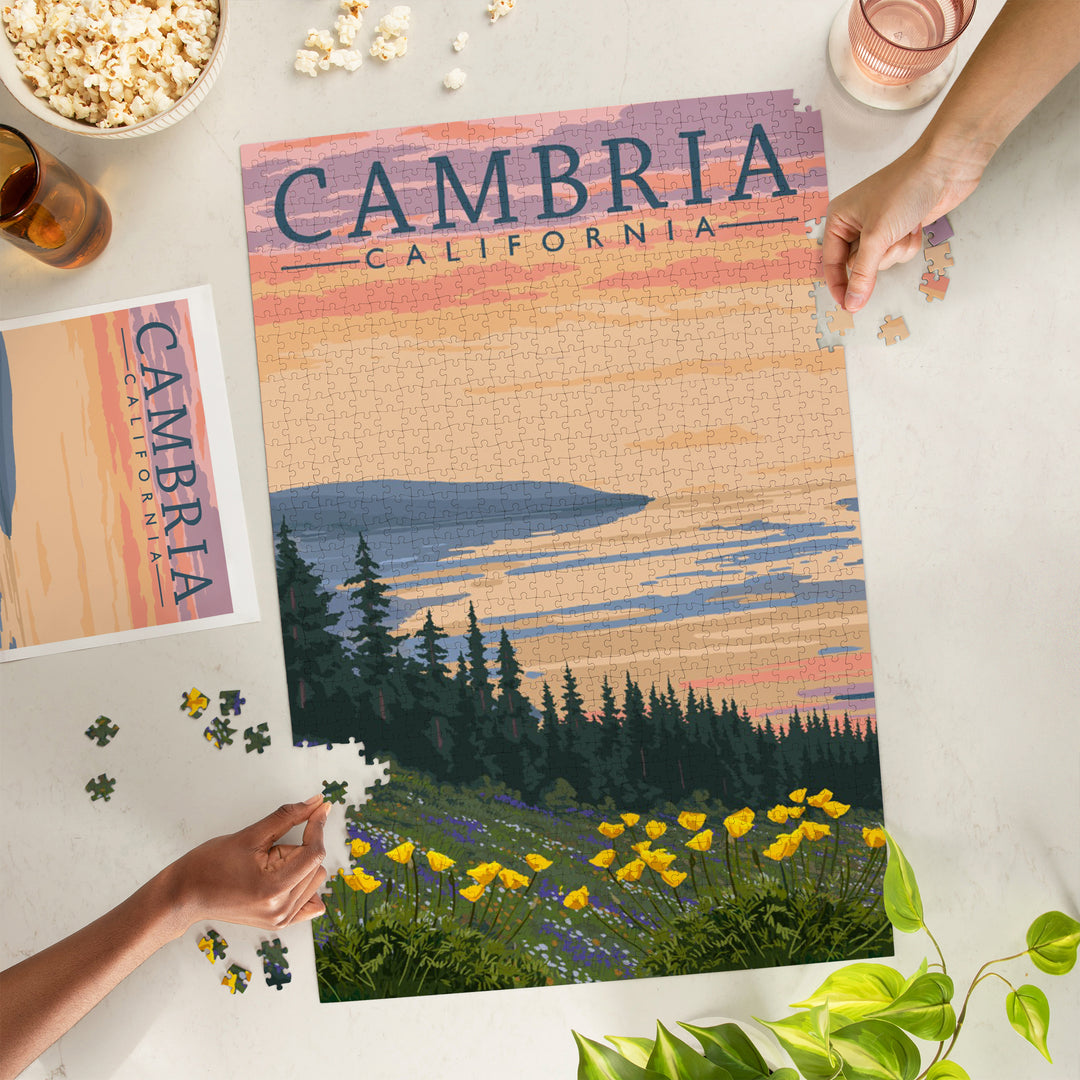Cambria, California, Spring Flowers, Poppies, Jigsaw Puzzle Puzzle Lantern Press