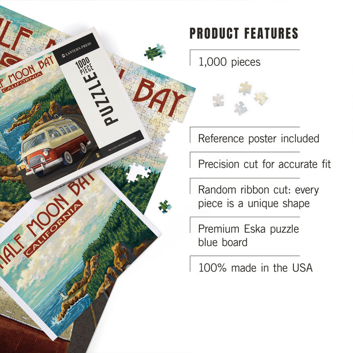 Half Moon Bay, California, Camper Van, Jigsaw Puzzle Puzzle Lantern Press