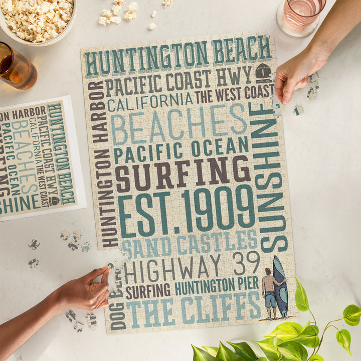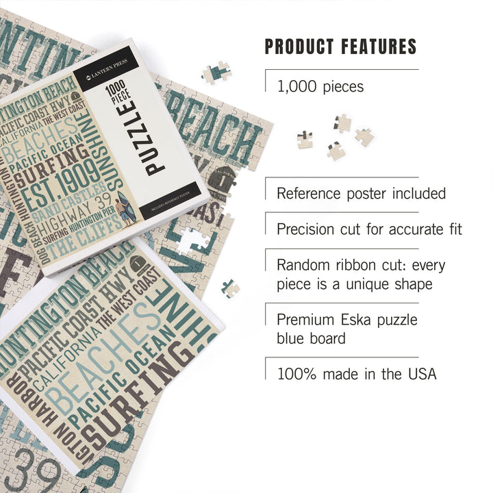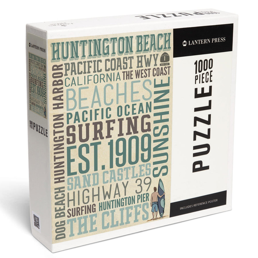 Huntington Beach, California, Typography, Jigsaw Puzzle Puzzle Lantern Press
