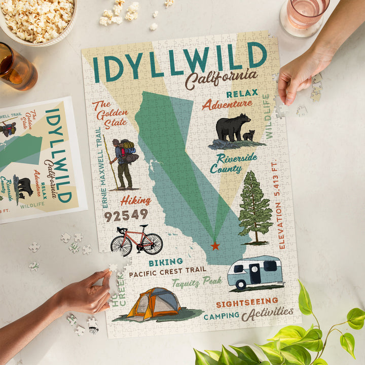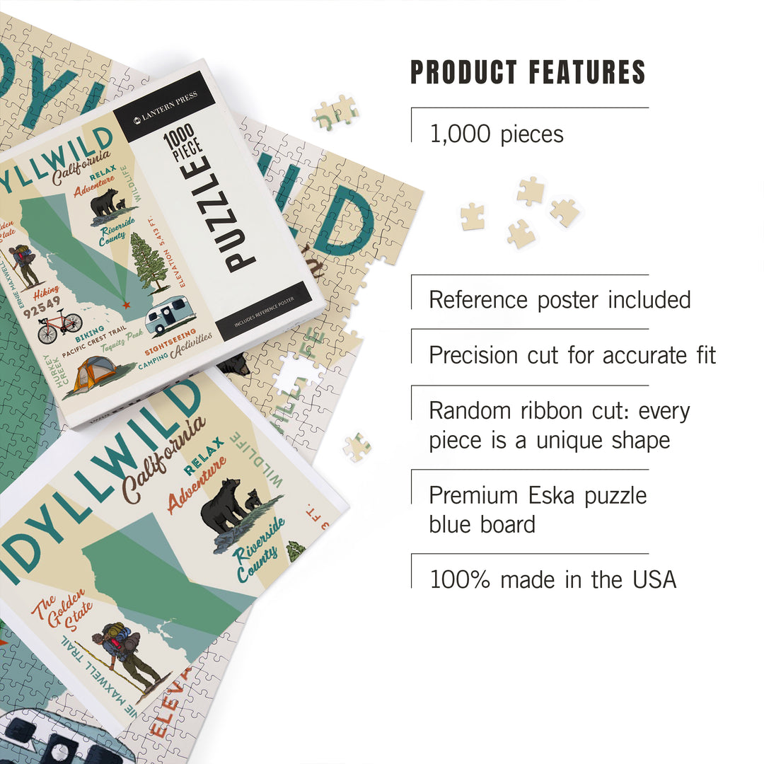 Idyllwild, California, Typography and Icons, Jigsaw Puzzle Puzzle Lantern Press