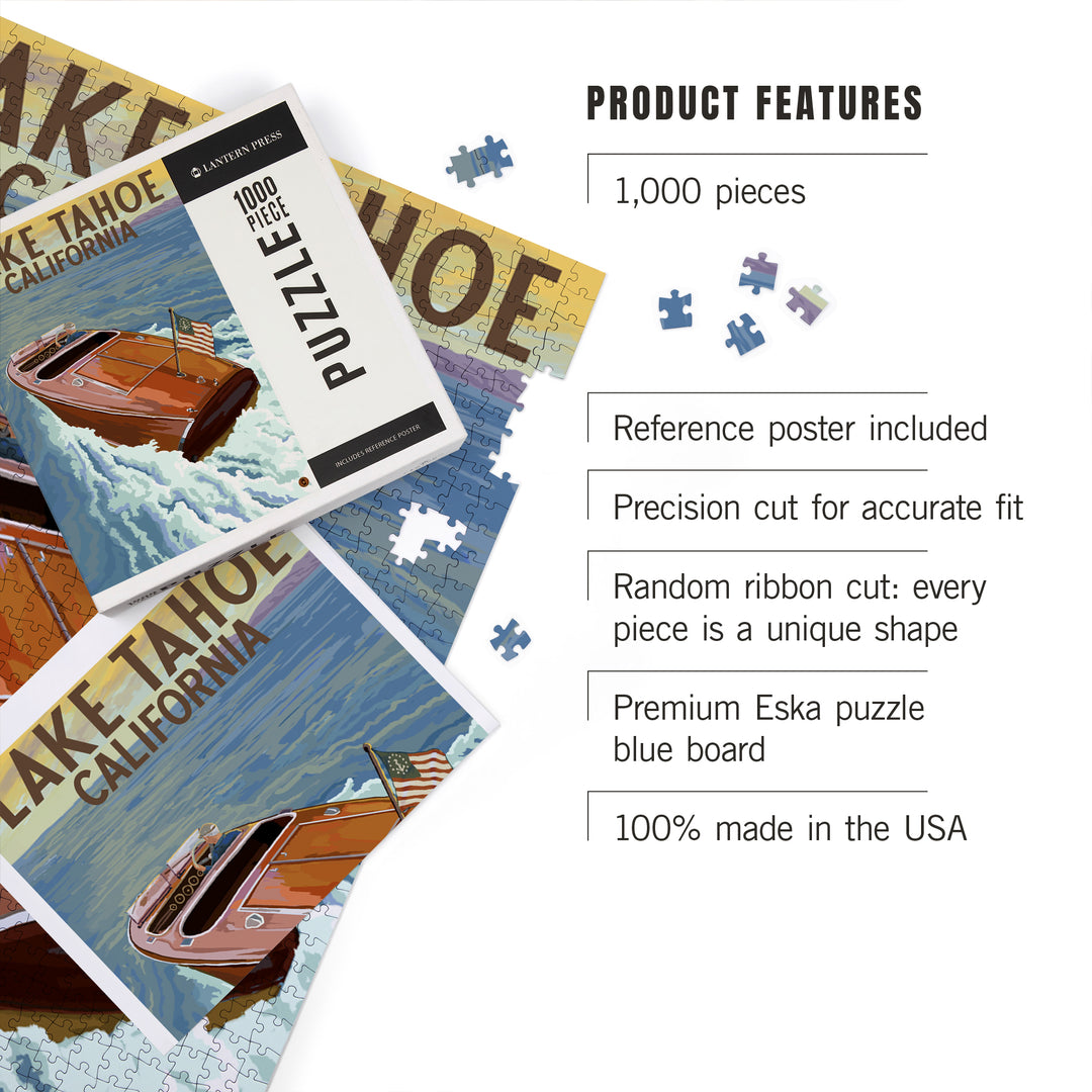 Lake Tahoe, California, Wooden Boat, Jigsaw Puzzle Puzzle Lantern Press