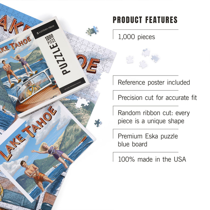 Lake Tahoe, Water Skiing Scene, Jigsaw Puzzle Puzzle Lantern Press