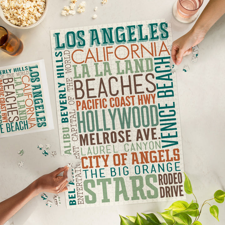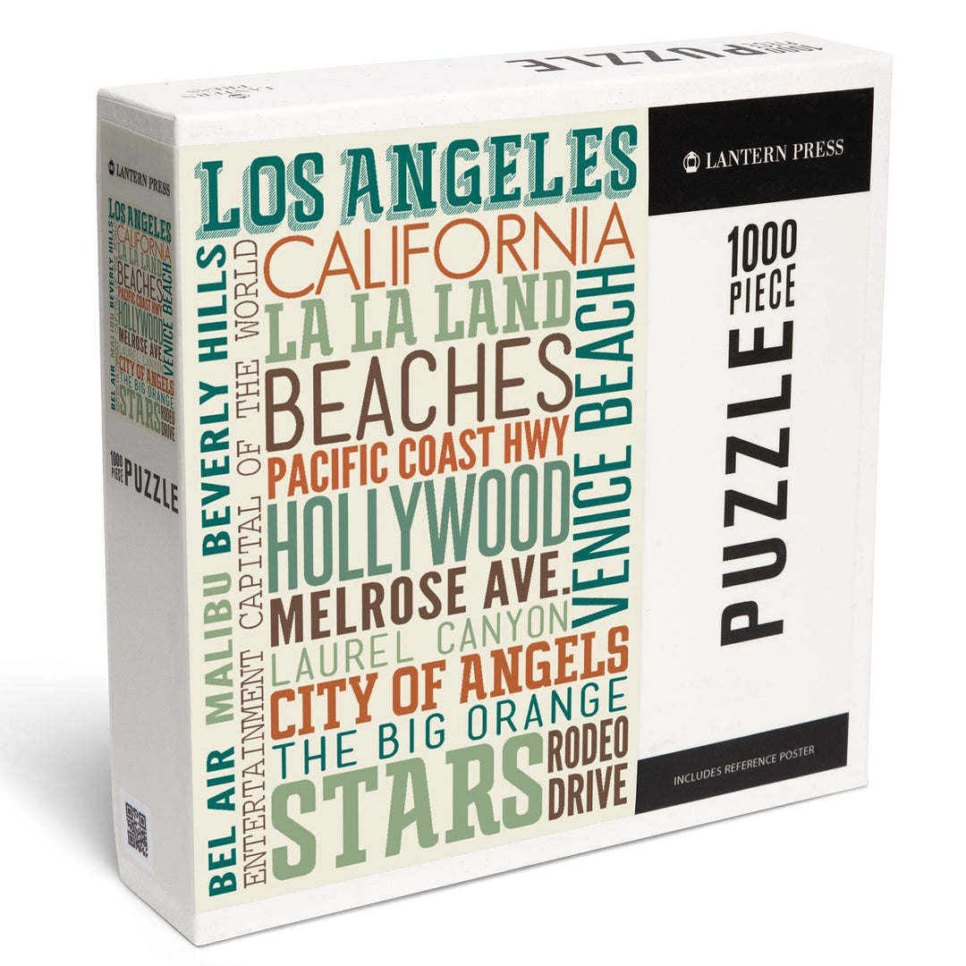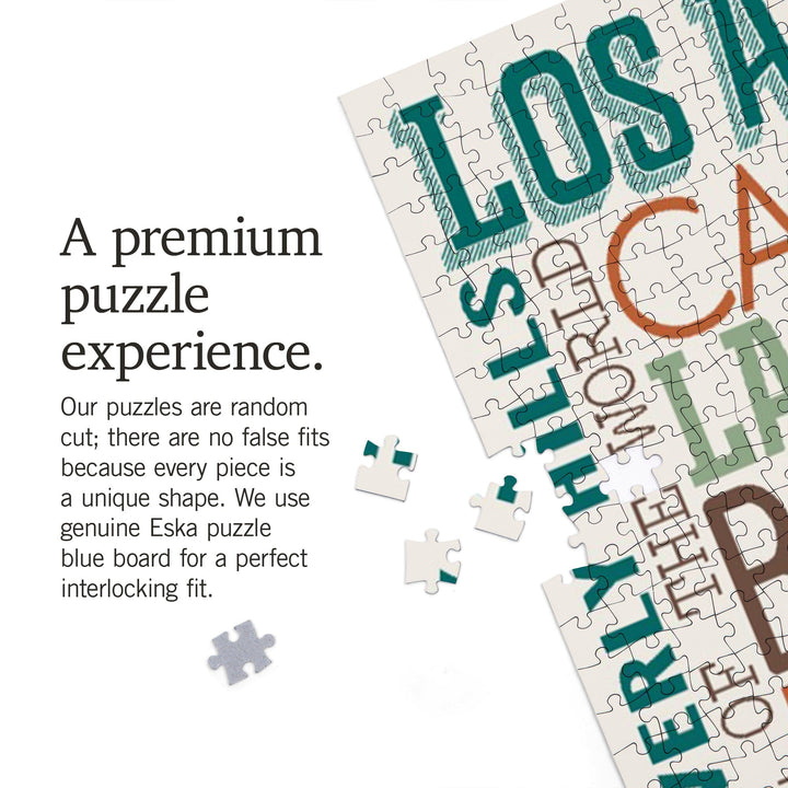Los Angeles, California, Typography, Jigsaw Puzzle Puzzle Lantern Press