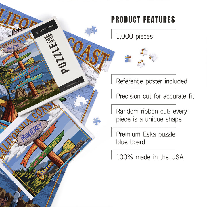 Monterey, California, Destinations Signpost, Jigsaw Puzzle Puzzle Lantern Press