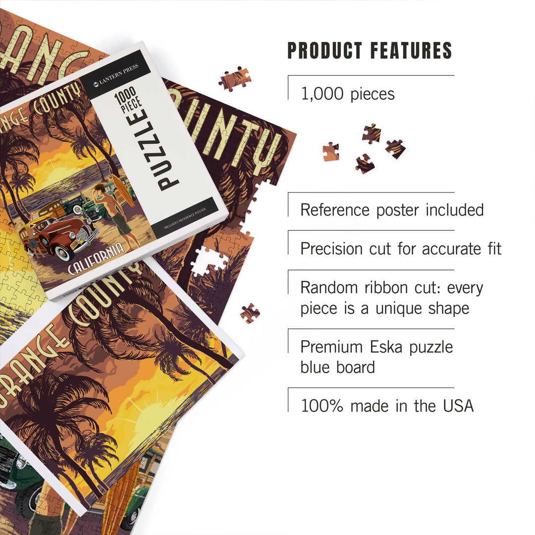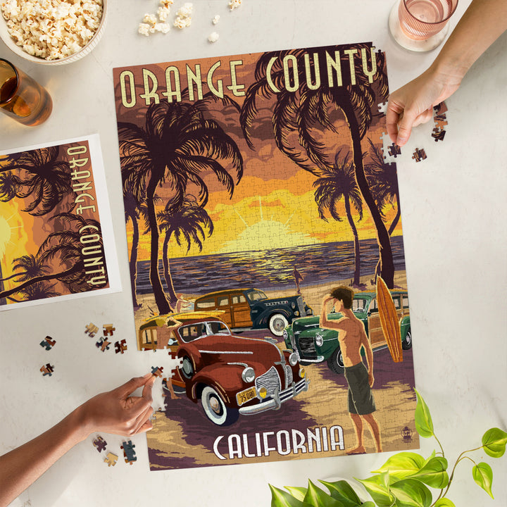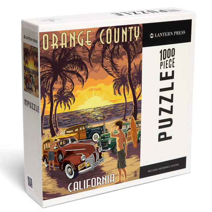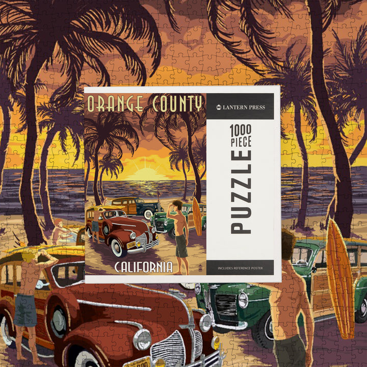 Orange County, California, Woodies and Sunset, Jigsaw Puzzle Puzzle Lantern Press