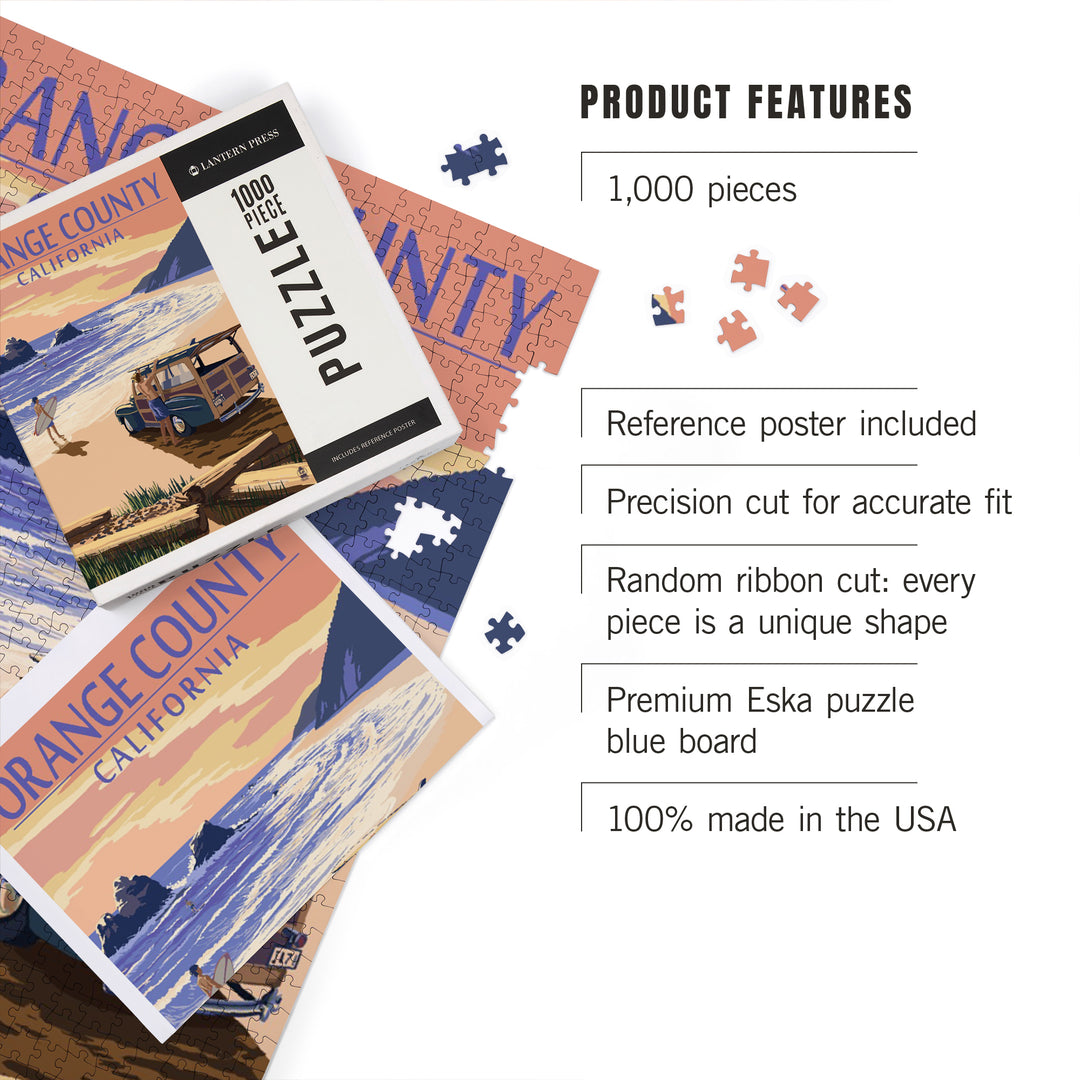 Orange County, California, Woody on Beach, Jigsaw Puzzle Puzzle Lantern Press