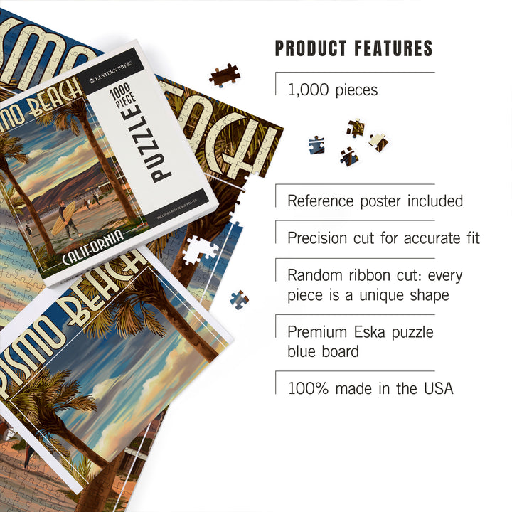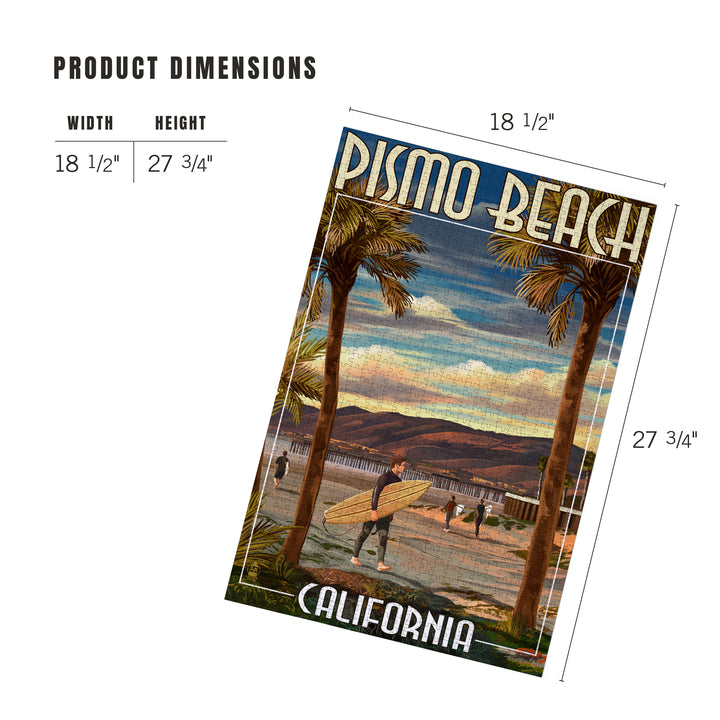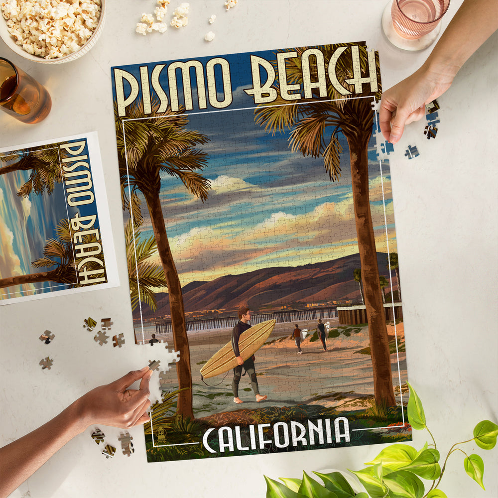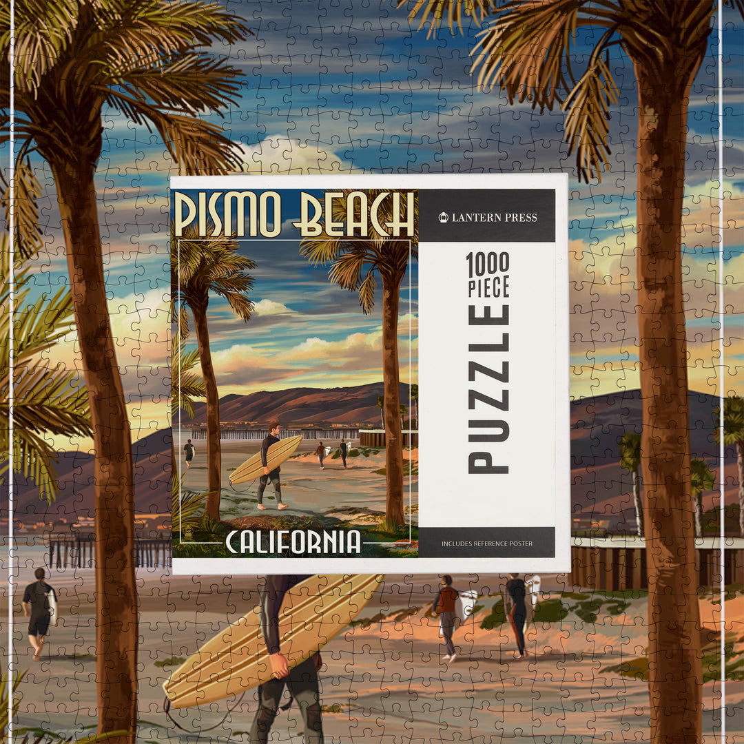 Pismo Beach, California, Surfer and Pier, Jigsaw Puzzle Puzzle Lantern Press