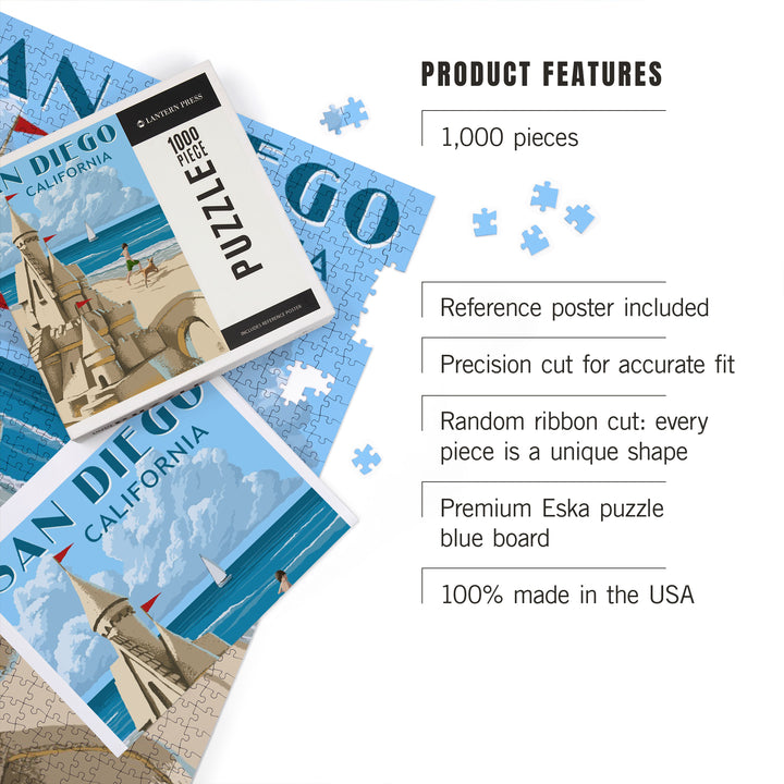 San Diego, California, Sandcastle, Jigsaw Puzzle Puzzle Lantern Press