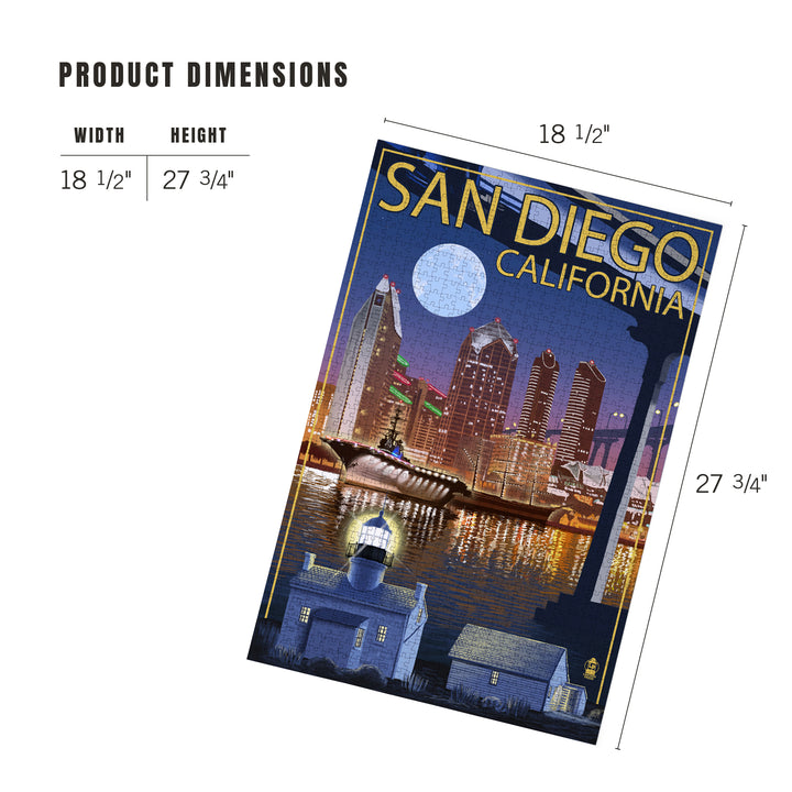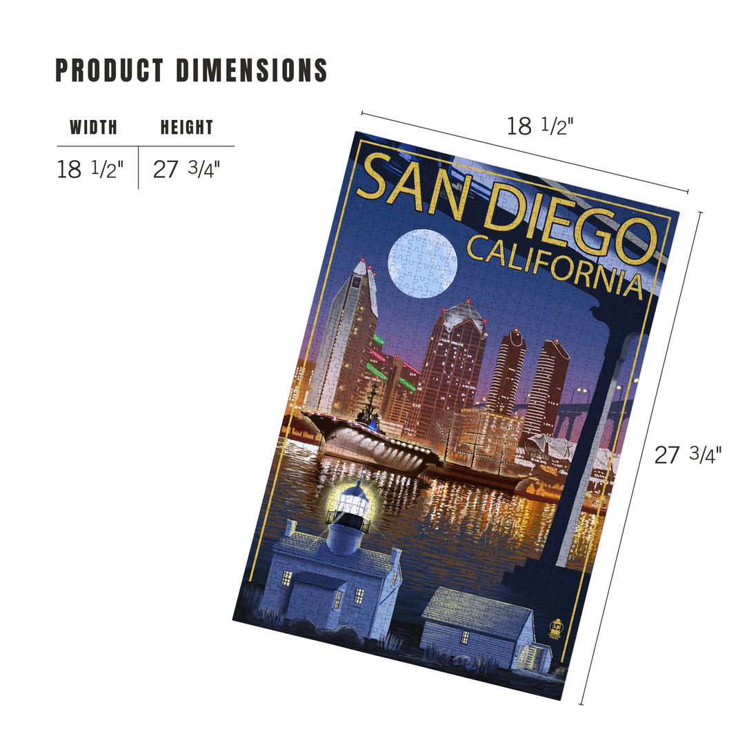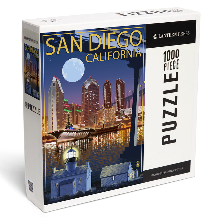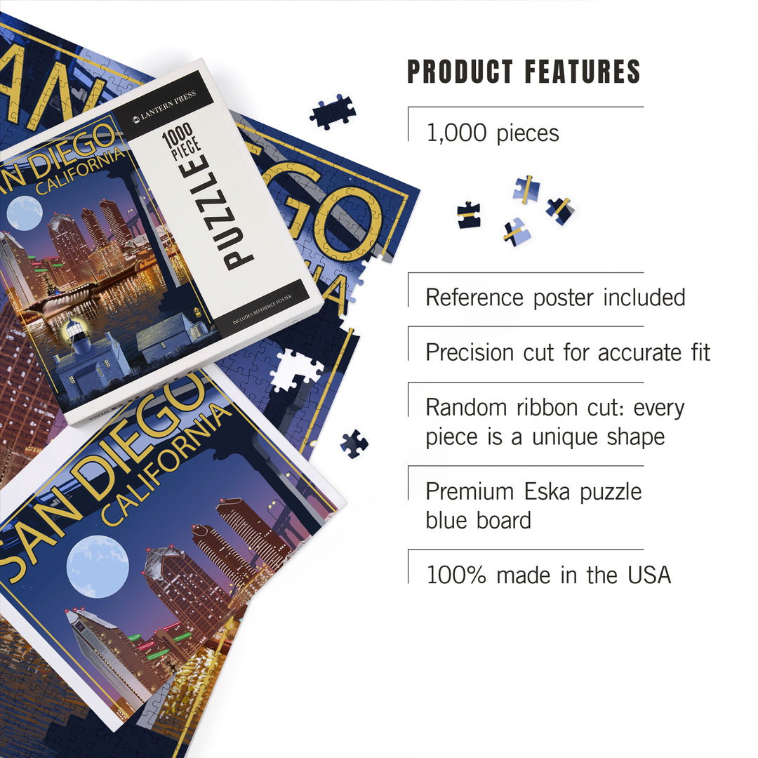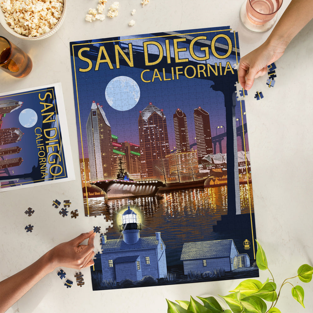 San Diego, California, Skyline at Night, Jigsaw Puzzle Puzzle Lantern Press