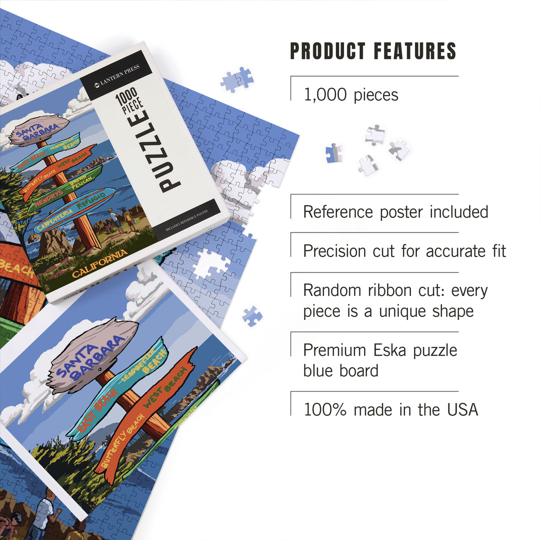 Santa Barbara, California, Destination Sign, Jigsaw Puzzle Puzzle Lantern Press