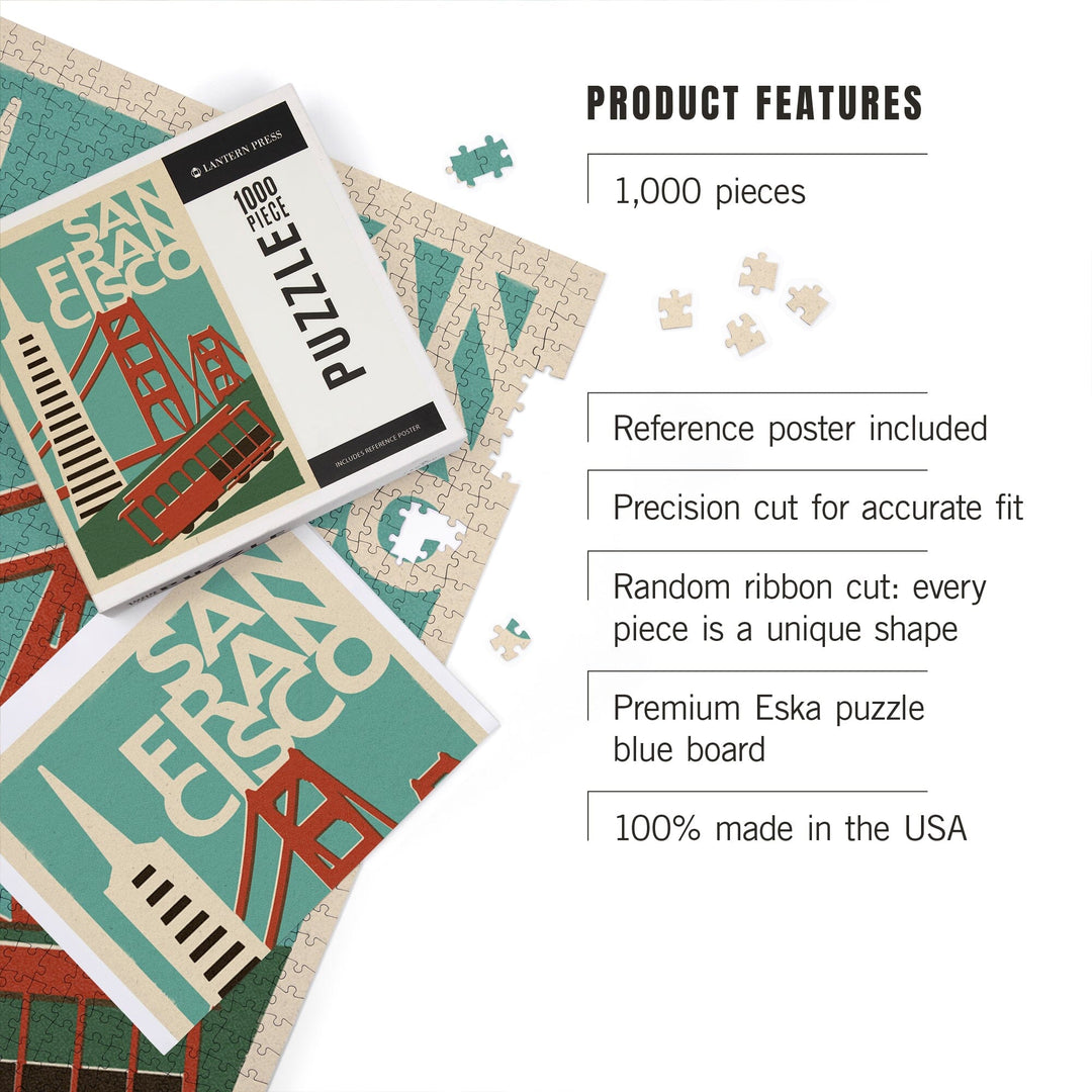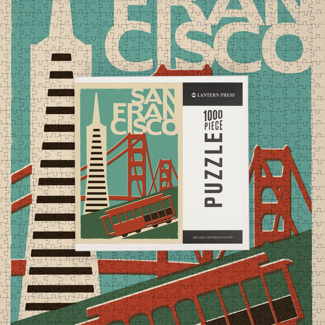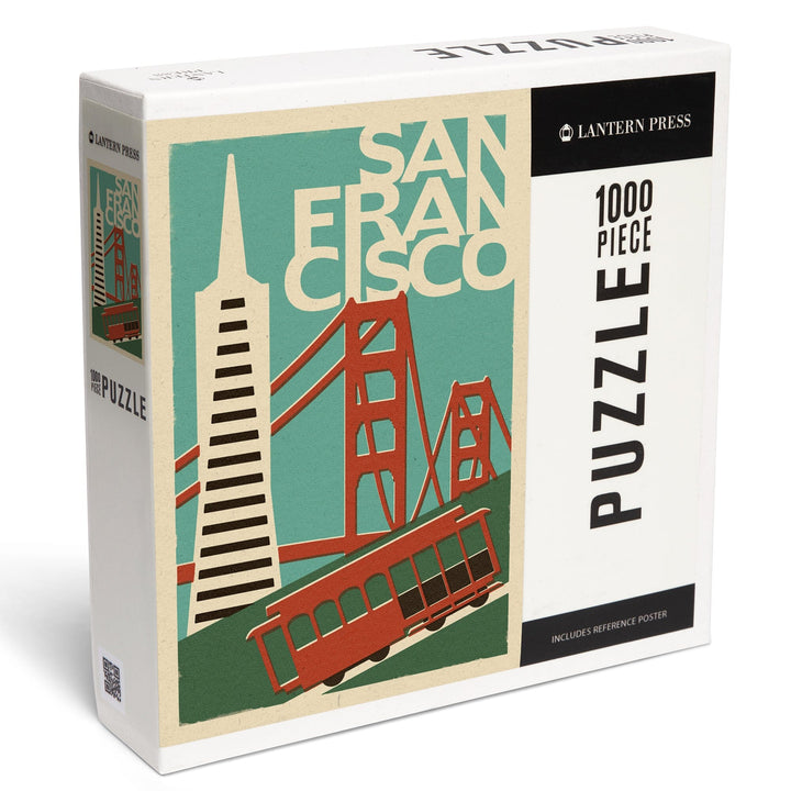 San Francisco, California, Woodblock, Jigsaw Puzzle Puzzle Lantern Press