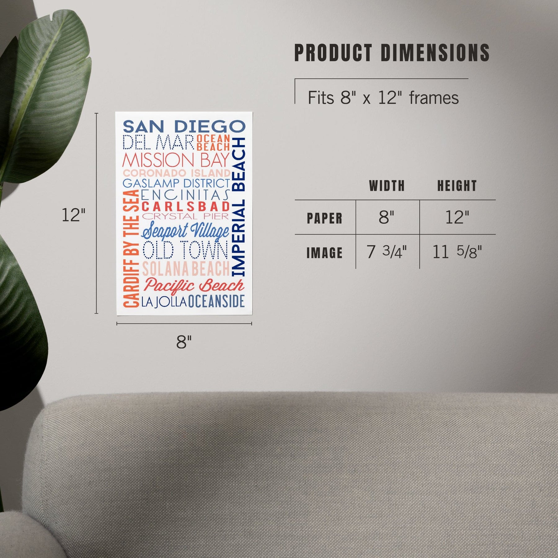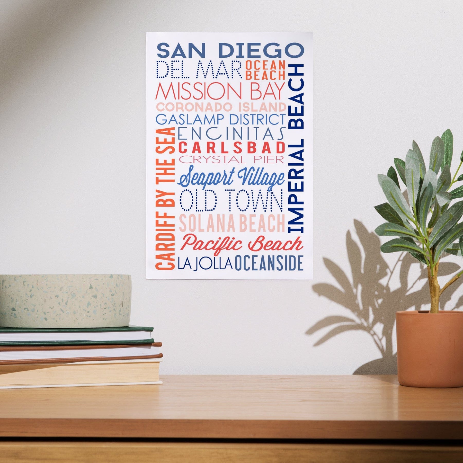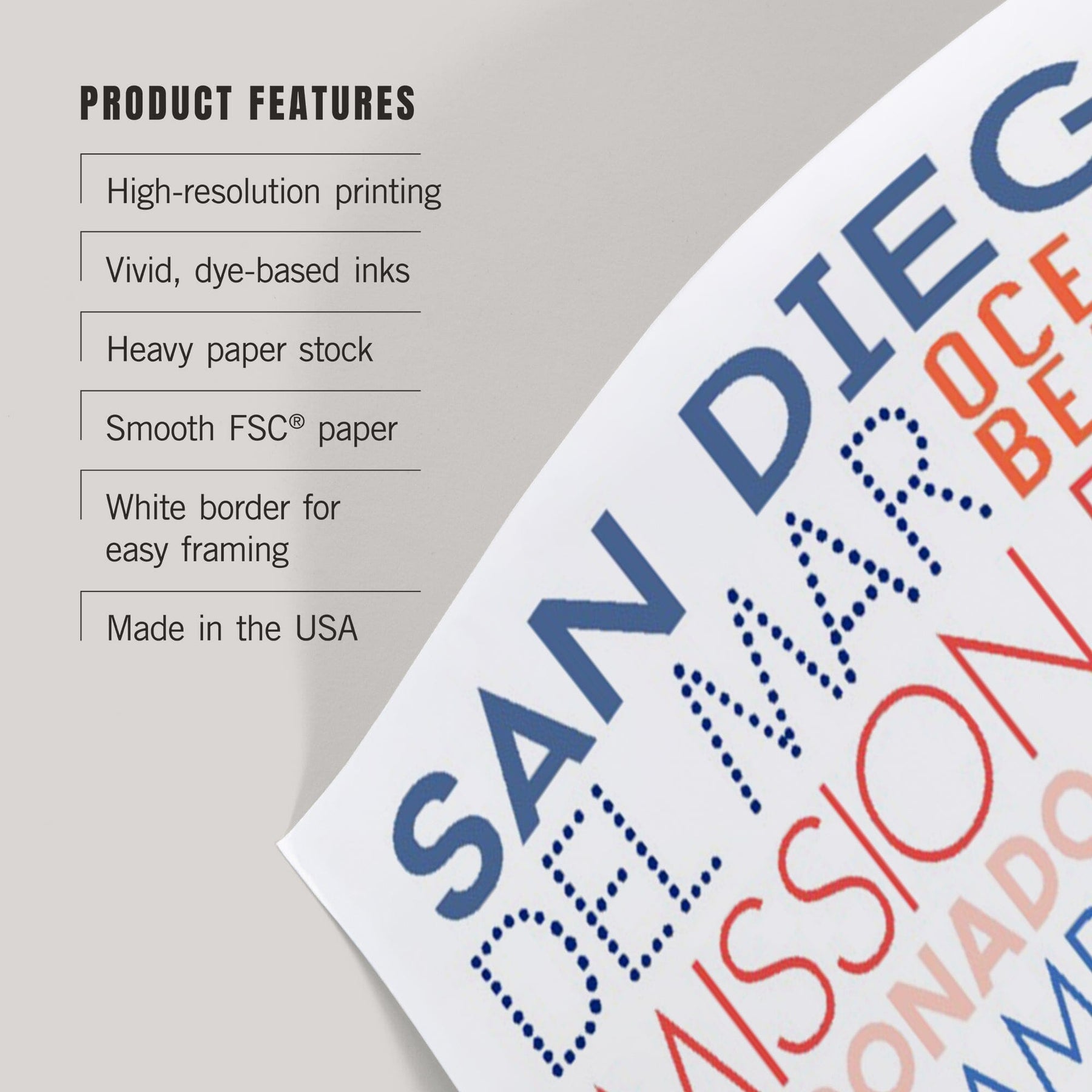 San Diego, California, Typography, Art & Giclee Prints Art Lantern Press