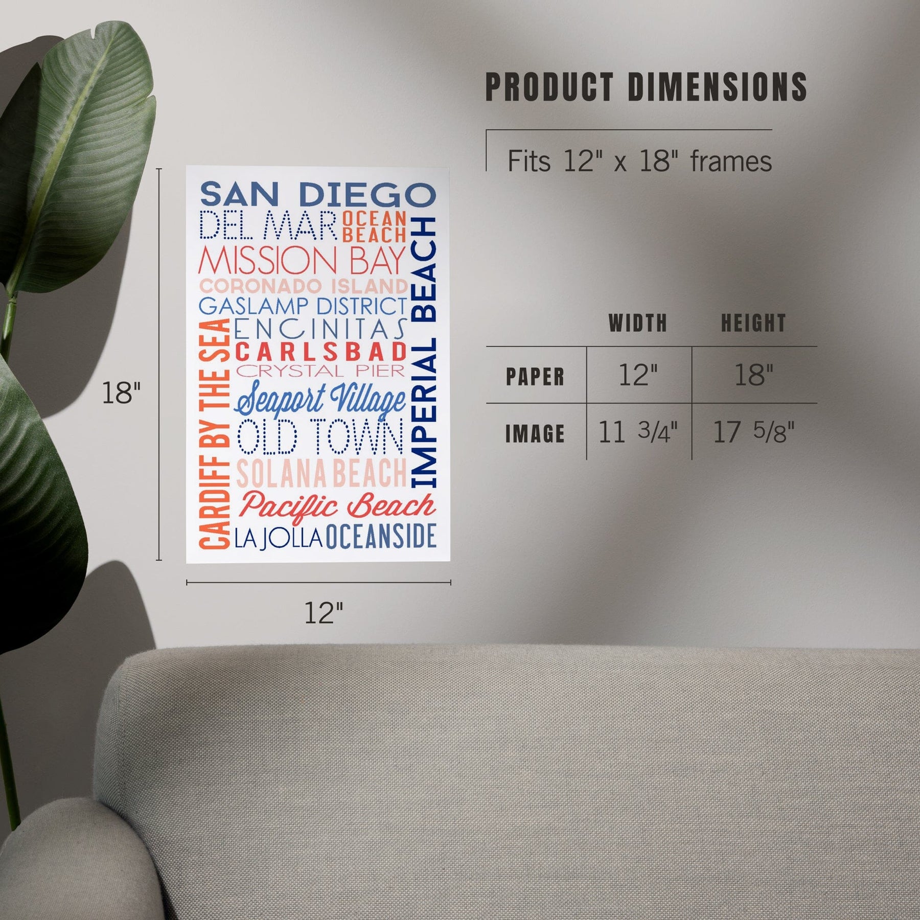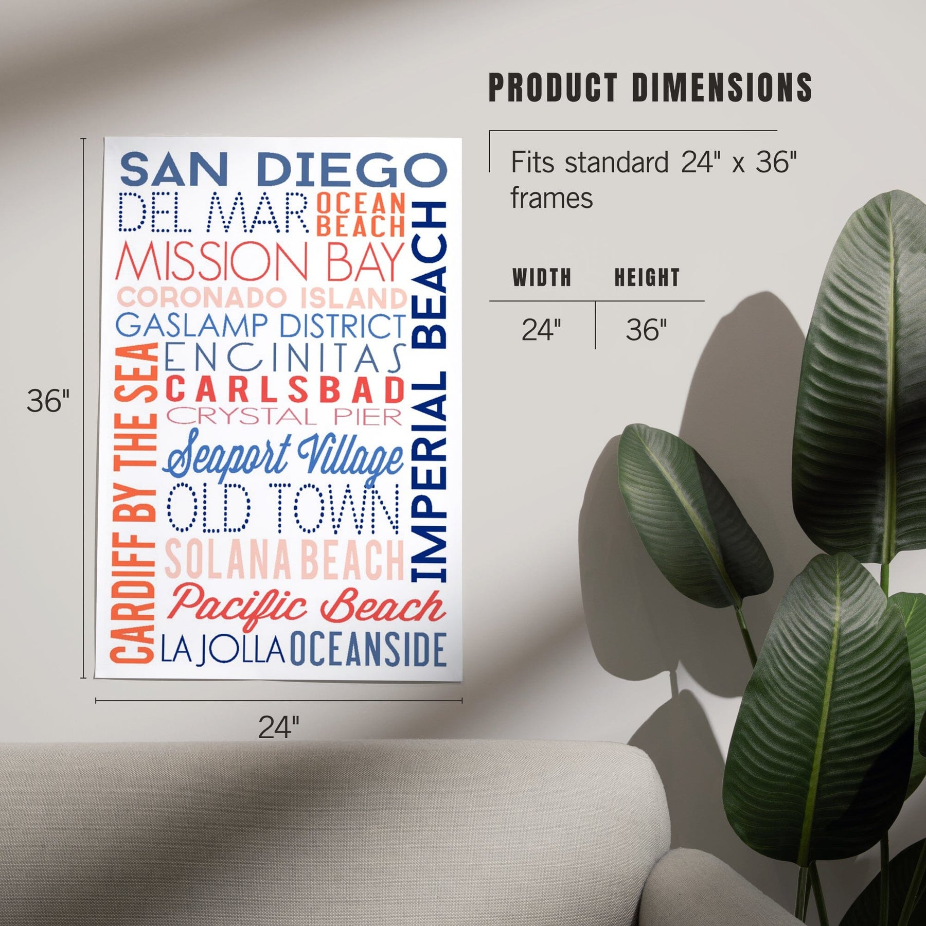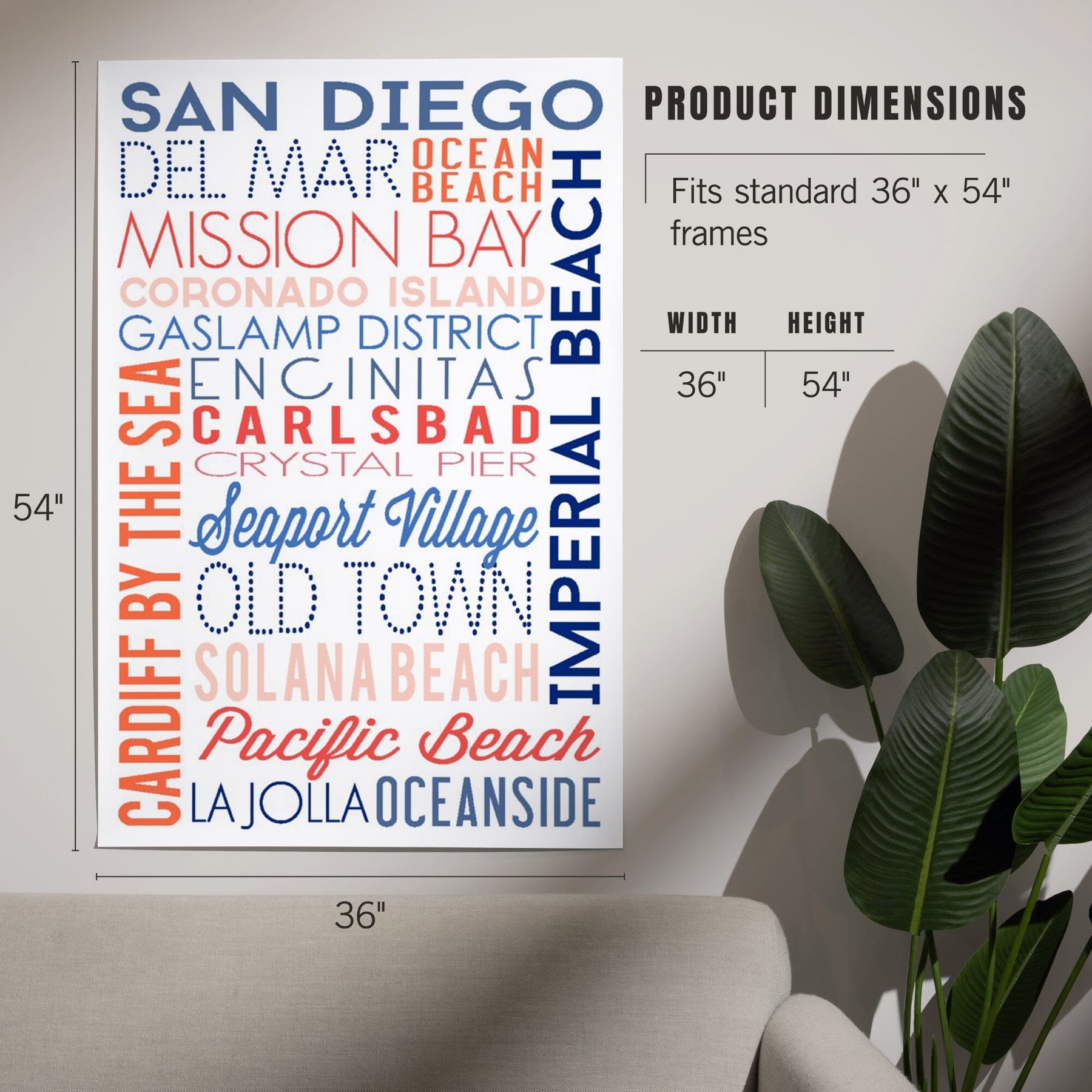 San Diego, California, Typography, Art & Giclee Prints Art Lantern Press