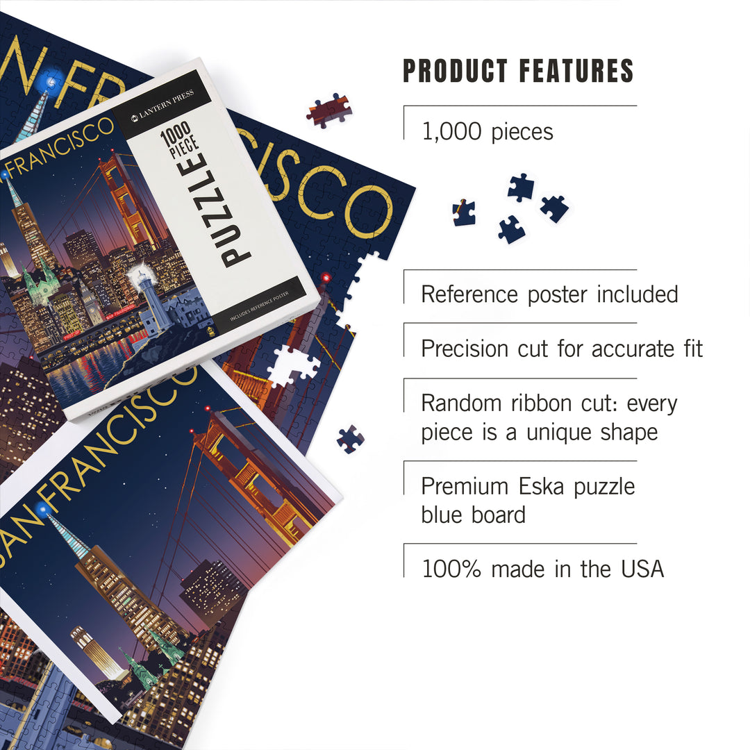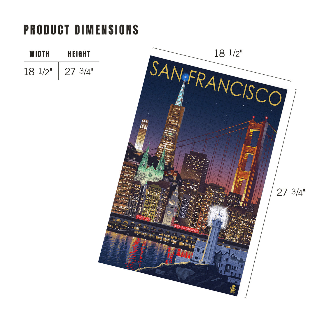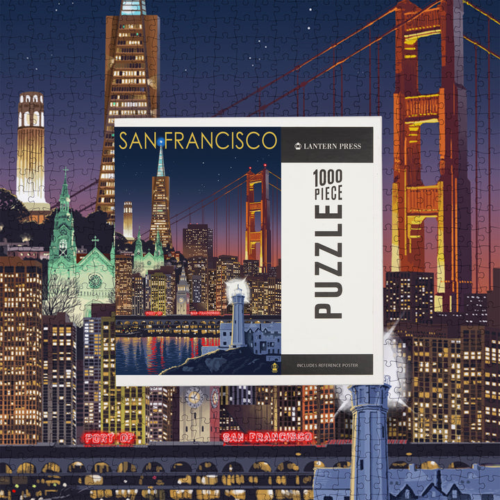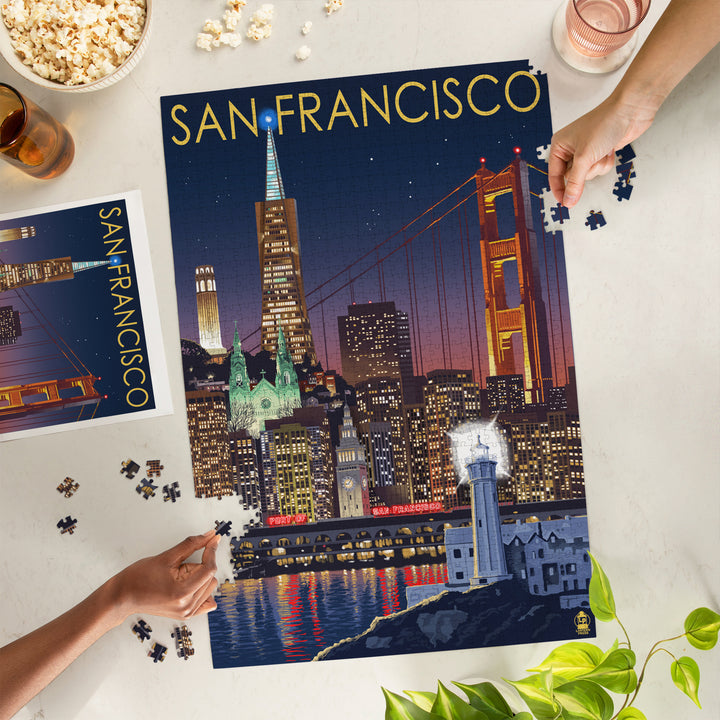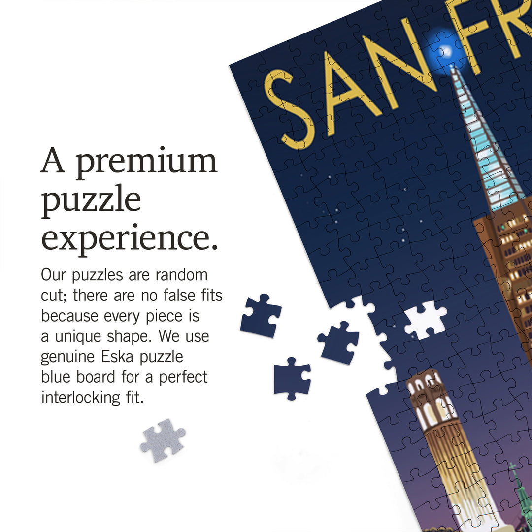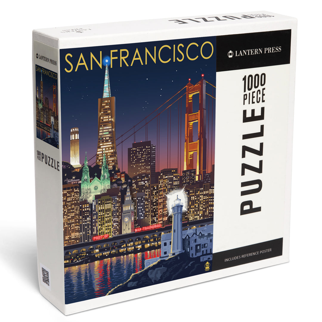San Francisco, California, Skyline at Night, Jigsaw Puzzle Puzzle Lantern Press
