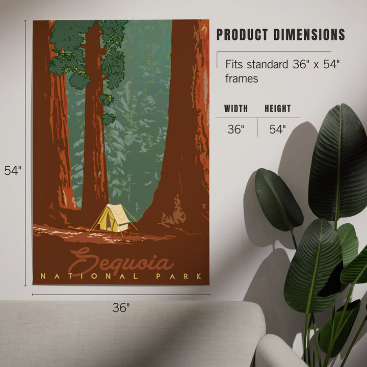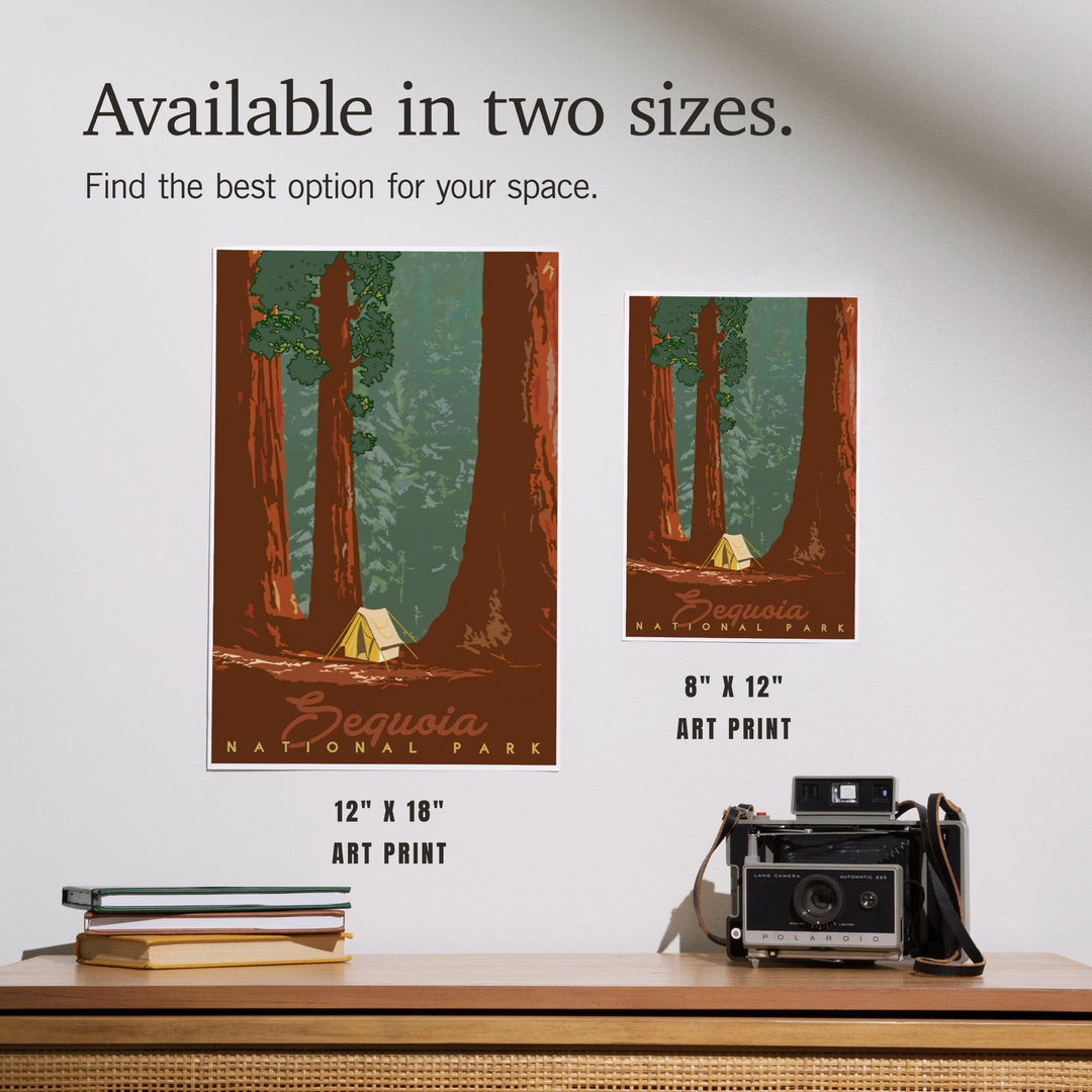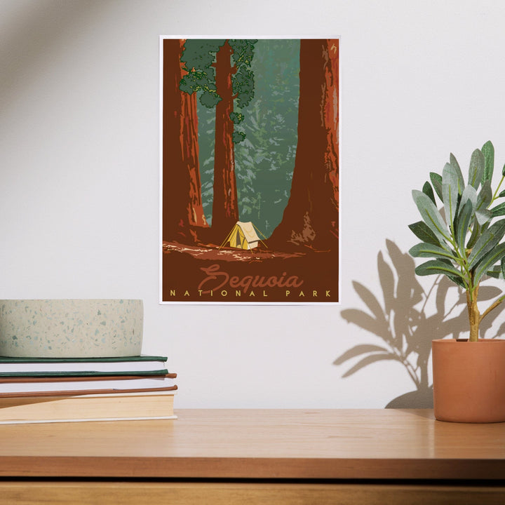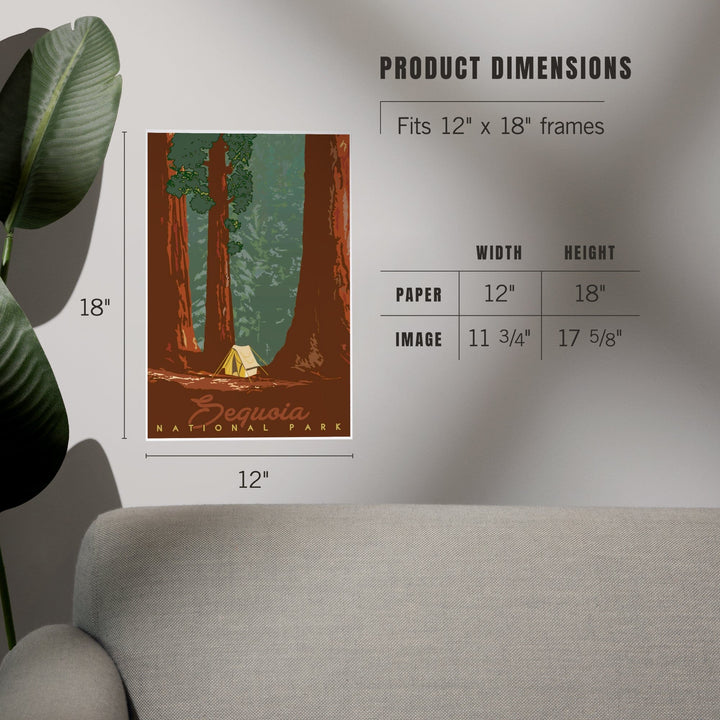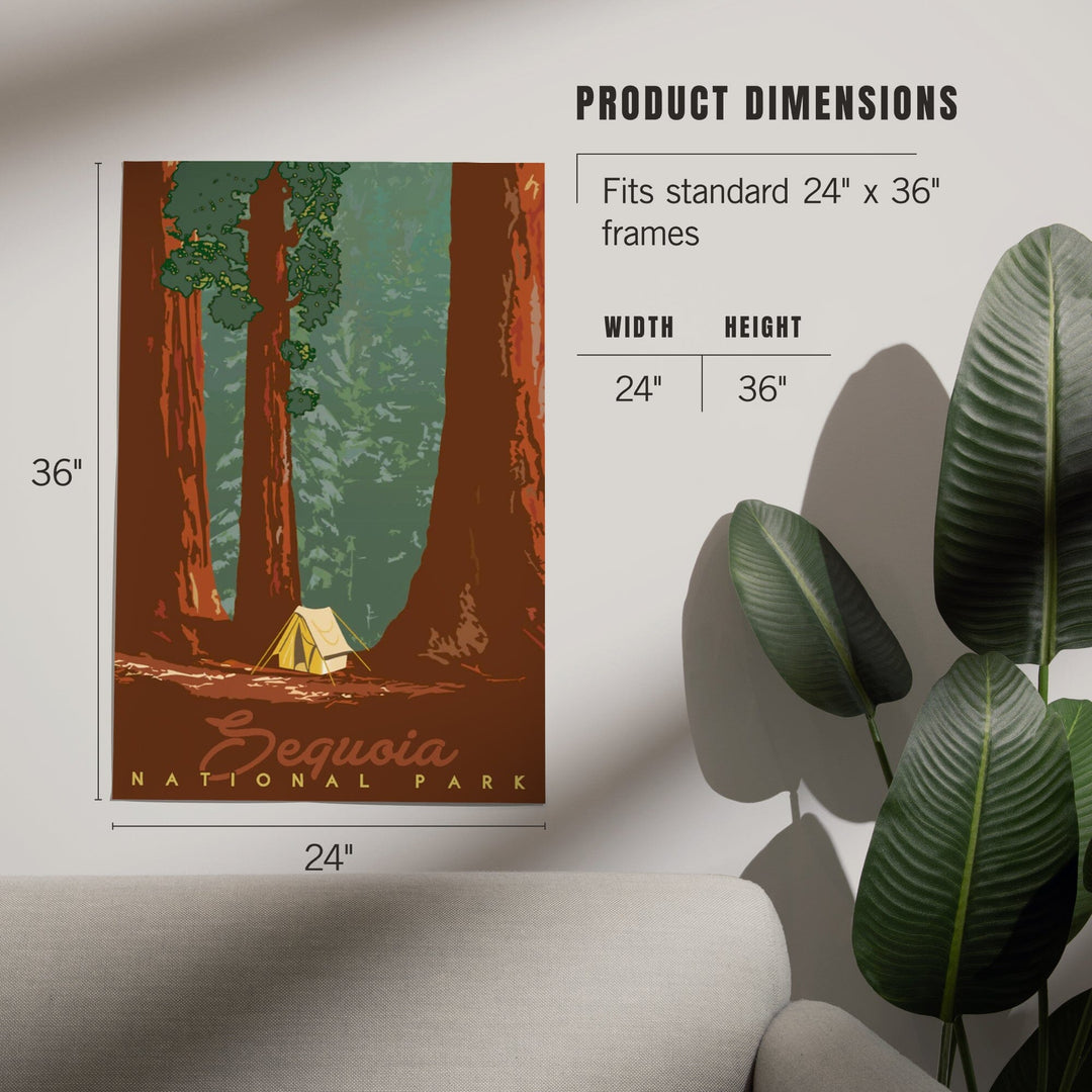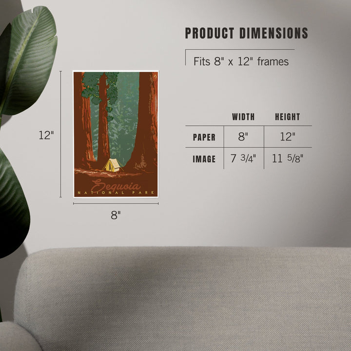 Sequoia National Park, California, Redwood Forest View, Sequoias and Tent, Art & Giclee Prints Art Lantern Press