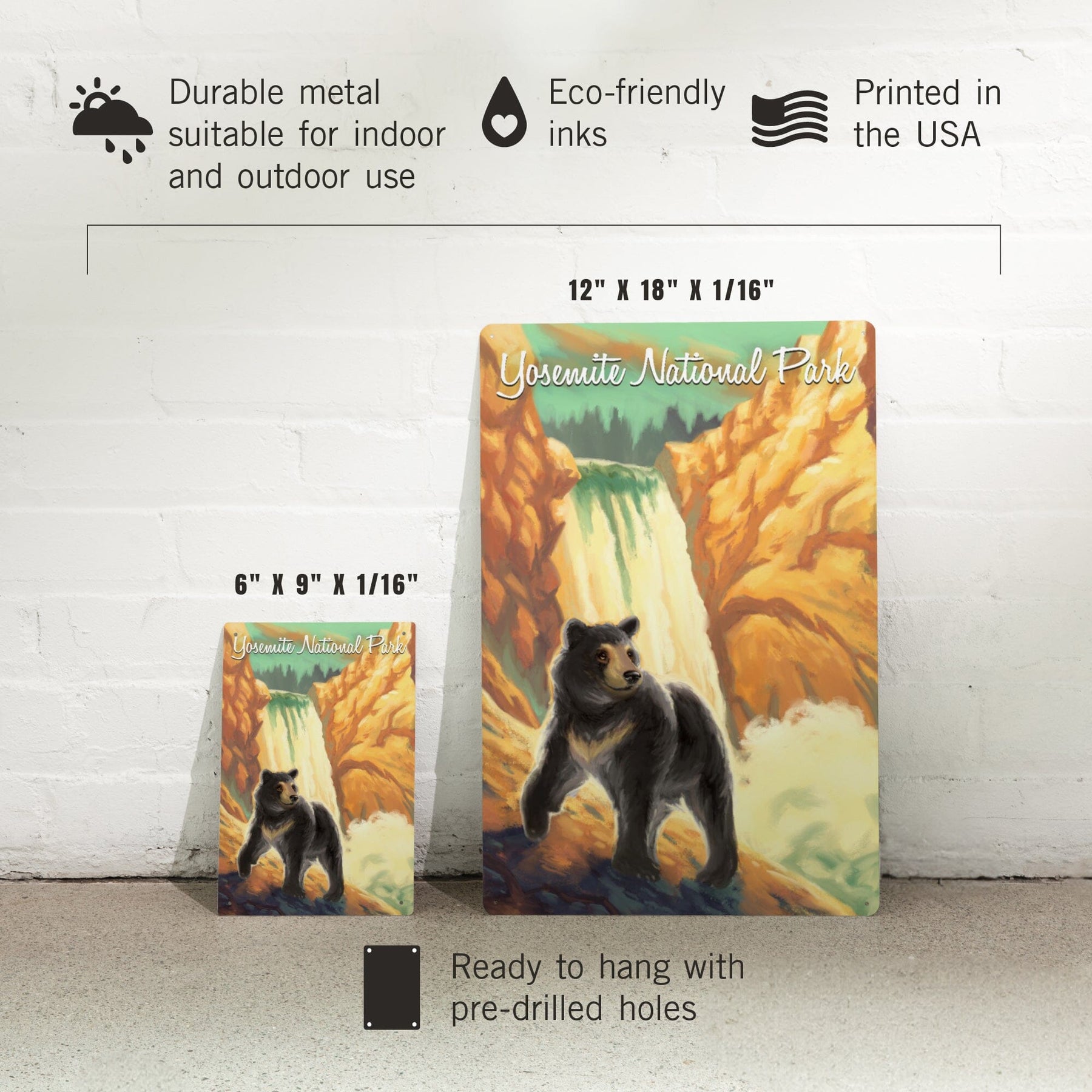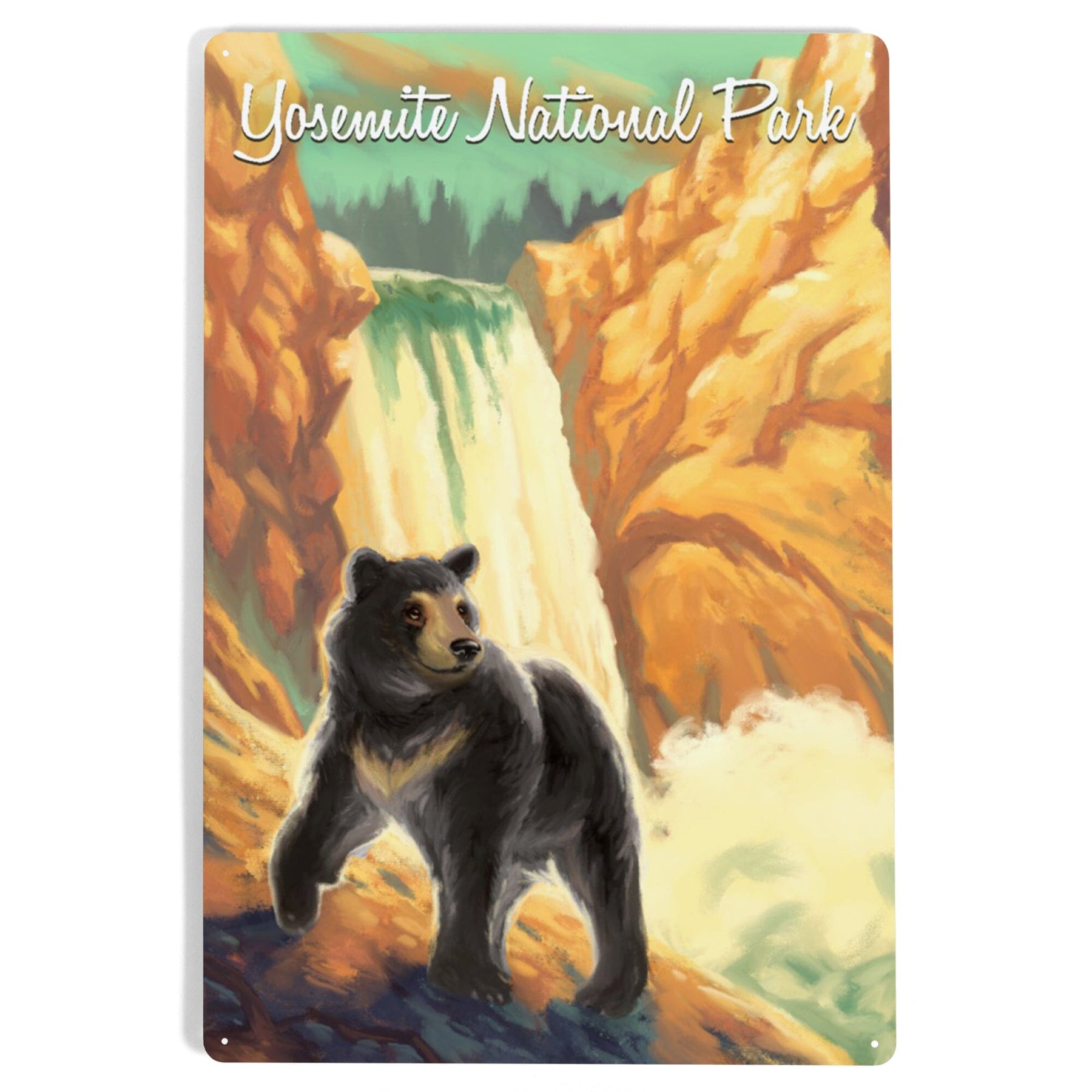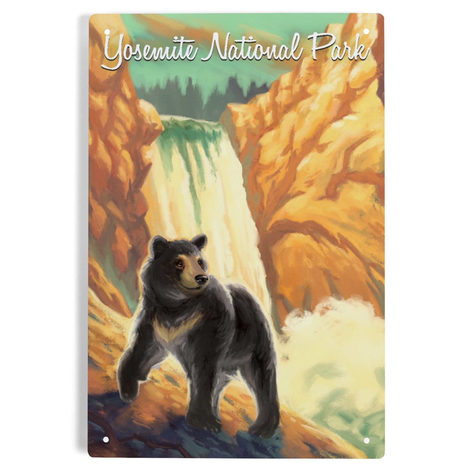 Yosemite National Park, California, Black Bear, Falls, Oil Painting, Metal Signs Metal Lantern Press
