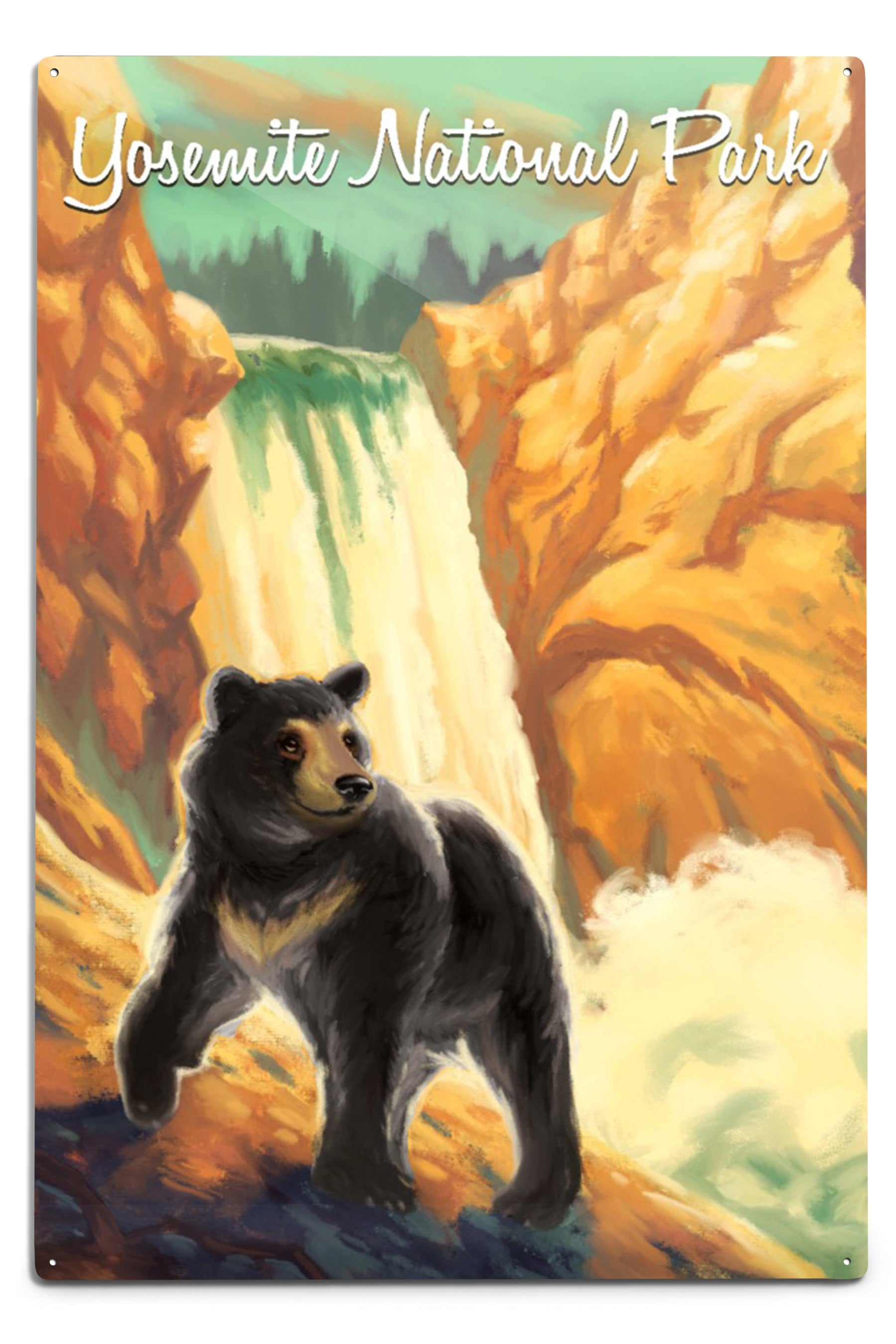Yosemite National Park, California, Black Bear, Falls, Oil Painting, Metal Signs