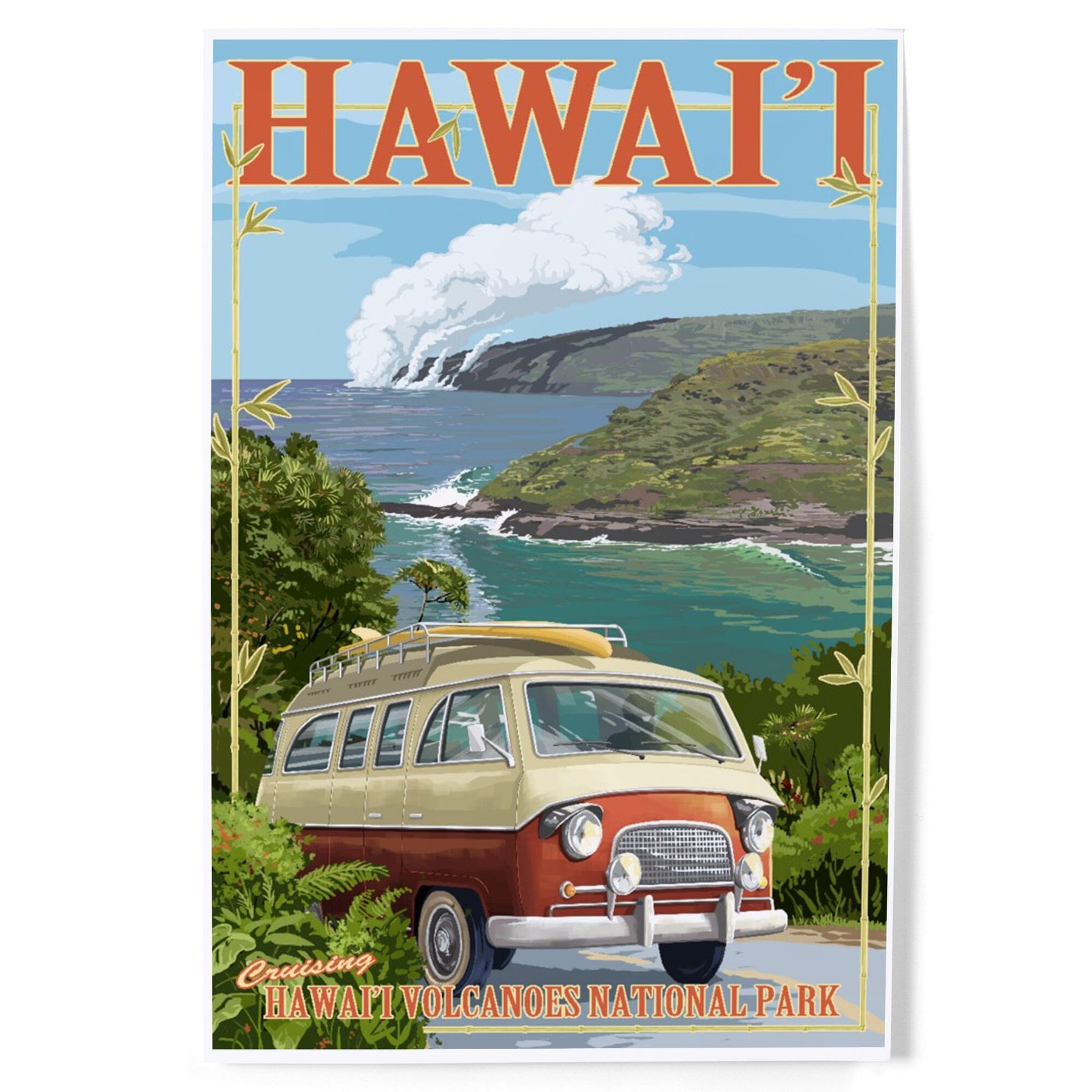 Hawaii Volcanoes National Park, Hawaii, Camper Van, Lantern Press Artwork, Wood Signs and Postcards - Lantern Press