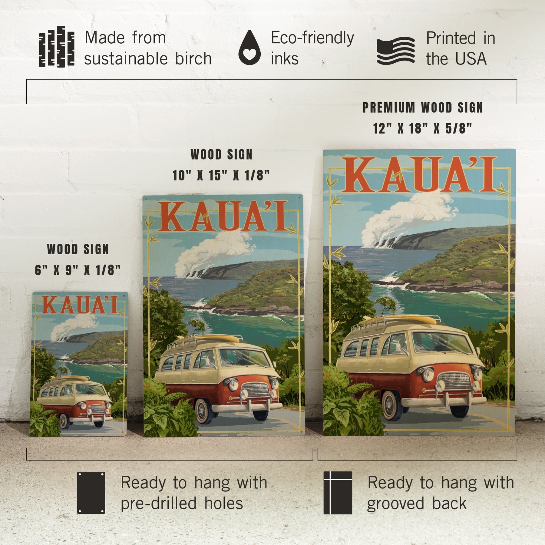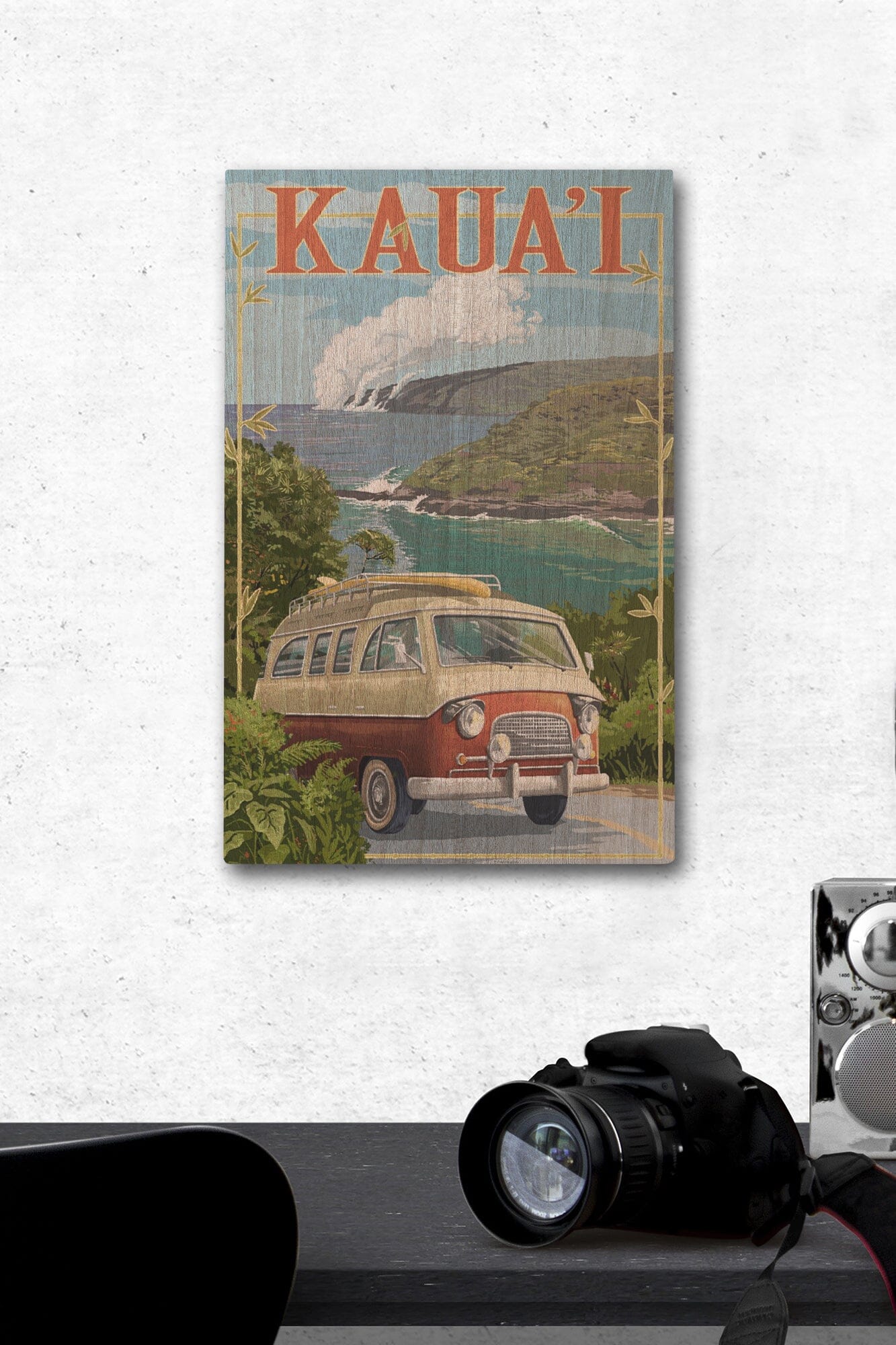 Kauai, Hawaii, Camper Van, Lantern Press Artwork, Wood Signs and Postcards - Lantern Press