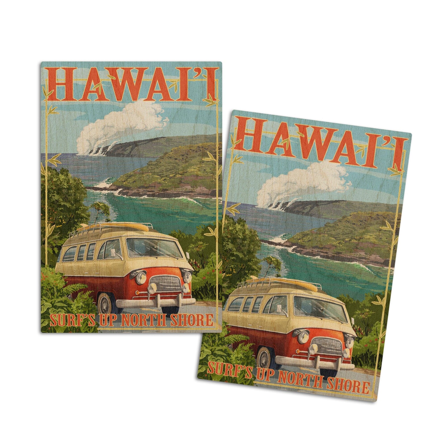 North Shore, Hawaii, Surf's Up, Camper Van, Lantern Press Artwork, Wood Signs and Postcards