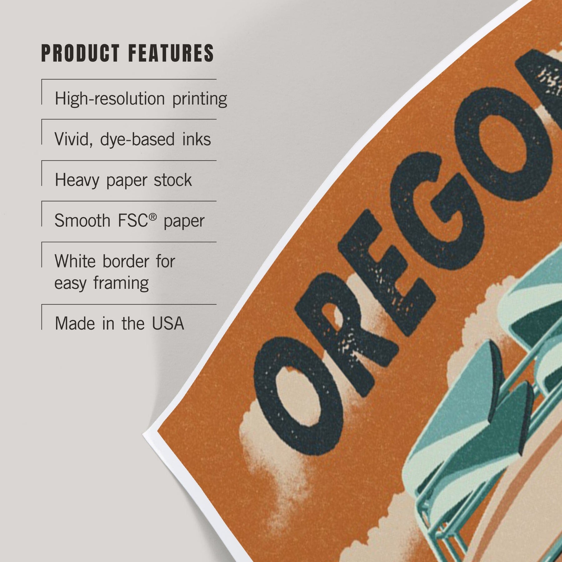 Oregon Coast, Letterpress, Camper Van, Art & Giclee Prints