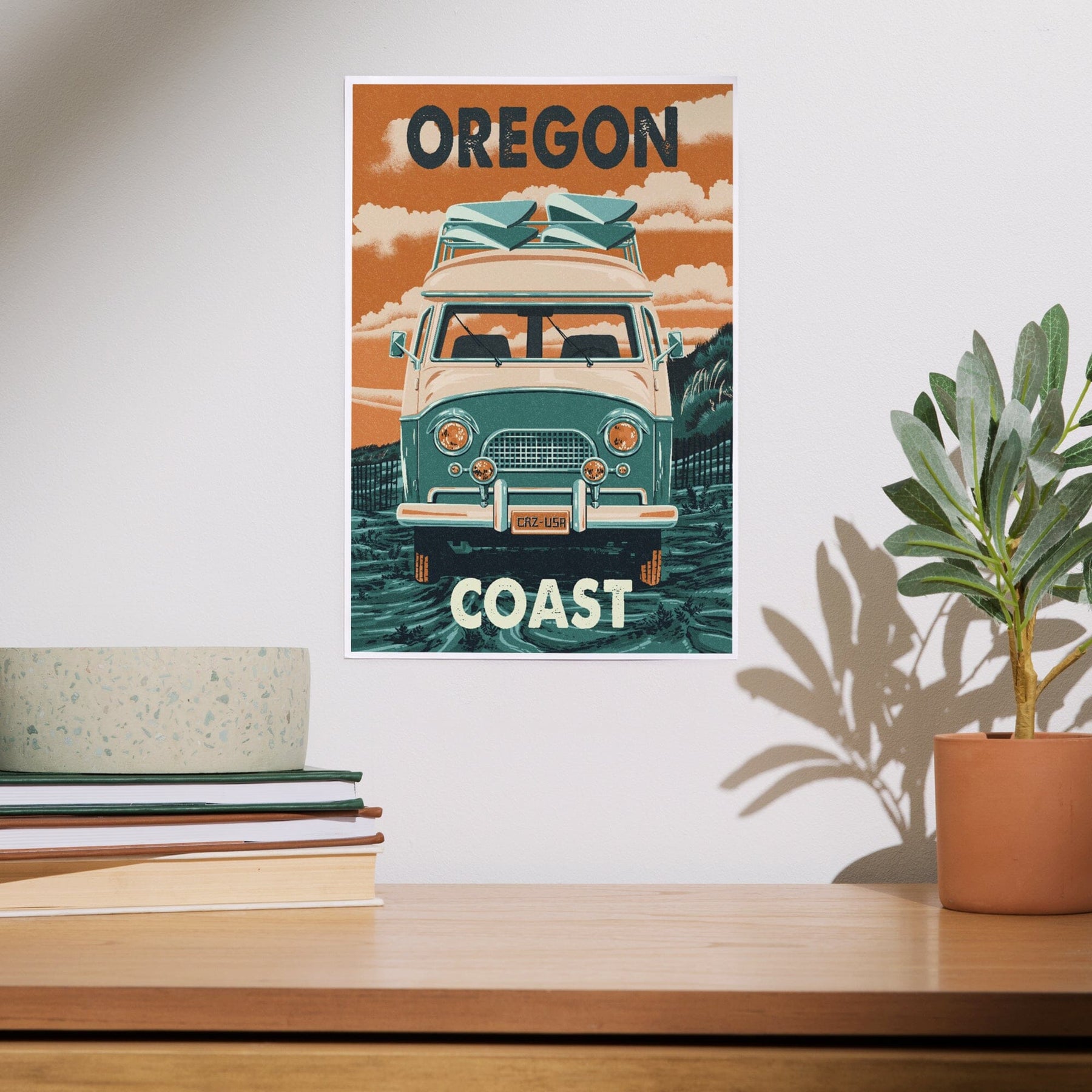 Oregon Coast, Camper Van, Art & Giclee Prints Art Lantern Press